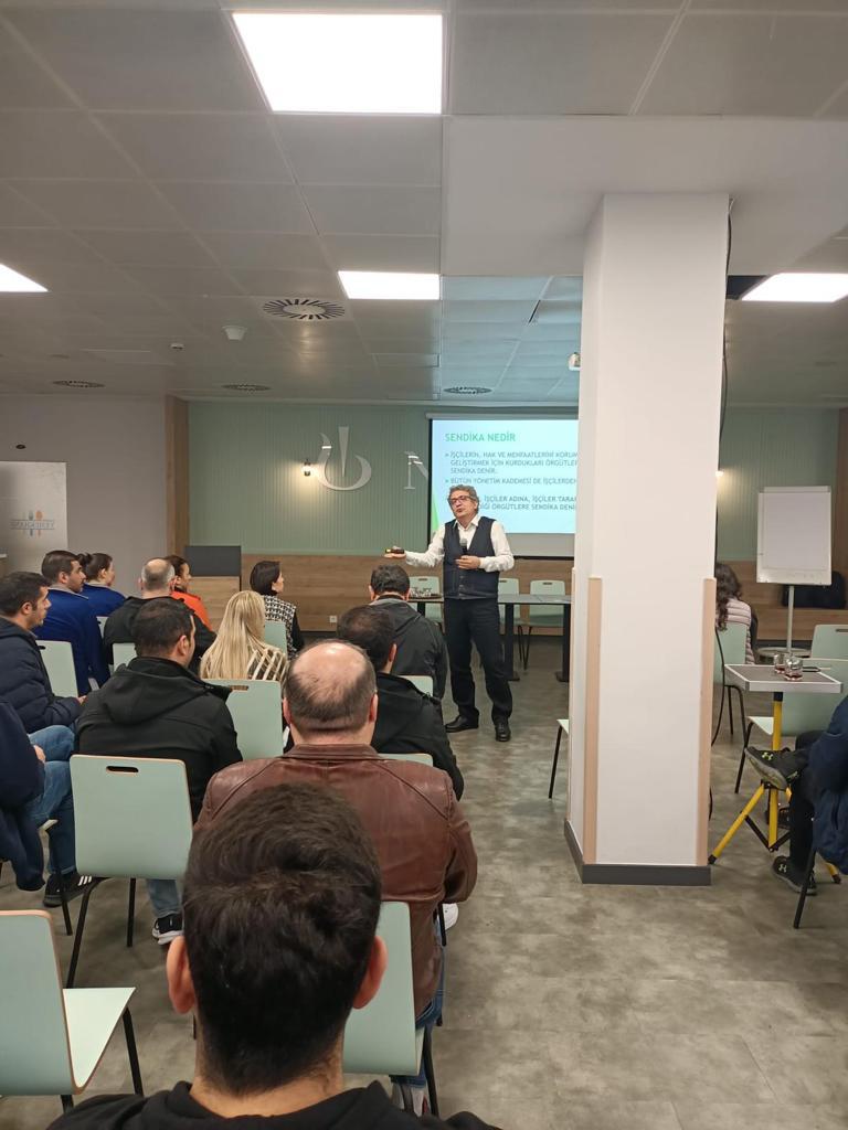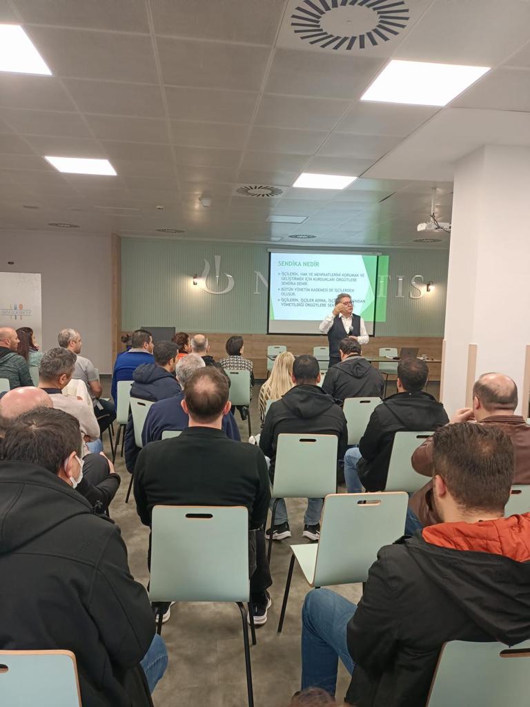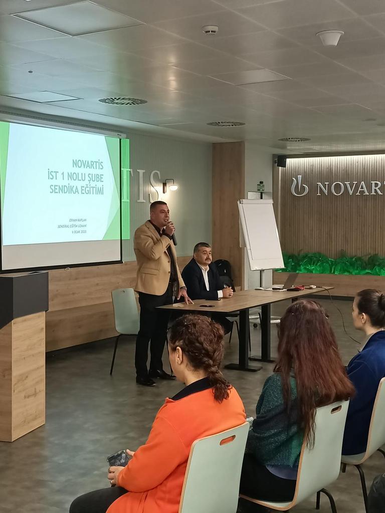 Konuşmalarının ardından Novartis işyeri eğitimi, sendikamız Eğitim Uzmanları Erhan Kaplan ve Esra Keskin tarafından sürdürüldü. Saat 12.00’de sona eren eğitim, oldukça verimli sonuçlandı.