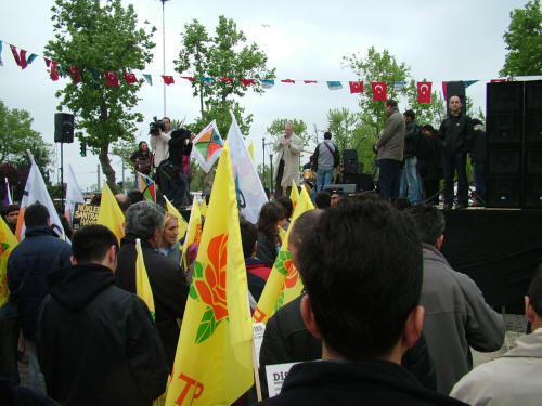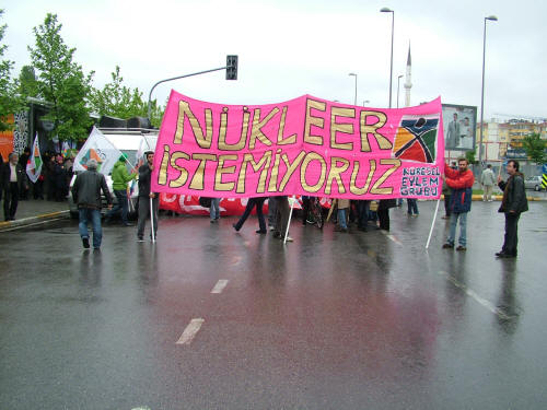 Cumartesi günü Saat 11. 00’de Kadıköy’deki Tepe Nautilus Alış-Veriş Merkezi’nin önünde toplanan nükleer karşıtı kitle nükleer enerjiyi protesto eden döviz ve sloganlarla Kadıköy İskele Meydanı’na doğru yürüyüşe geçti. Yürüyüş boyunca “Susma Haykır, Nükleere Hayır”, Güneş, Rüzgar Bize Yeter”, “Çernobili Unutturma”, “Kazım’ın katili Nükleer Lobisi,” “Kyotoyu İmzala”, “Katil ABD, Geleceği Kirletme”, “Nükleer Santral, Çatlar Patlar”, “Nükleere Hayır”, “Nükleere Değil, Eğitime Bütçe”, “Nükleer Santral Kullanmaktansa Mum Işığına Razıyız”, “Bush Irak’tan, AKP Sinop’tan Elini Çek”, “Nükleer Enerji, No, Thanks” şeklinde dövizler taşındı, sloganlar atıldı.