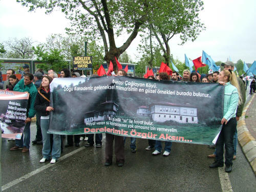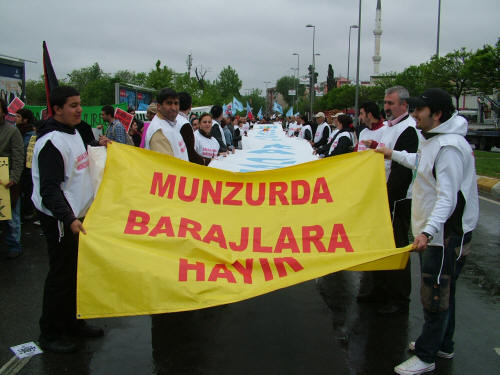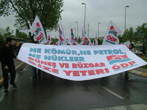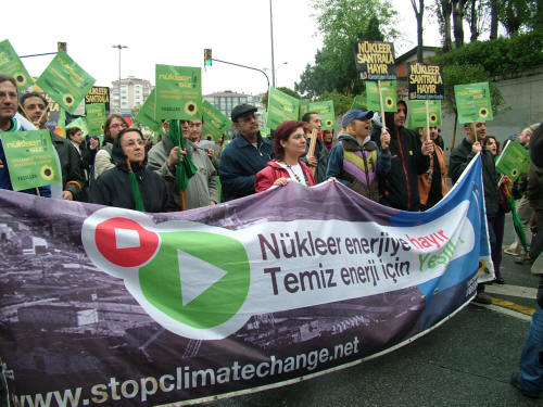 nükleer enerji ve nükleer santrallar protesto edildi. Yürüyüş ve mitingde Mersin ve Sinop’ta yapılması planlanan nükleer santrallardan vazgeçilmesi için AKP iktidarı uyarıldı.