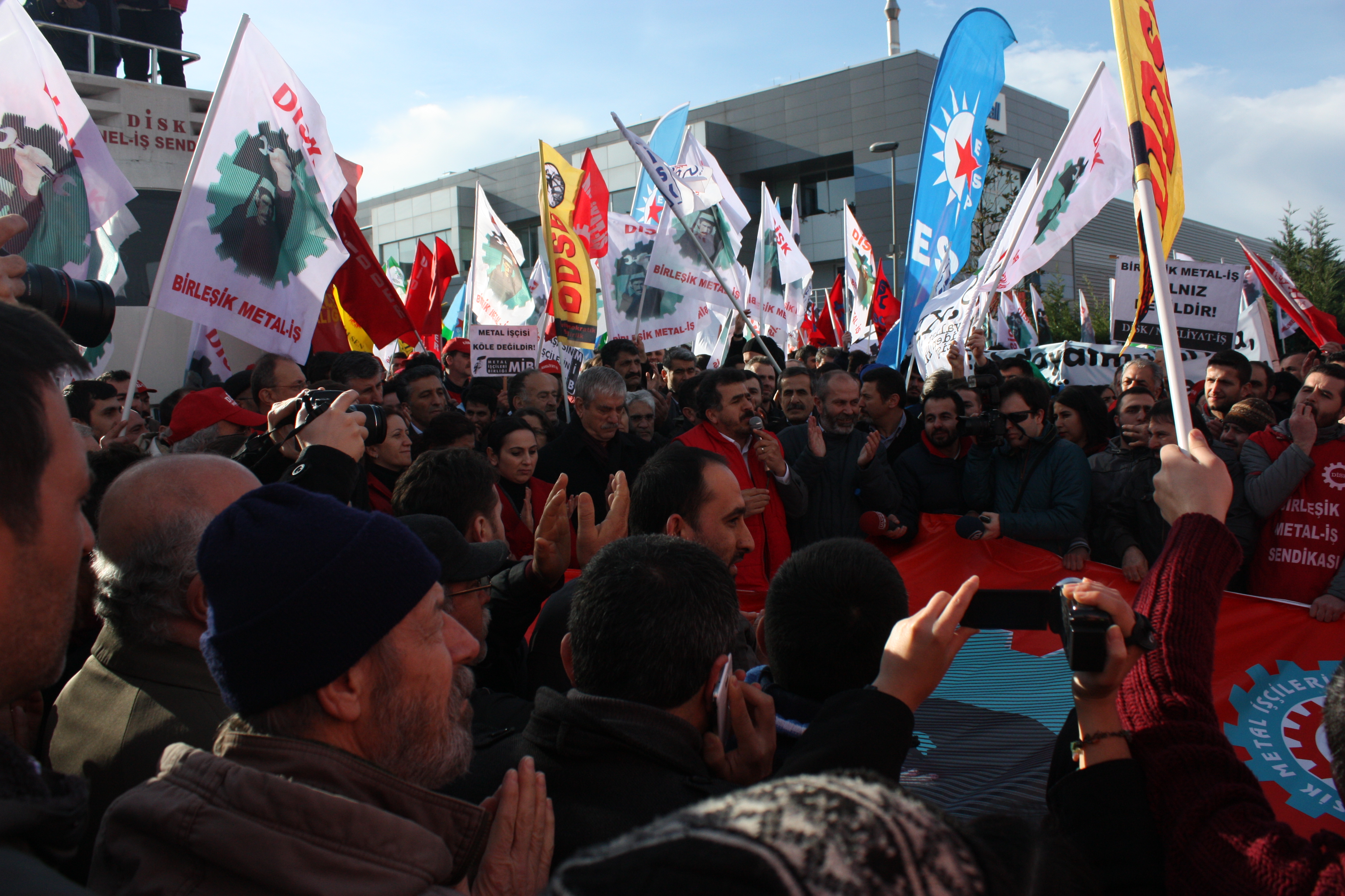 Yoksulluğa ve köleliğe karşı insanca yaşamı savunan metal işçileri Türkiye’nin dört bir tarafında greve çıktı. Metal iş kolunda Metal Sanayicileri Sendikası (MESS) ile yürüttüğü Toplu İş Sözleşmesi’nde (TİS) anlaşmaya varamayarak grev kararı alan DİSK’e bağlı Birleşik Metal-İş 15 bine yakın işçi ile grevini başlattı.