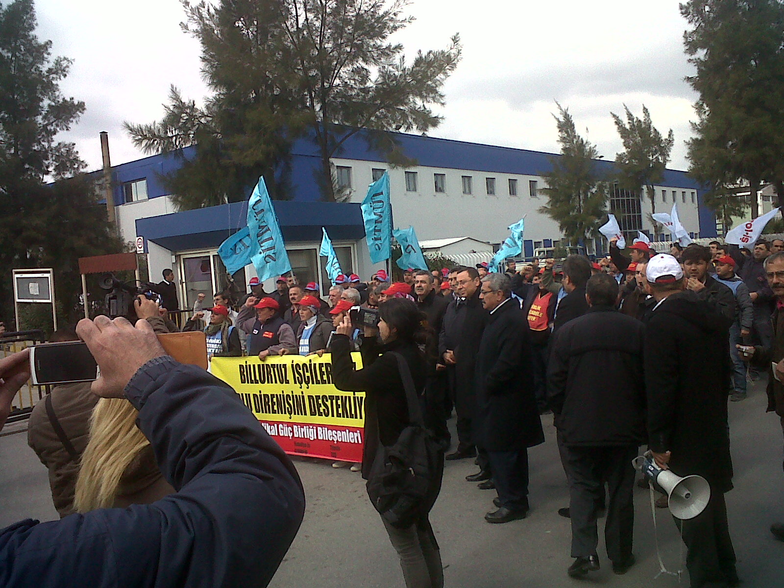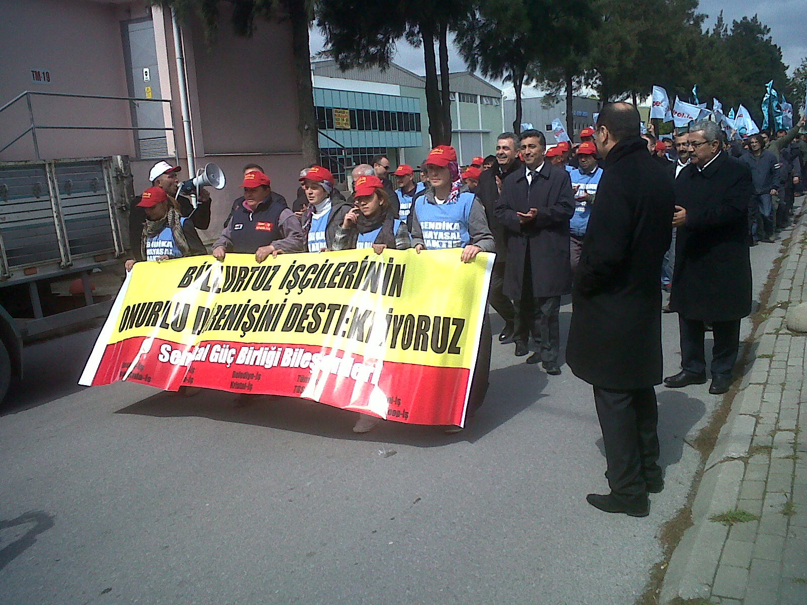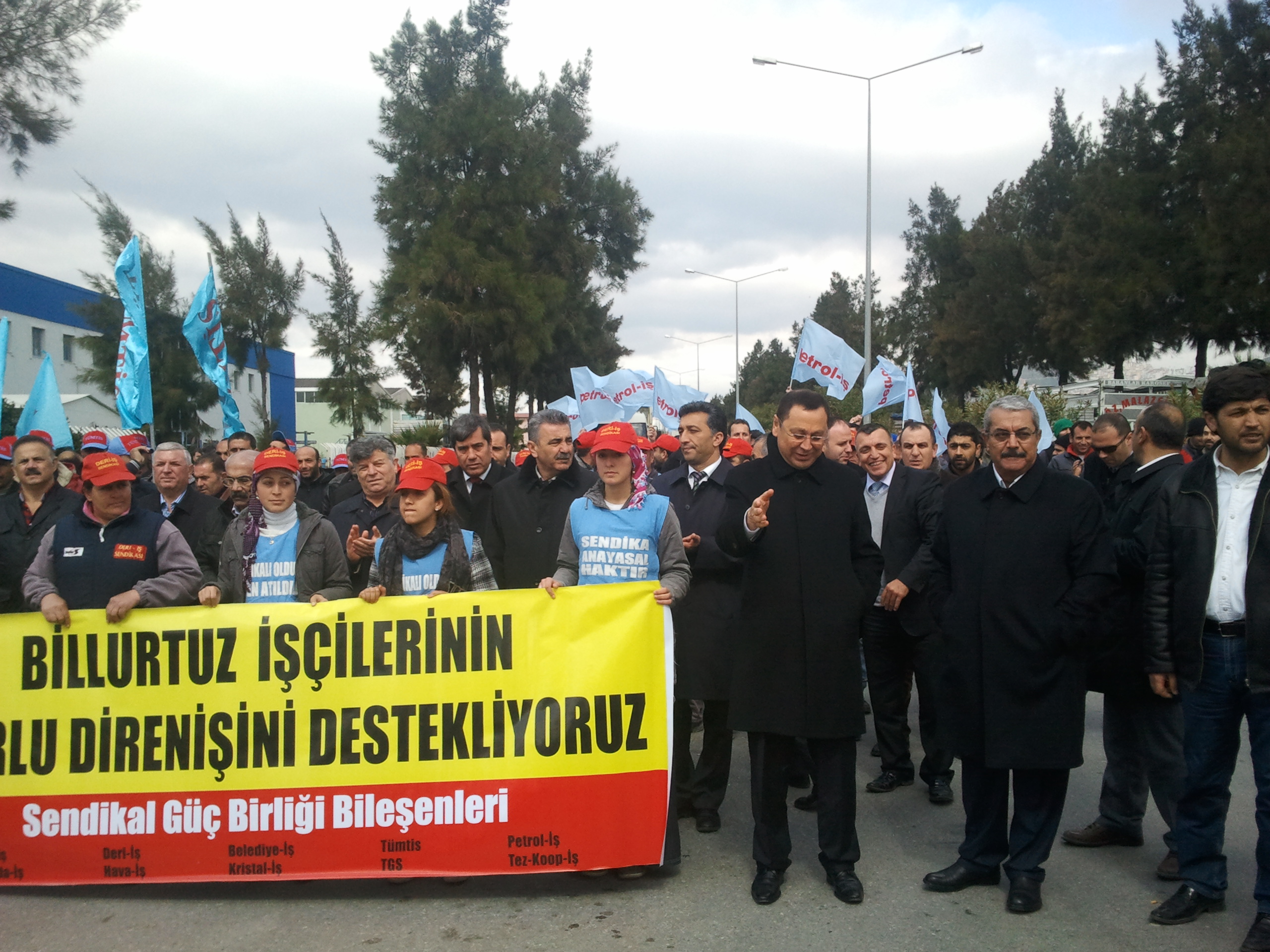 Sendikal Güç Birliği Platformu bileşenleri Genel Başkanları, İzmir Şube Başkanları ile yapılan basın toplantısı sonucu 14 Mart 2012 Çarşamba günü Genel Başkanımız Mustafa ÖZTAŞKIN, Şube Başkanımız A.Gani GÜNDOĞDU ve Şube Başkan Yardımcısı (Mali) Orhan ZENGİN ile Dyo Boya Fabrikası Çiğli çalışanı üyelerimizle birlikte Billur Tuz’ dan örgütlenme nedeniyle işten atılan ve 78 gündür eylemde olan işçiler ziyaret ettiler. Daha sonra Sendikal Güç Birliği Platformu Genel Başkanları ve Şube Başkanları 292 gündür eylemde olan Menemen’ de kurulu Savranoğlu Deri Fabrikası direnişçi işçilerini ziyaret ettiler.