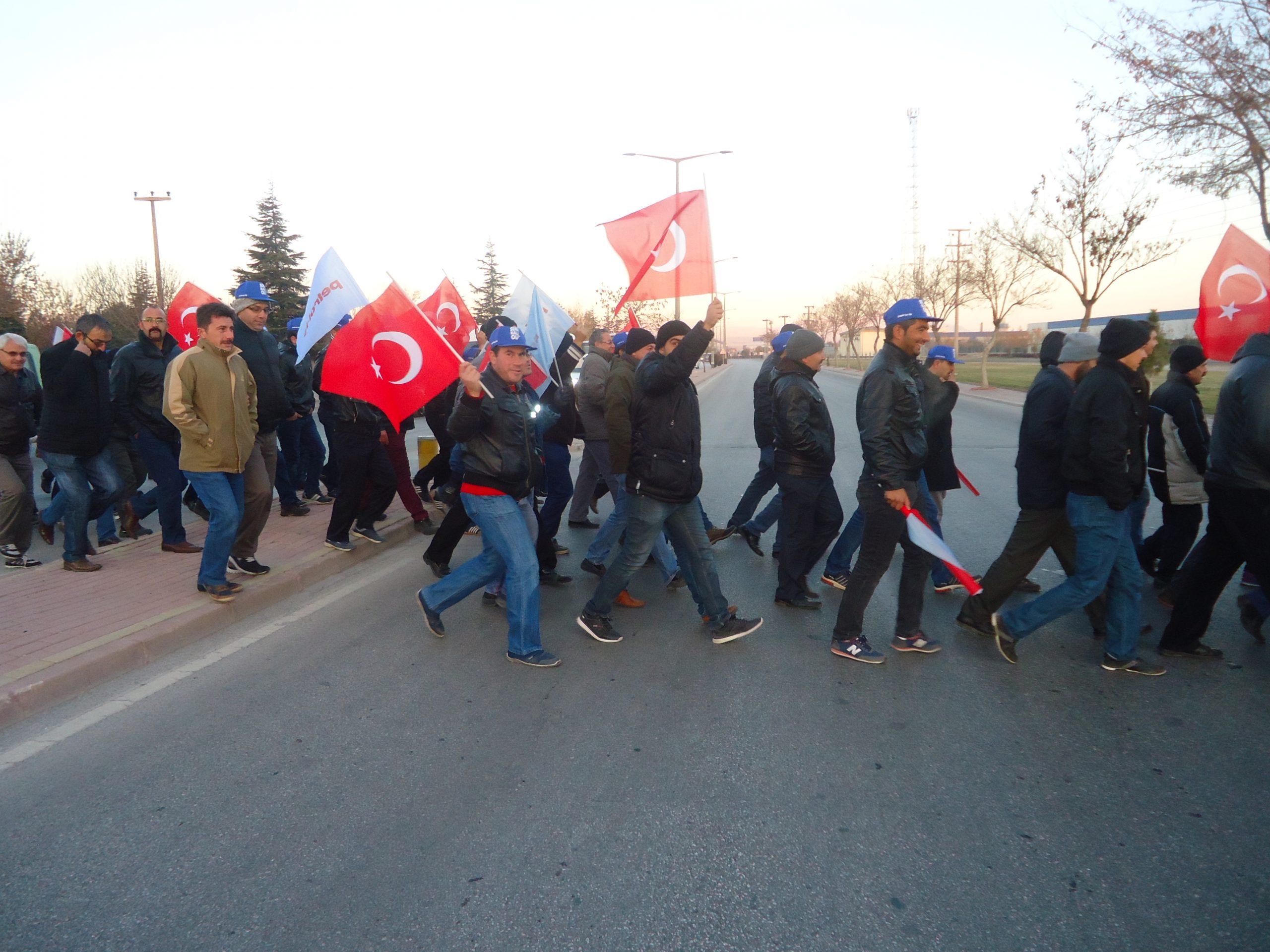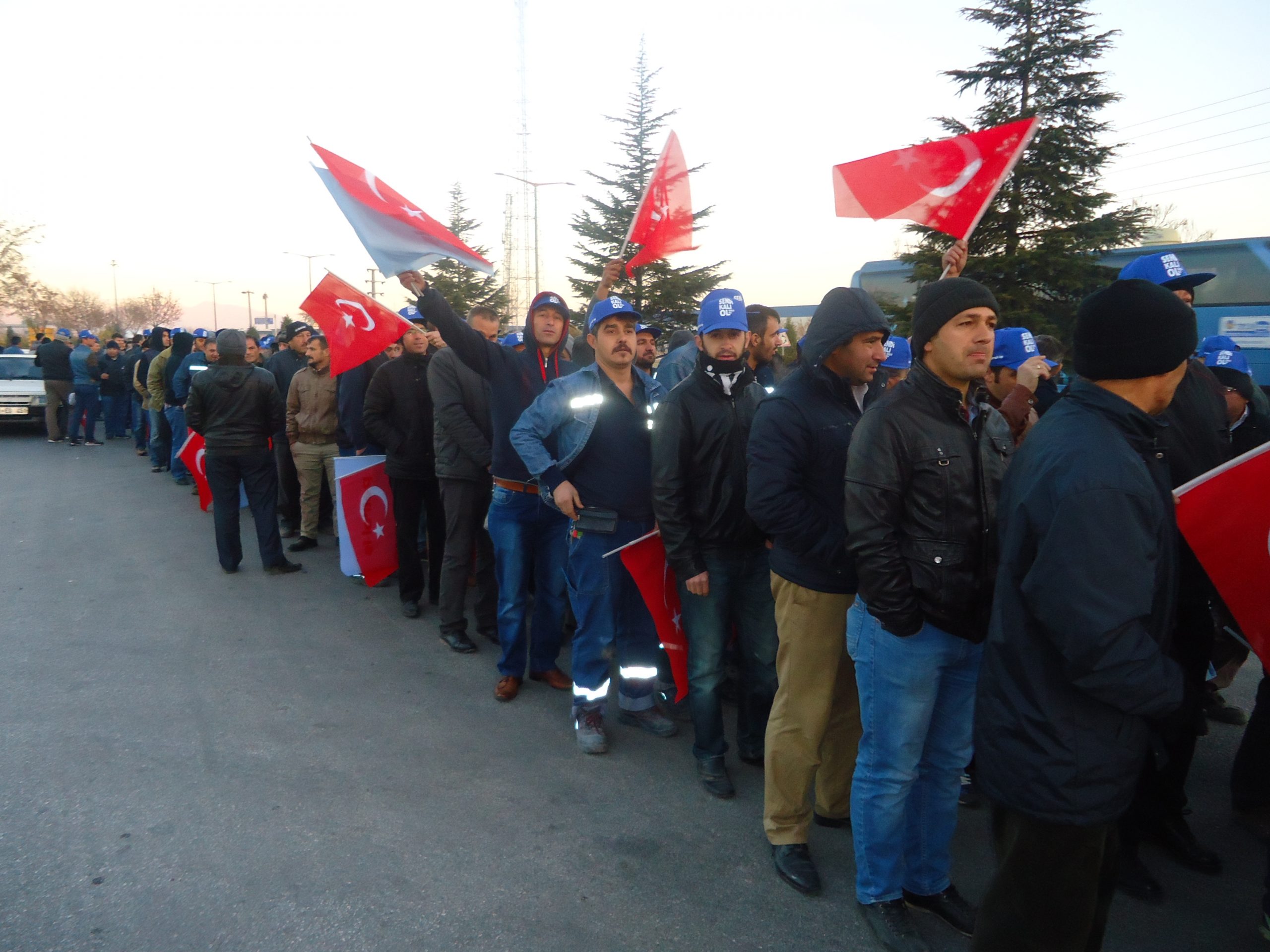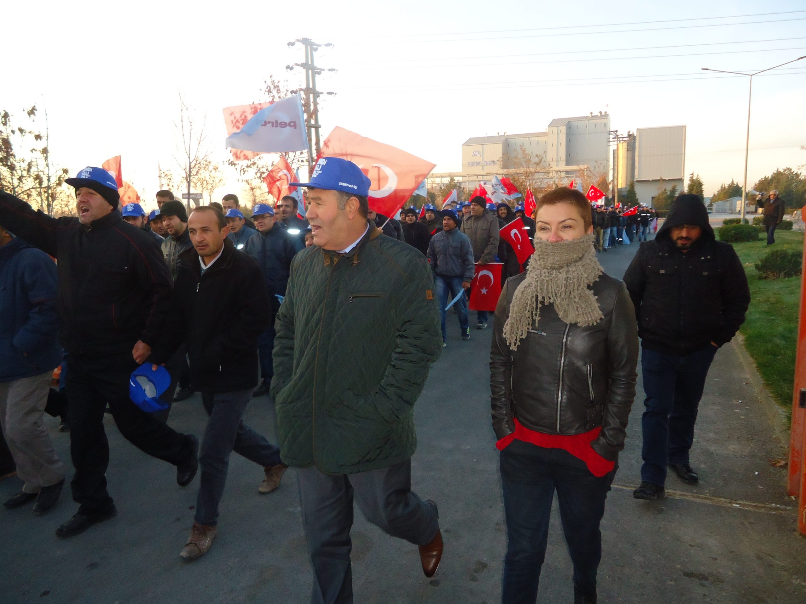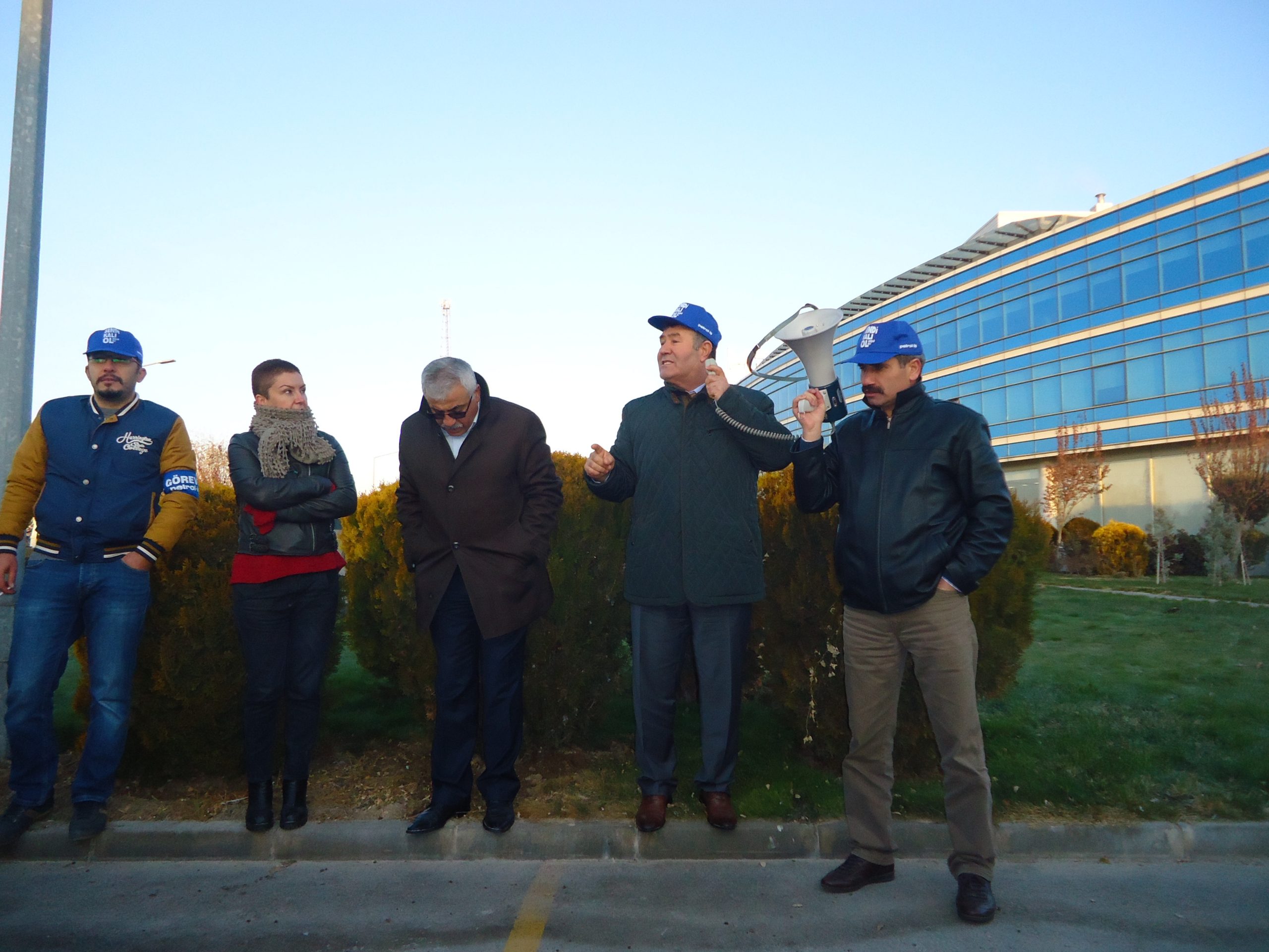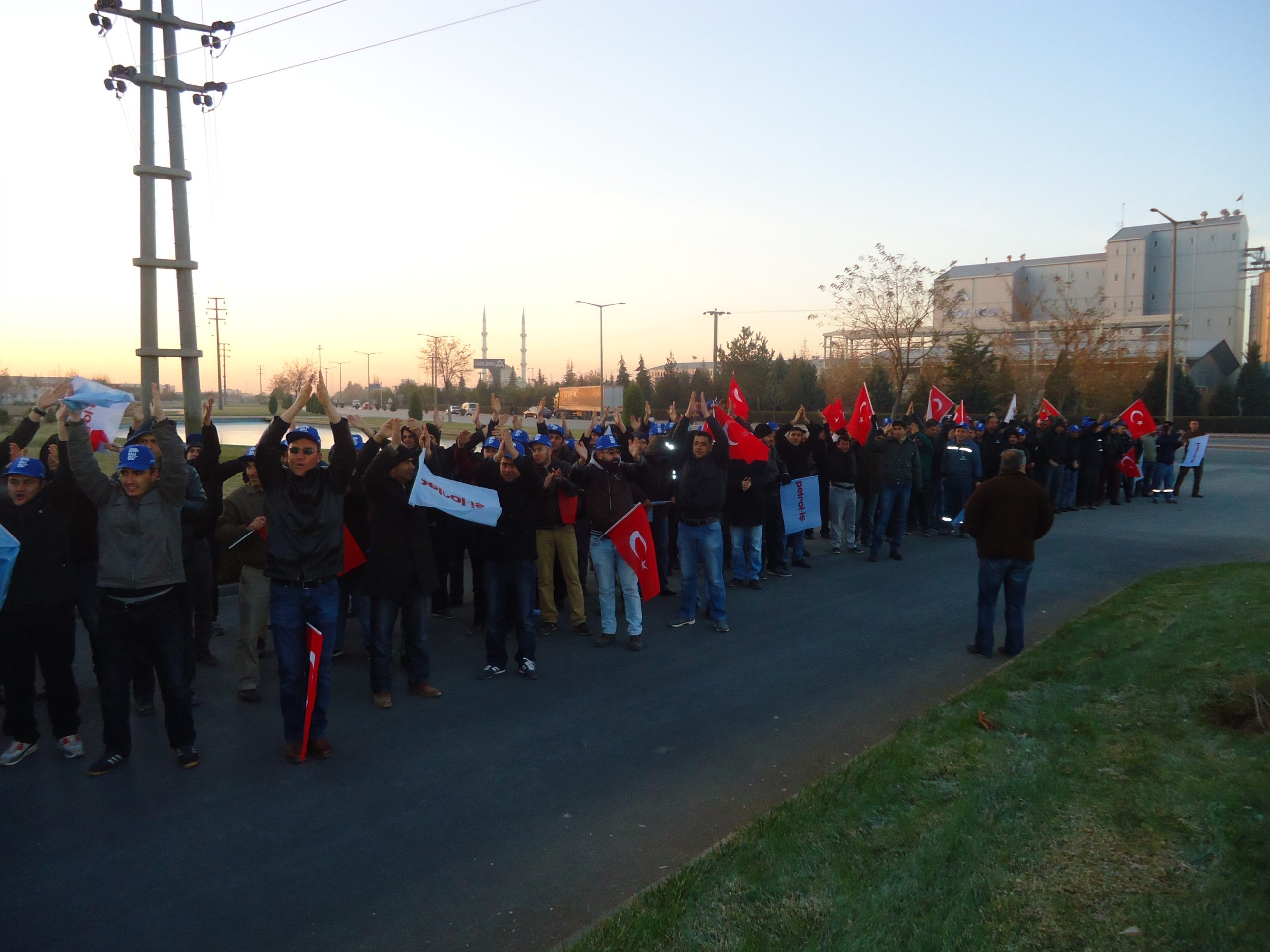 Konya’da kurulu Pakpen Plastik Boru ve Yapı Elemanları San. ve Tic. A.Ş.’de çalışan üyelerimizin işyerinde yaşanan ve çözümsüz kalan sorunları protesto etmek amacıyla 23 Kasım Çarşamba günü gerçekleştirdiği eyleme, Ankara Şube Başkanımız Şuayip Gül, Şube Başkan Yardımcılarımız Sabri Polat, Baki Turhan ve sendikamız avukatlarından Sevda Bayramoğlu da katılarak destek verdi.