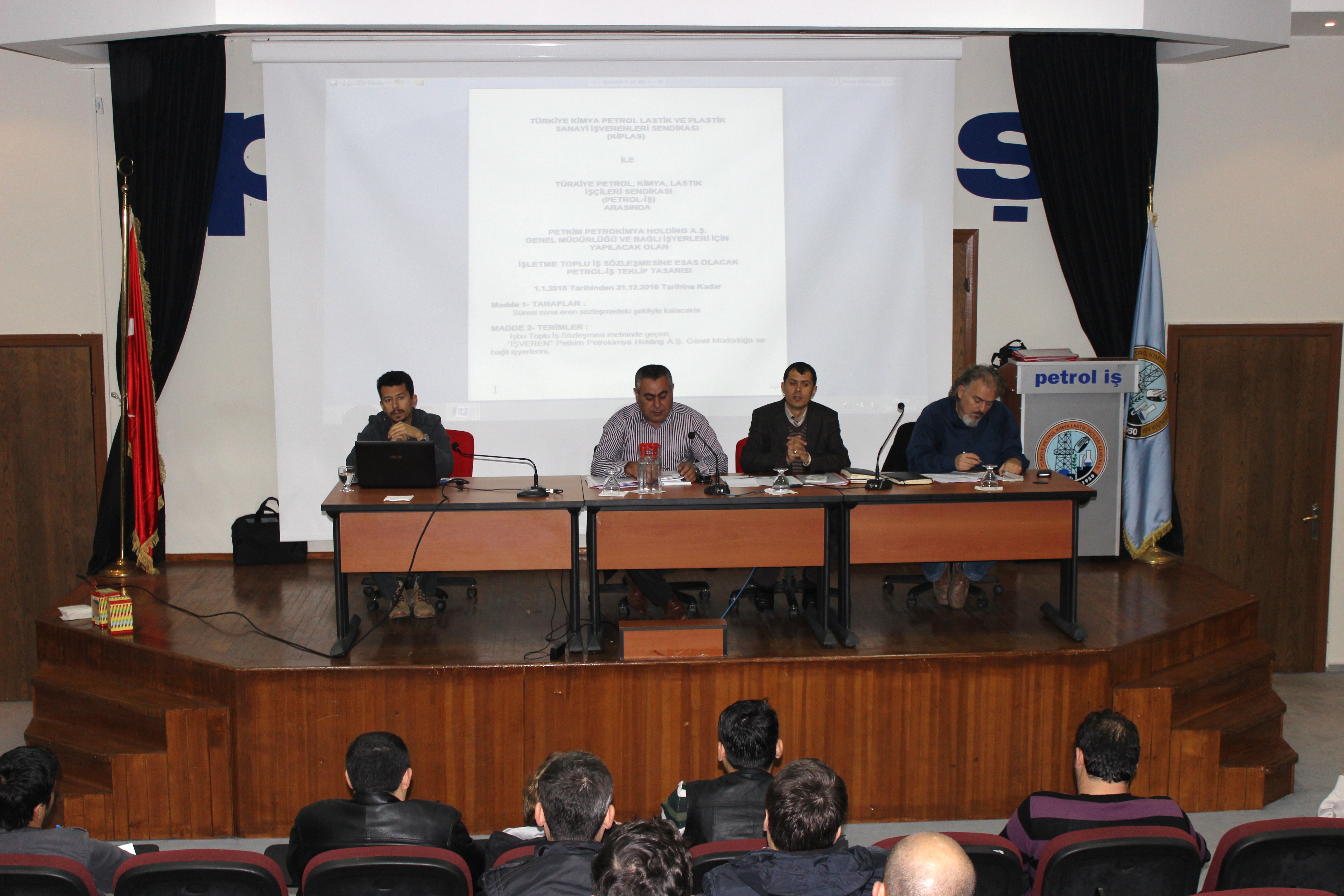 Aliağa Şube’ye bağlı Petkim’de çalışan üyelerimizle beraber 30 Ekim Perşembe günü sendika konferans salonunda 2015-2016 dönemini kapsayacak olan toplu iş sözleşmesi taslak görüşmesi yapıldı.