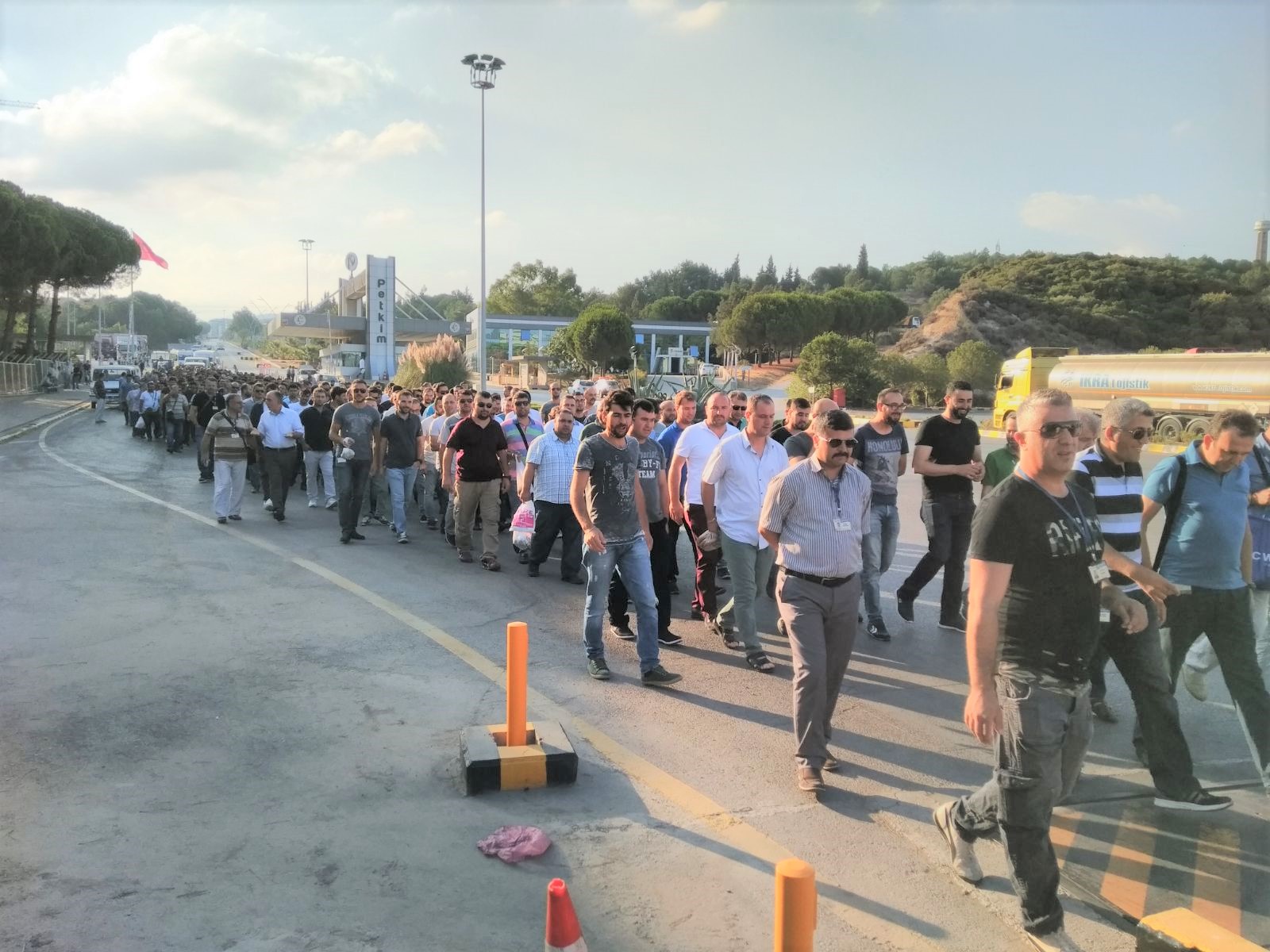 Petkim İşyerimizde bazı yöneticilerin tutum ve davranış bozukluğu içerisinde olduklarını ve bu yöneticilerin bu tür davranışlarının gözden geçirilmesi gerektiğini önceki açıklamalarımızda belirtmiştik. Bugün bir kez daha uyarıyoruz. Bu tür yönetim anlayışı iş barışını ve iş huzurunu bozacak en büyük etkenlerdir. Ayrıca 15 Temmuz hain darbe girişimi sonrası gerçek anlamda suçlu olanlar haricinde hiçbir suç unsuru tespit edilmemiş 25/2’den iş akitleri fesh edilen arkadaşlarımızın derhal işe iadelerini talep ediyoruz. Bu anlamda çeşitli bahaneler gösterilerek iş akdi fesh olmuş ve şu ana kadar herhangi bir tutuklama olayı yaşamamış arkadaşlarımızın işe iadelerini sağlama adına bundan sonraki süreçte Petrol-İş Sendikası ve Türk-İş Konfederasyonu olarak bu hukuksuz uygulamanın ortadan kalkması için elimizden geleni yapacağımızı bir kez daha belirtmek isteriz.