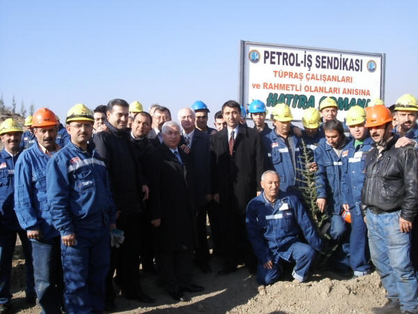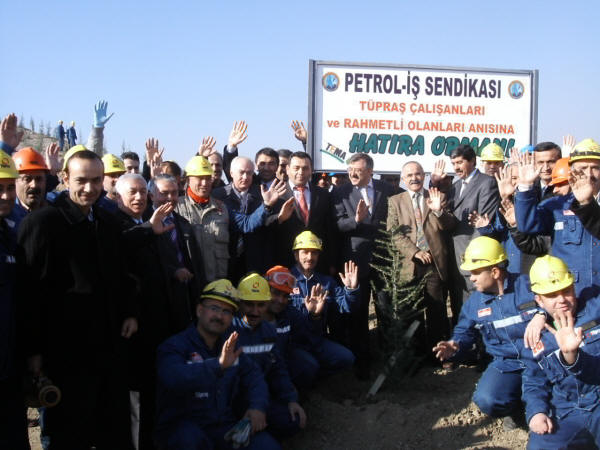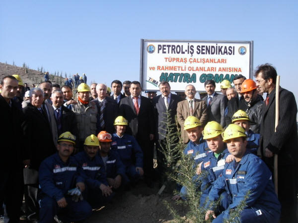 03.12.2007Tüpraş’ta çalışan üyelerimizden elde edilen gelir ile Kırıkkale’nin Bayrak Tepe Mevkii olarak geçen alana 1400 tane çam dikilerek “ Petrol-iş Sendikası Tüpraş çalışanları ve rahmetli olanları anısına “ adını taşıyan bir hatıra ormanı oluşturuldu.Dikime Kırıkkale Valiliği, Belediye Başkanlığı, İl Emniyet Müdürlüğü, Tüpraş Bölge Müdürlüğü, MKEK Barutsan Fabrikası Müdürlüğü, Orman ve Çevre İl Müdürlüğü Kırıkkale’de bulunan Sivil Toplum kuruluşları ve yaklaşık 350 üyemiz katıldı.Şube Başkanımız Recep SEFER, “yaşanılabilir bir Kırıkkale için yeşil alanların oluşturulması gerektiğini belirterek bizim Tüpraş işçileri ile başlattığımız bu çalışma dilerim tüm insanlara örnek teşkil eder” dedi.