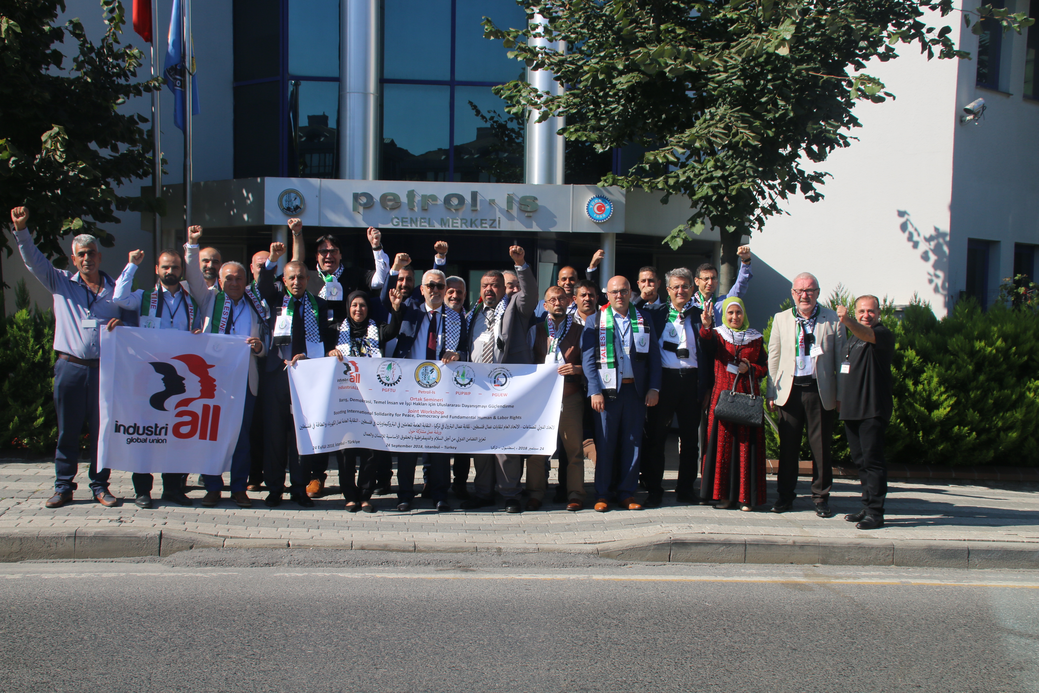Seminere; IndustriALL Küresel Sendika adına Genel Sekreter Yardımcısı Kemal Özkan ve yardımcıları, Filistin’den, Filistin Genel İşçi Sendikaları Federasyonu Genel Sekreter Yardımcısı Rasem Bayari, Petrokimya İşçileri Kamu Sendikası Genel Başkanı Mohamed Abu Adwan, Genel Elektrik ve Enerji İşçileri Sendikası Genel Başkanı Bassam Yaeesh başkanlığında toplamda 12 sendikacıdan oluşan heyetler katıldı. Konuk olarak davet edilen Filistin İstanbul Başkonsolosu AbdalKarim Al-Khatib ne yazık ki geçirdiği bir rahatsızlık dolayısıyla seminerde yer alamadı. UHİM (Uluslararası Hak İhlalleri İzleme Merkezi) Başkanı Ayhan Küçük de seminerin açılış kısmına konuk olarak katıldı.