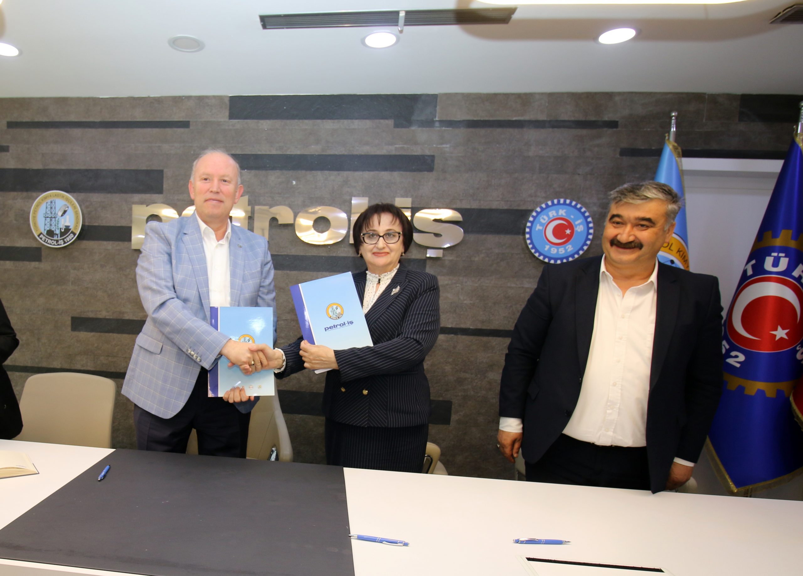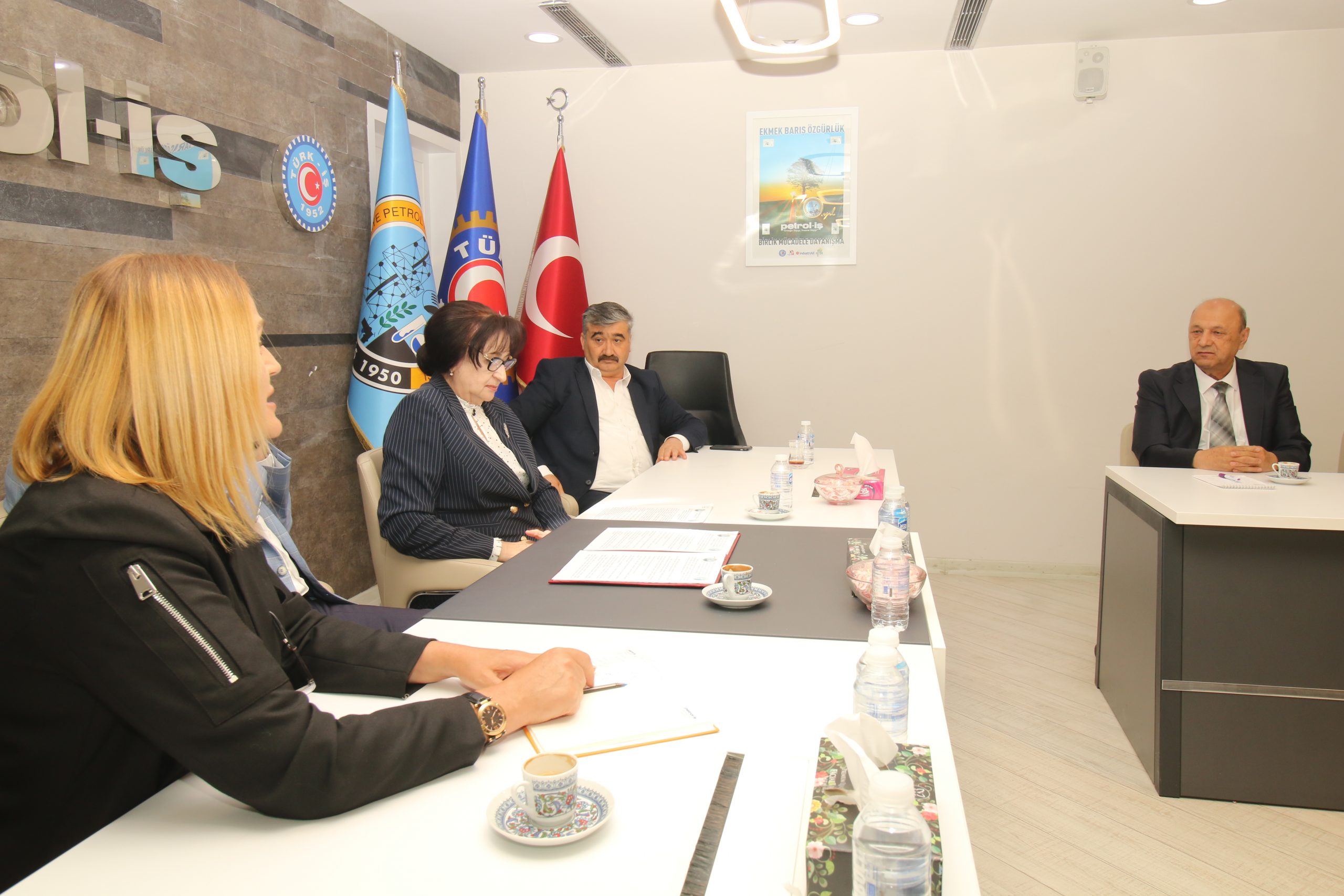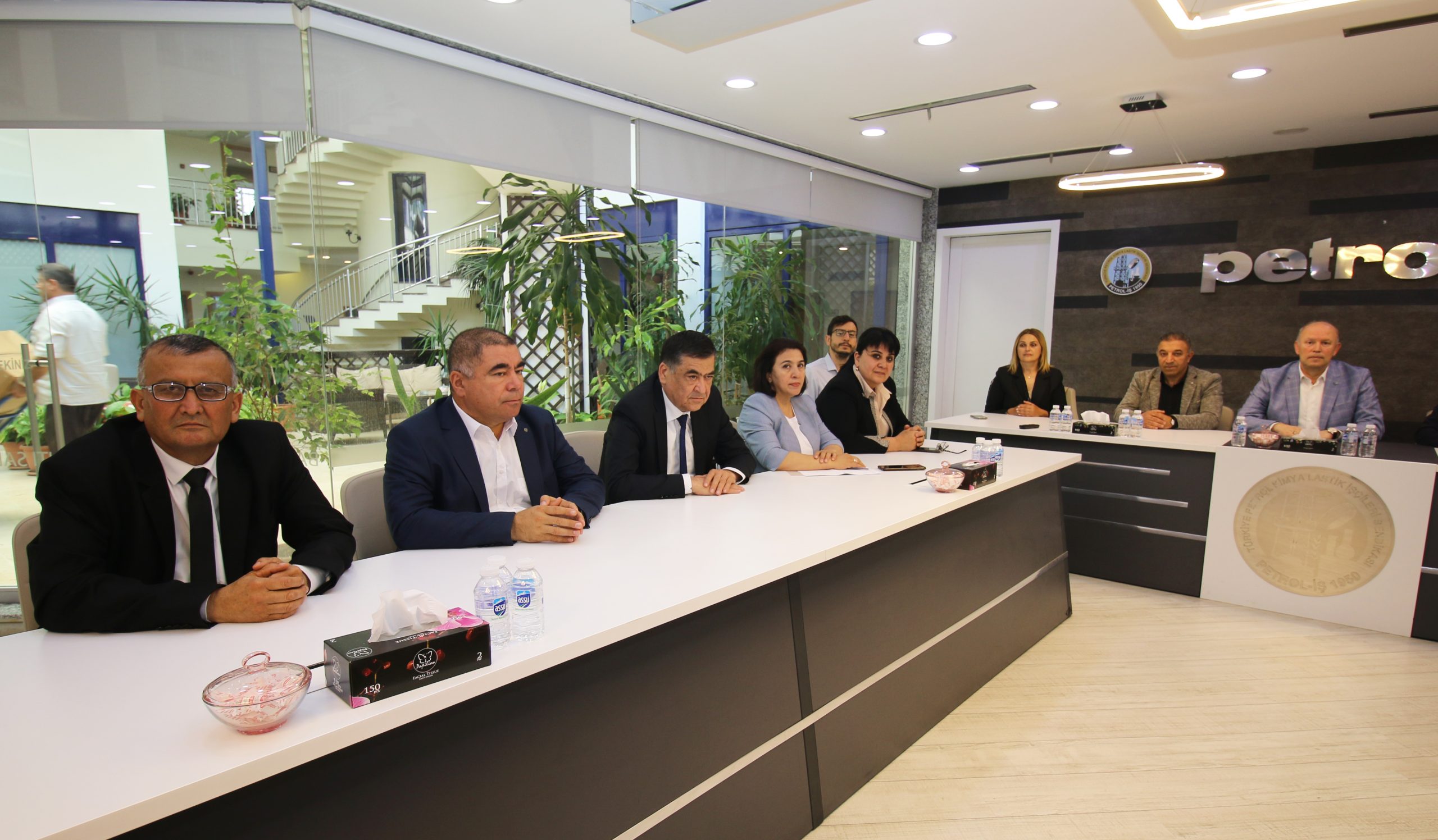Petrol-İş Genel Merkezinde iki sendika arasında yapılan görüşmelere Petrol-İş Sendikasından Genel Sekreter Salih Akduman, Genel Mali Sekreter Erhan Yakışan, Genel Örgütlenme ve Eğitim Sekreteri Niyazi Recepkethüda ve Uluslararası İlişkiler Uzmanı Rıza Köse katıldı.