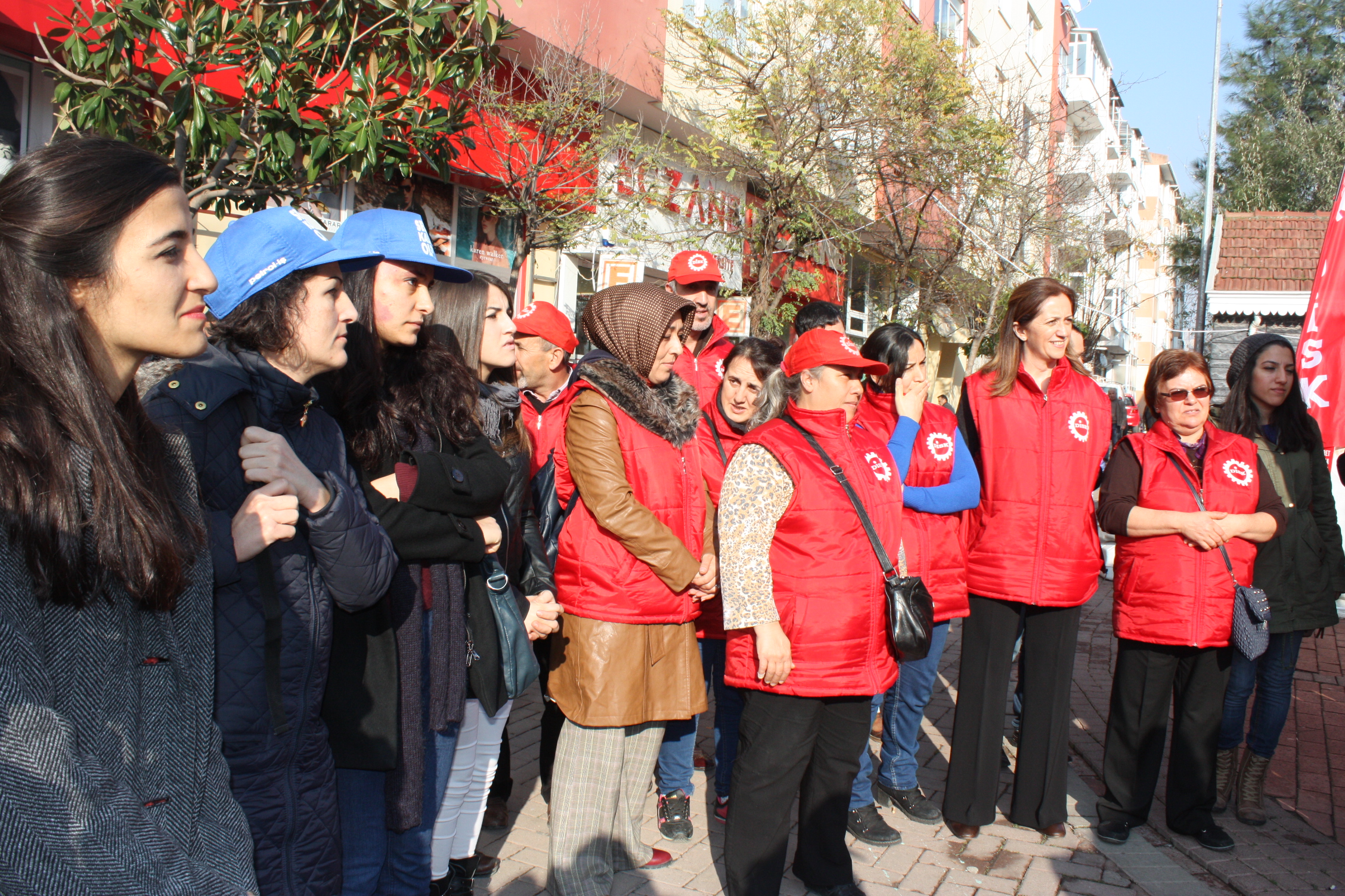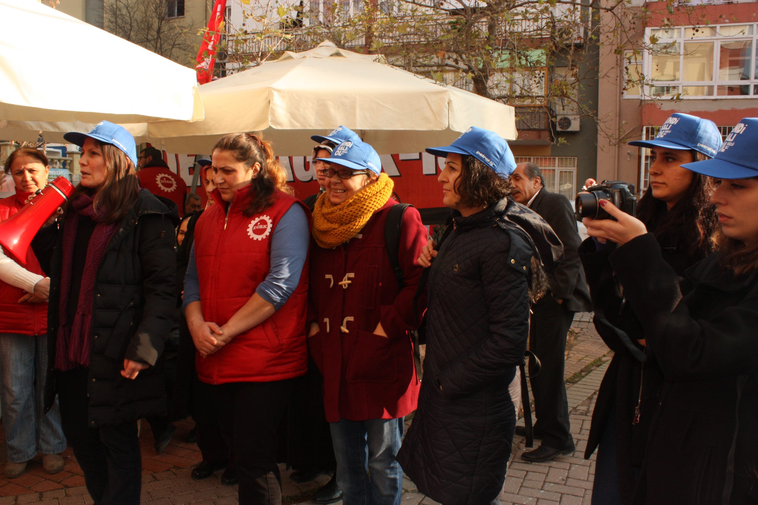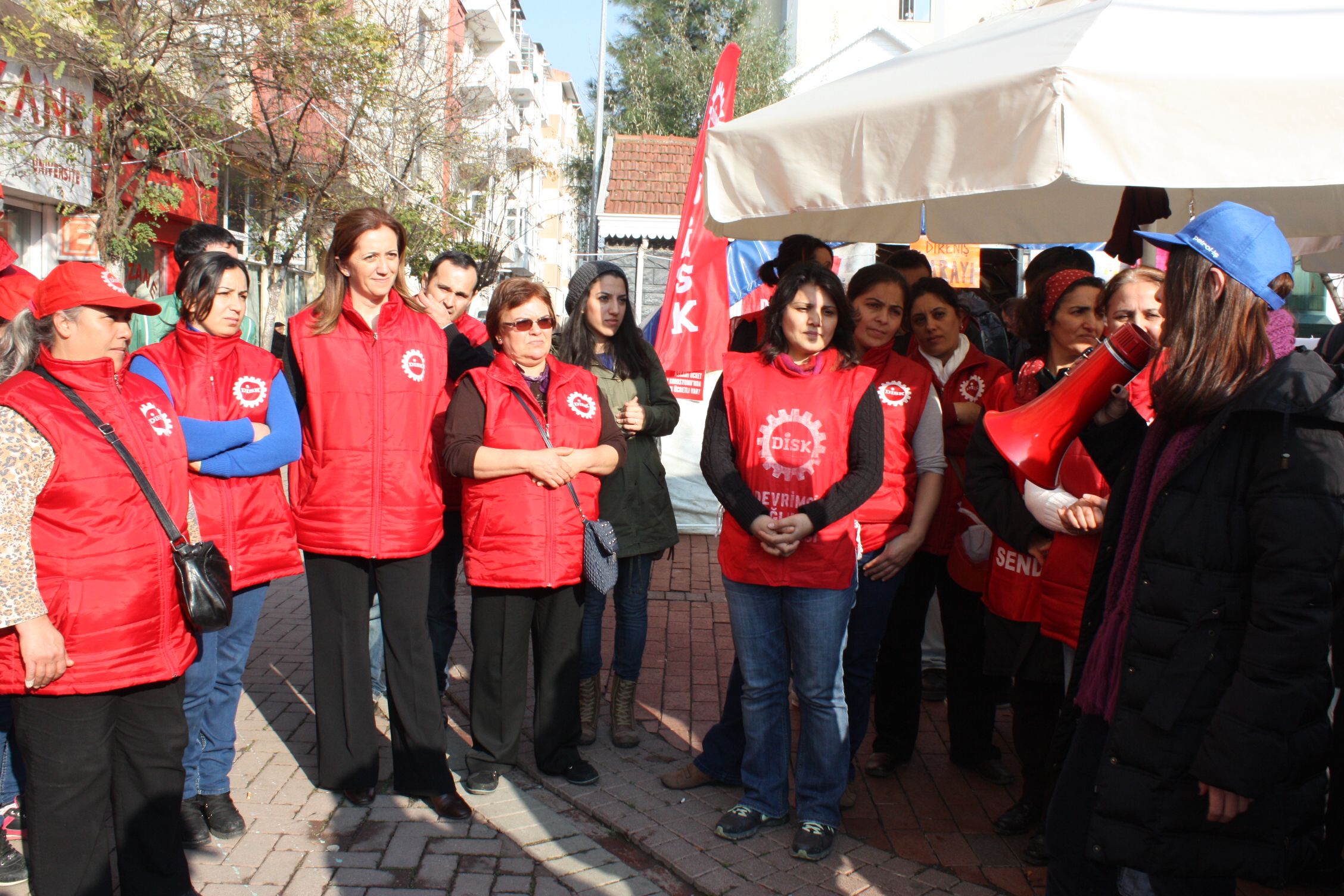 Petrol-İş adına konuşma yapan Nuran Gülenç, “Güvencesiz çalışma biçimlerinde olan esnek, taşeron çalışma, son yıllarda yaygın çalışma biçimlerine dönüştürüldü. Bu alanlarda ise daha çok kadınlar çalışmak zorunda bırakılıyor. 12 gündür sergilediğiniz kararlılık, gözlerinizdeki inanç ile bu direnişi başarıyla sonlandıracağınıza inanıyoruz. Bugün burada dayanışmak için yanınızdayken yarın olduğumuz her yerde sesiniz olmaya devam edeceğiz” dedi.