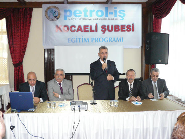 Petrol-İş’ten yeni üyelere sendikal eğitim27.03.2008Petrol-iş Kocaeli şubesine yeni üye olmuş 100 çalışana Şube tarafından Sendikal Eğitim verildi. Tüpraş Genel Müdürlüğü, Tüpraş İzmit Rafineri Müdürlüğü, Gübretaş Yarımca ve Adapazarı Ege Kimya fabrikalarında çalışan yeni üyelerin sendikal eğitimi Gündüz Programı ve Akşam Programı olmak üzere iki grupta verildi.Sendikal Eğitim Programına katılan Kocaeli Şube Başkanı Ali Ufuk YAŞAR da eğitimcilere “Üye olduğunuz sendika, bu ülkede emek adına verilmiş mücadele dolu bir tarihin sahibidir. Petrol-iş toplum vicdanının ta kendisidir. Bu sendikayı yarınlara taşıyacak olanlar sizlersiniz. Bunun kıymetini bilin” dedi. Petrol-iş Genel Örgütlenme ve Teşkilatlanma Sekreteri Nimetullah SÖZEN’de sendikal bilincin oluşmasında eğitimin önemini vurguladı.