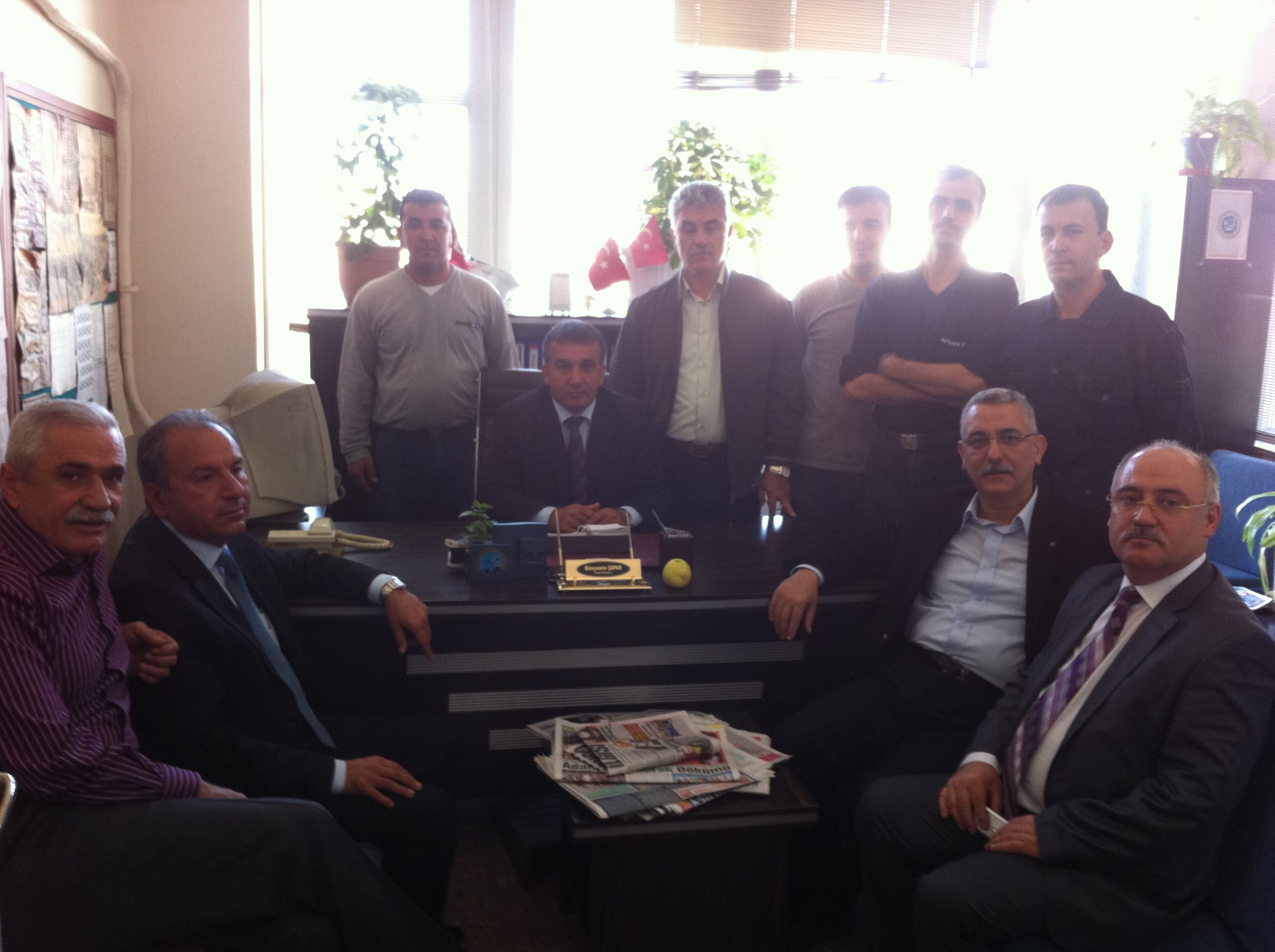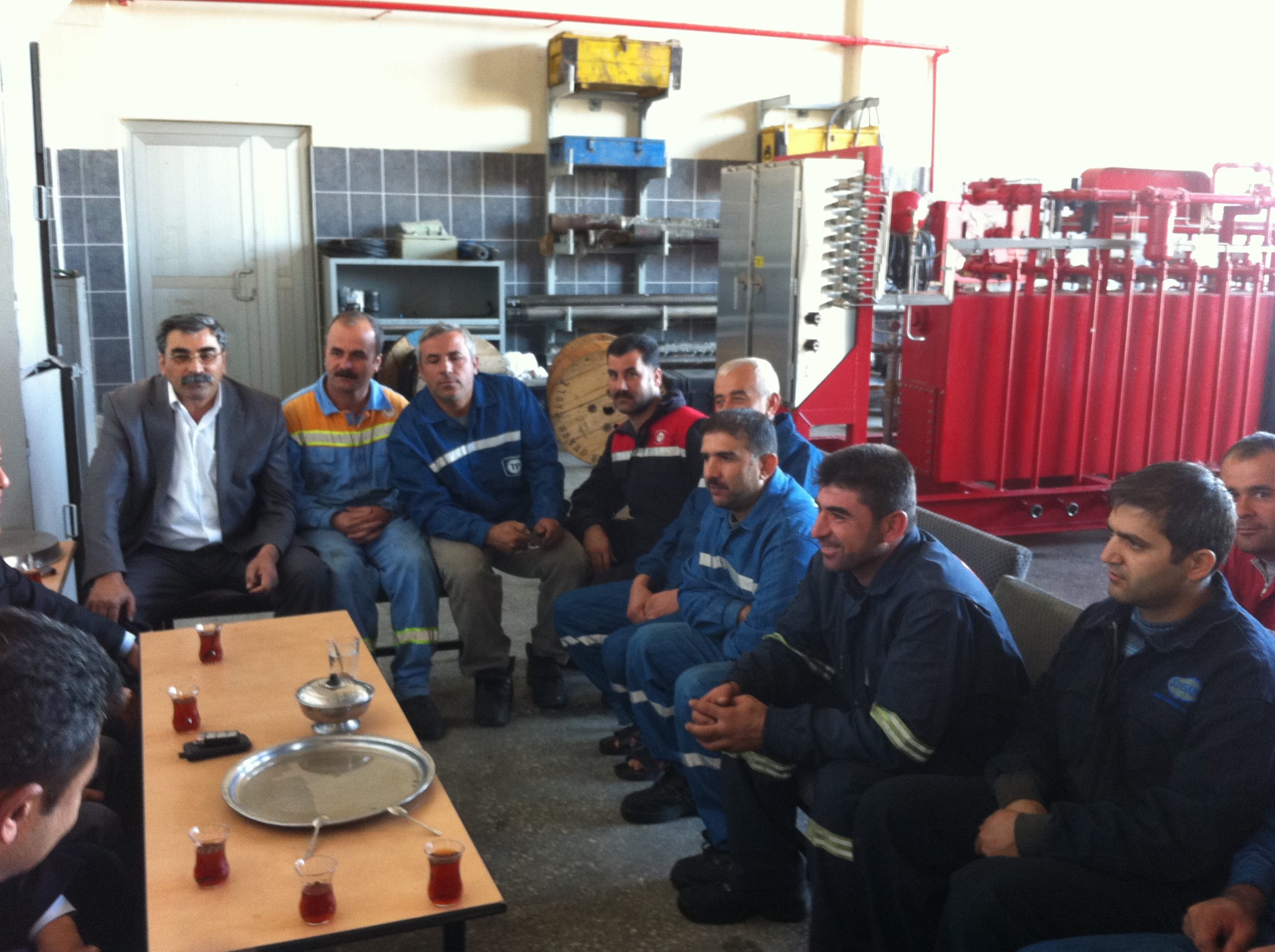 1 Kasım 2011 Salı gününü Adıyaman’da geçiren başkanlarımız önce TPAO Bölge Müdürlüğü’ne uğradılar. Bakım-onarım ve nakliyat atölyesinde çalışan üyelerimizle gerçekleştirilen toplantının ardından Şambayat 13 Sondaj Kulesi’ne geçerek birlikte yemek yediler.