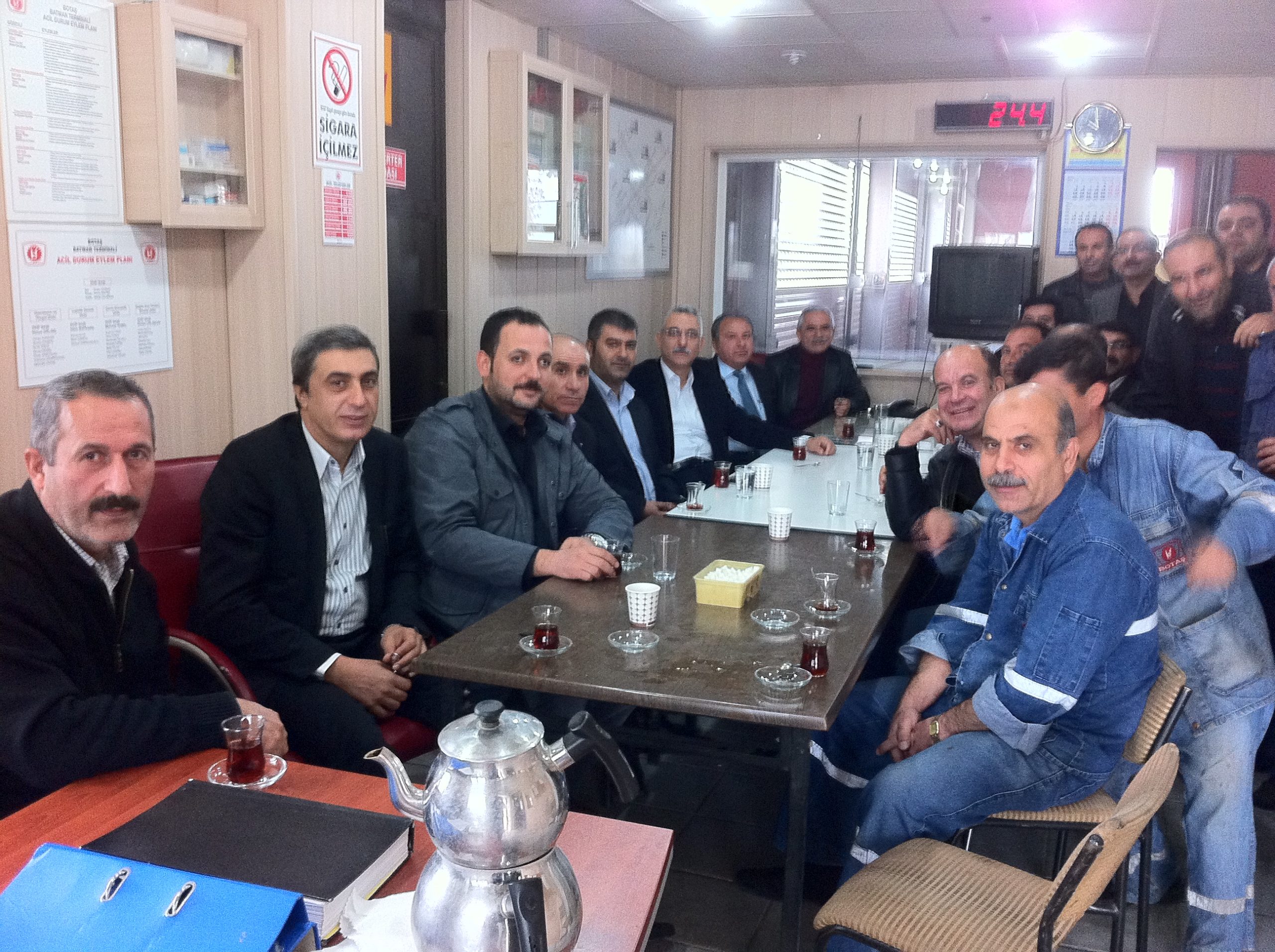 Oradan Batman’a geçen merkez yöneticilerimiz, 16.00-00.00 vardiyasında çalışan TÜPRAŞ Emniyet Çevre Kontrol Müdürlüğü’ndeki üyelerimizle buluştular. Daha sonra BOTAŞ’ta işçileriyle kahvaltı yapan yöneticilerimiz oradan Dodan üretim sahasına geçtiler.