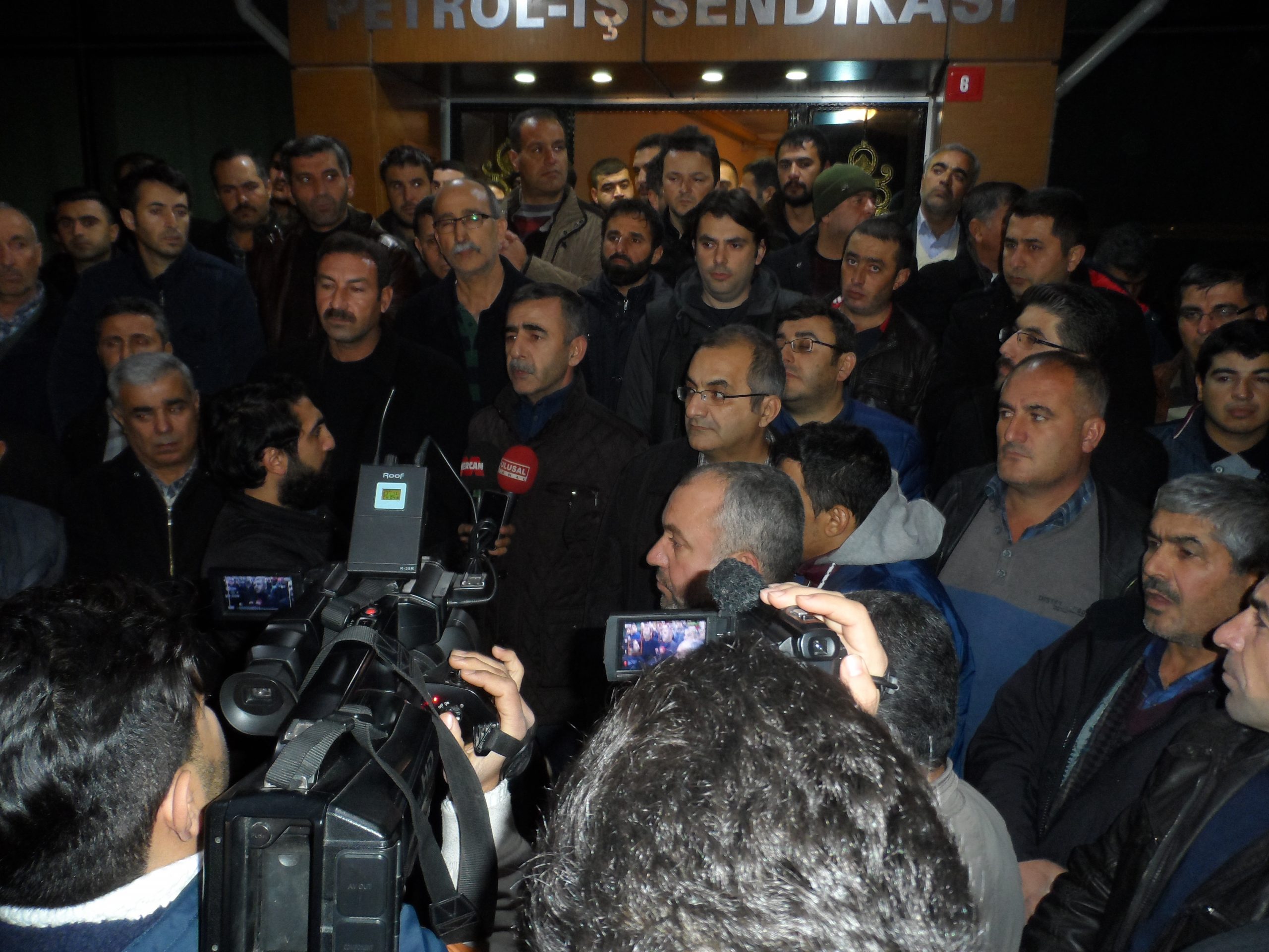 Türkiye Petrolleri’ndeki (TP) küçültme operasyonuna karşı, Ankara’da Enerji ve Tabii Kaynaklar Bakanlığı önünde 26 Aralık tarihinde yapılacak basın açıklaması için yola çıkmaya hazırlanan Petrol-İş kafileleri Adıyaman, Batman ve Lüleburgaz’da güvenlik güçleri tarafından engellendi.