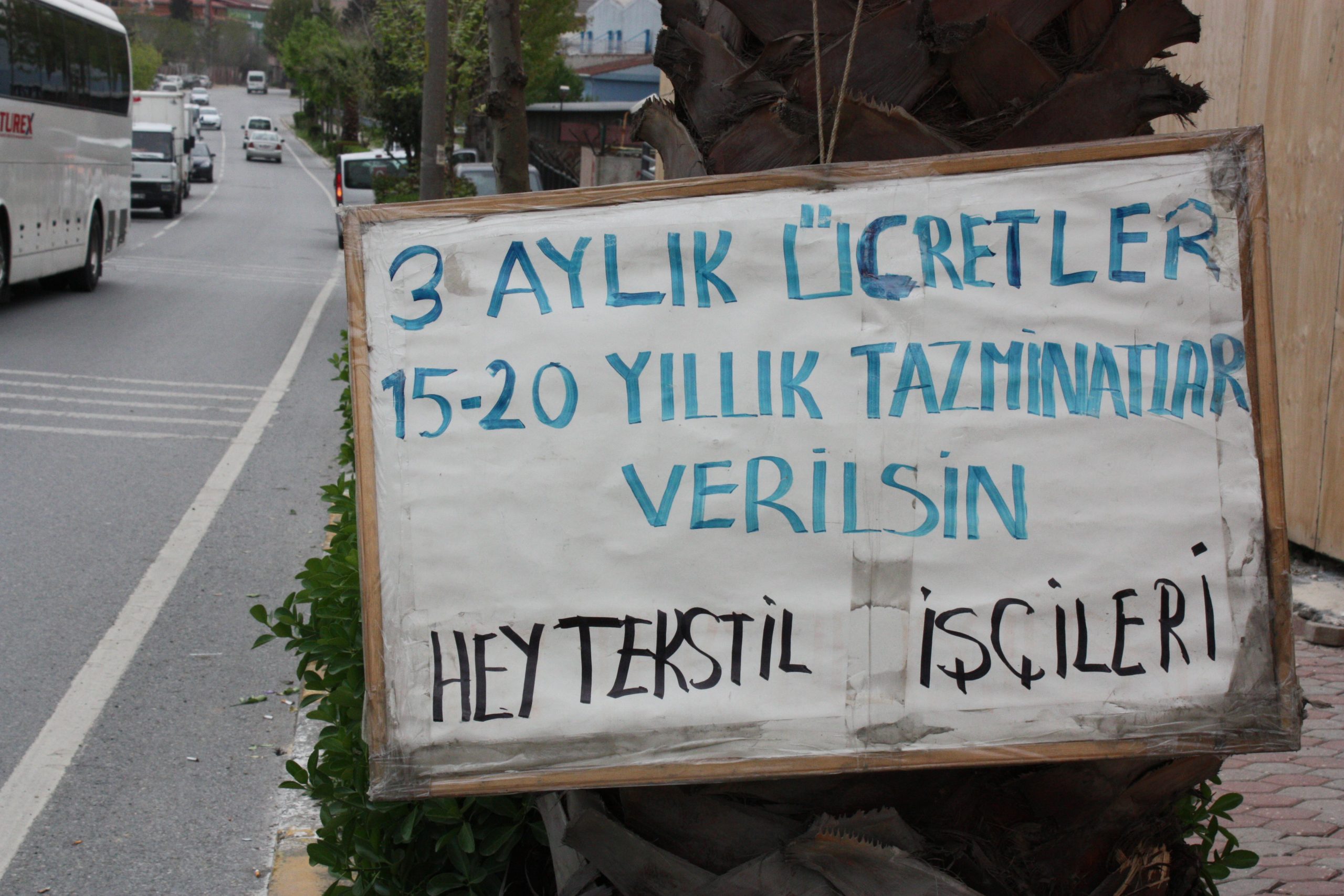 “Bu ülkede 4857 sayılı bir yasa var. Bu yasada işçiler işten atılırsa kıdem ve ihbar tazminatları işveren tarafından ödenir diyor. Bu yasayı kim uygulayacak? Başbakan, Bakanlar Kurulu uygulamayacak mı? Her şey ortada ama kimse bu işçilerin alacaklarının ödenmesi için girişimde bulunmuyor. Bu ülkede kıdem tazminatı var da Hey Tekstil işçileri neden alamıyor? Bütün işçilerin birleşe birleşe kazanacaktır. Bizler de Hey Tekstil işçileri kazanana kadar bu mücadeleye destek vereceğiz.”