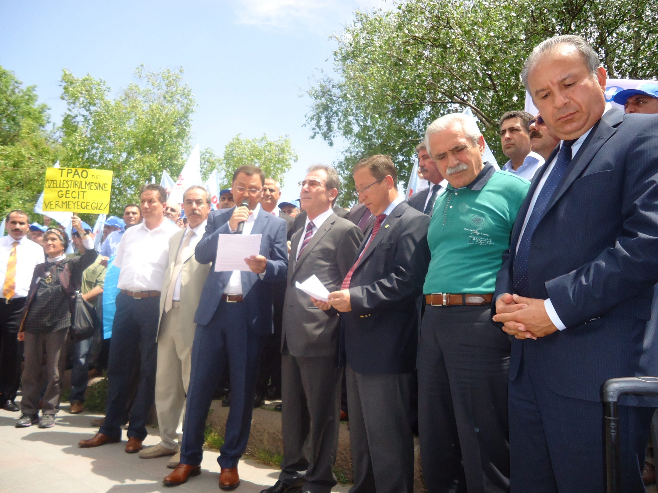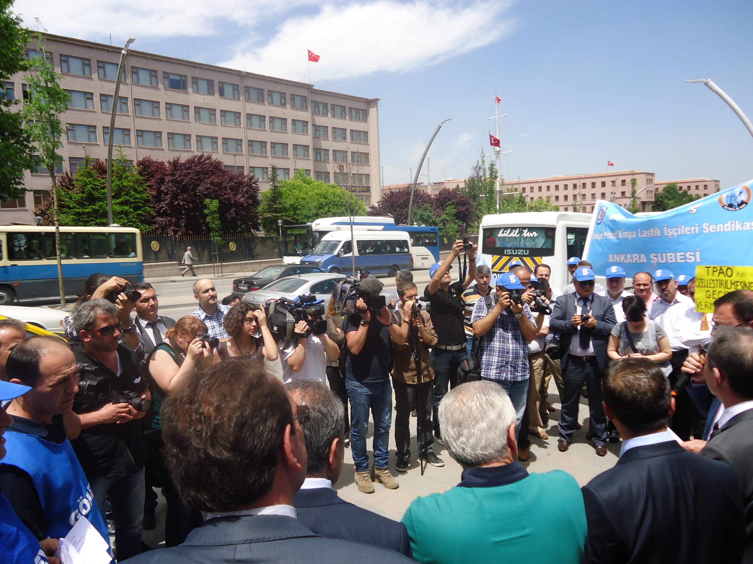 Ankara Şubemizde örgütlü işyerlerinde ve TPAO’da çalışan üyelerimizin kitlesel katılım gösterdiği basın açıklamasına, Genel Örgütlenme Sekreterimiz Nimetullah Sözen, Genel Yönetim Sekreterimiz Ahmet Kabaca, Ankara Şube Başkanımız Şuayip Gül, Ankara Şube Başkan Yardımcımız Sabri Polat, Adana Şube Başkanımız Abdül Mecit Dönmez, Adıyaman Şube başkanımız Ali Tirpan, Bandırma Şube Başkanımız İsmail Kayan, Batman Şube Başkanımız Mustafa Mesut Tekik de katıldı.