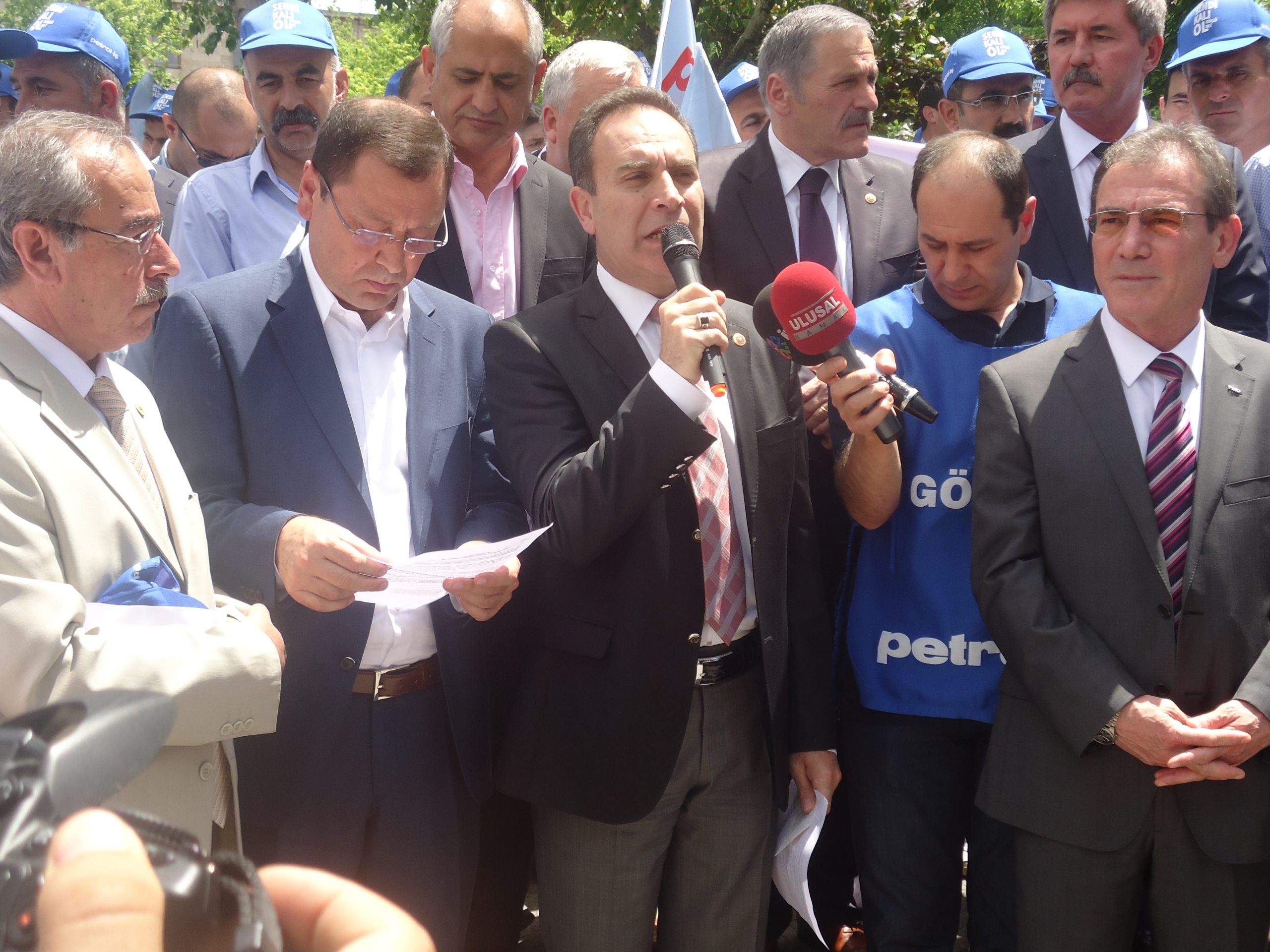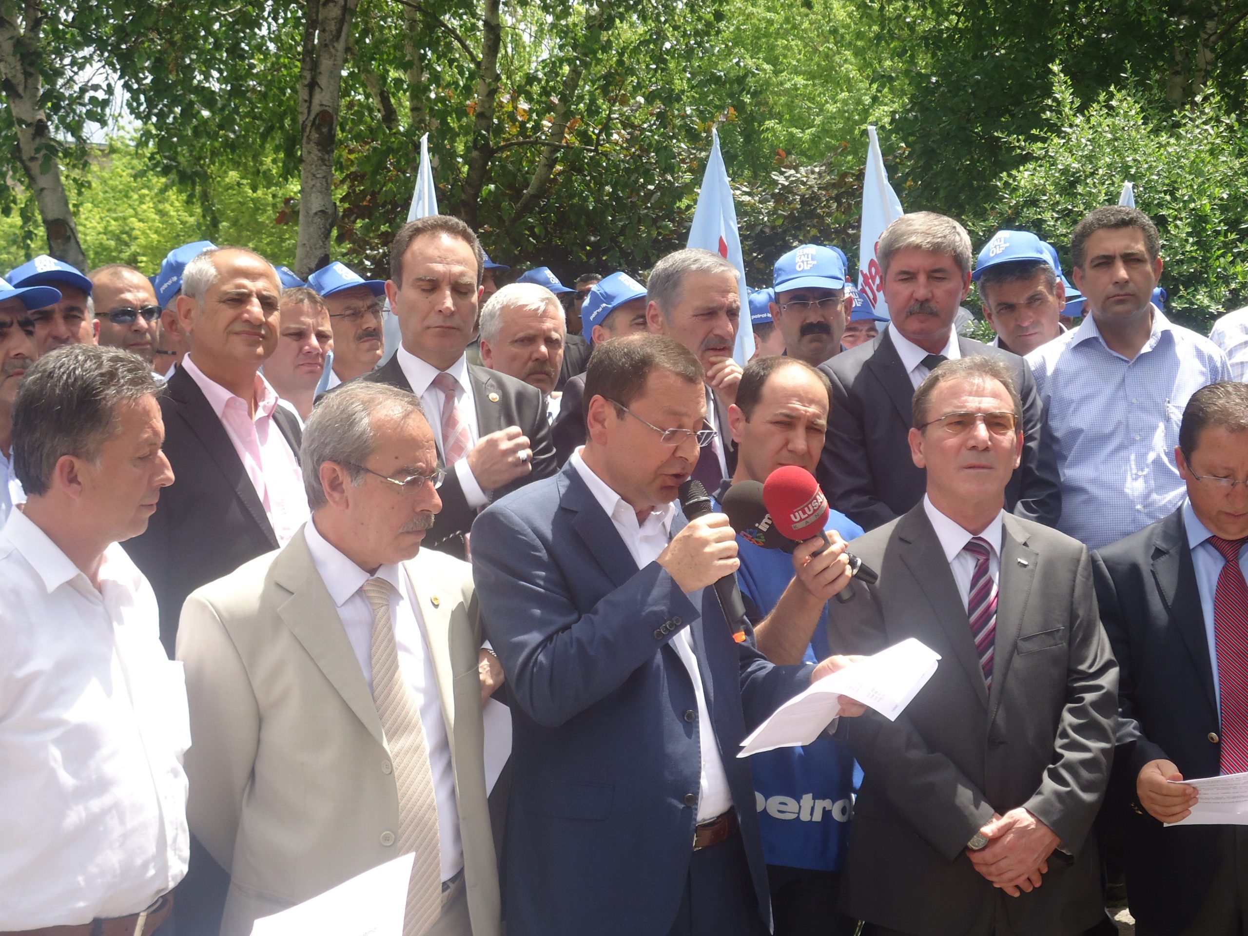 TBMM Dikmen Kapısı önünde 22 Mayıs 2013 tarihinde saat 12:30’da yapılan basın açıklamasına Petrol-İş Sendikası Genel Başkanı Mustafa Öztaşkın, TMMOB Jeofizik Mühendisleri Odası Başkanı Şevket Demirbaş, TMMOB Jeoloji Mühendisleri Odası Başkanı Dündar Çağlan, TMMOB Petrol Mühendisleri Odası Başkanı Mehmet Kul, Türkiye Petrol Jeologları Derneği Başkanı İsmail Bahtiyar katıldı.