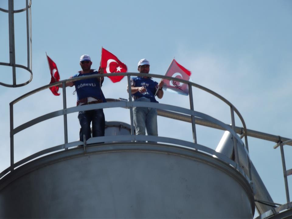 İşyerinde bulunan üyelerimiz ise işten atılan arkadaşlarına destek vermek üzere iş yavaşlatma eylemi gerçekleştiriyor.