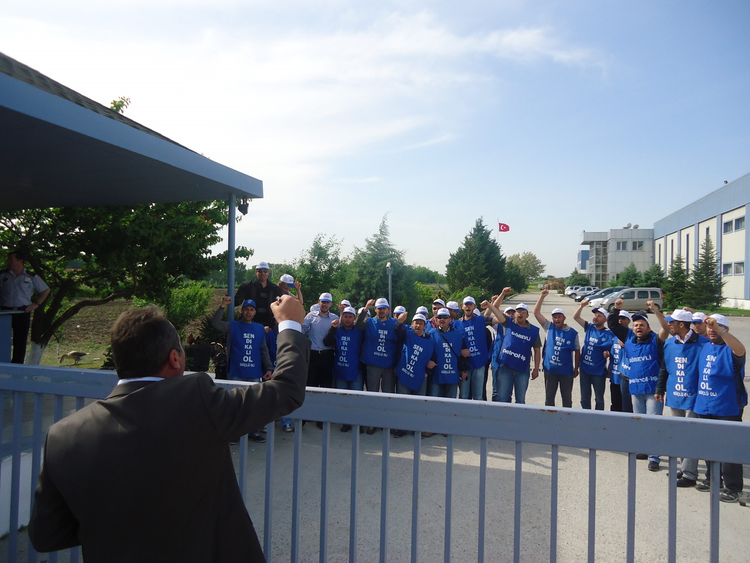 Bu kanunsuz uygulamayı protesto etmek için arkadaşlarımız fabrika önünde direnişe geçtiler.