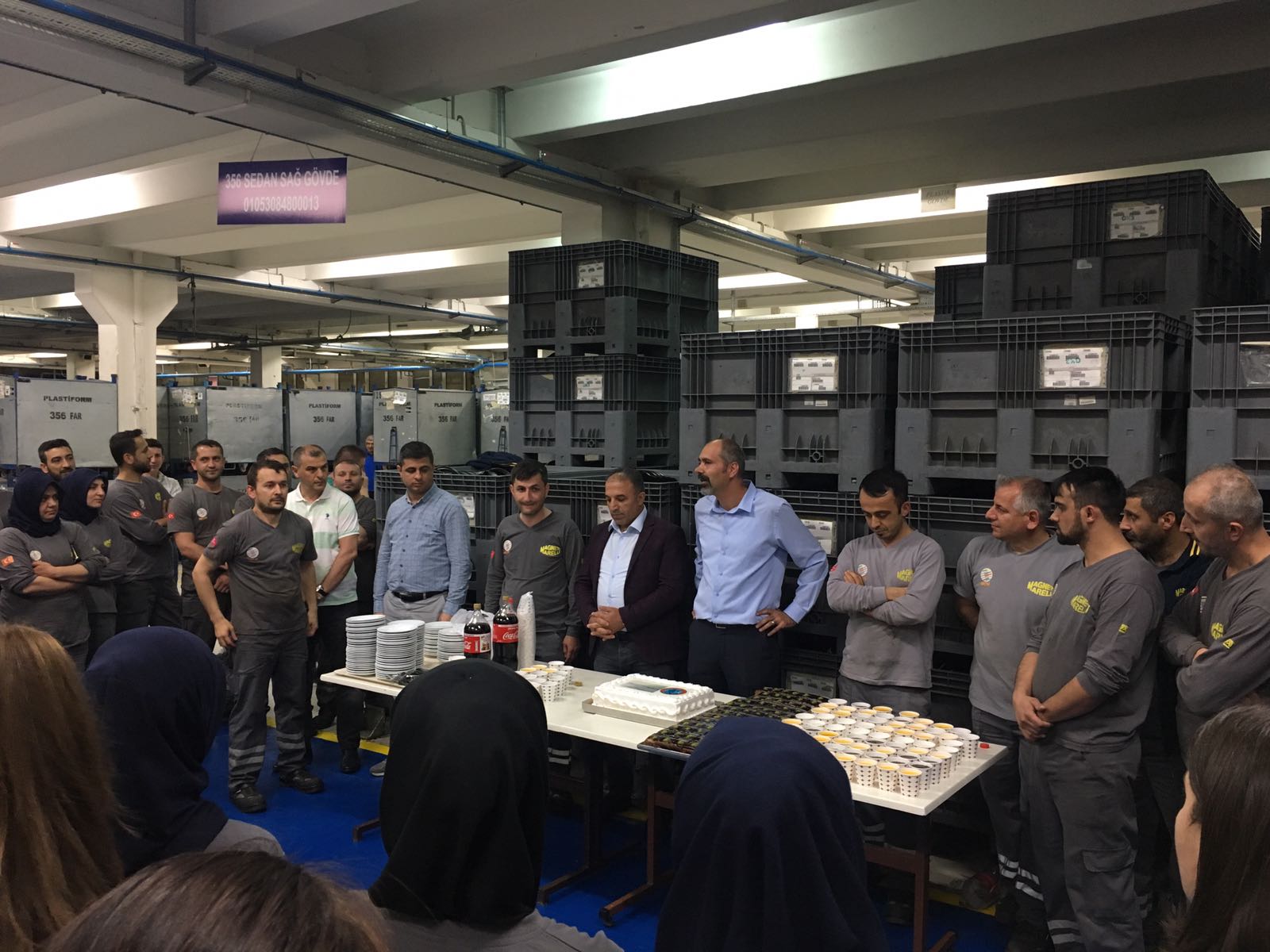 Bursa Şubemizin örgütlü olduğu Plastiform Plastik San.A.Ş. de işveren toplu iş sözleşmesinin imzalanması ve üyelerimizin moral ve motivasyonunun artması adına pasta kesti. Bursa Şube başkanımız Erhan Yakışan da tarafından bu organizasyona katılarak üyelerimizin yanında oldu. Başkan Yakışan üyelerimize yapmış olduğu bu jestten dolayı işverene üyelerimiz adına teşekkür ettiler.