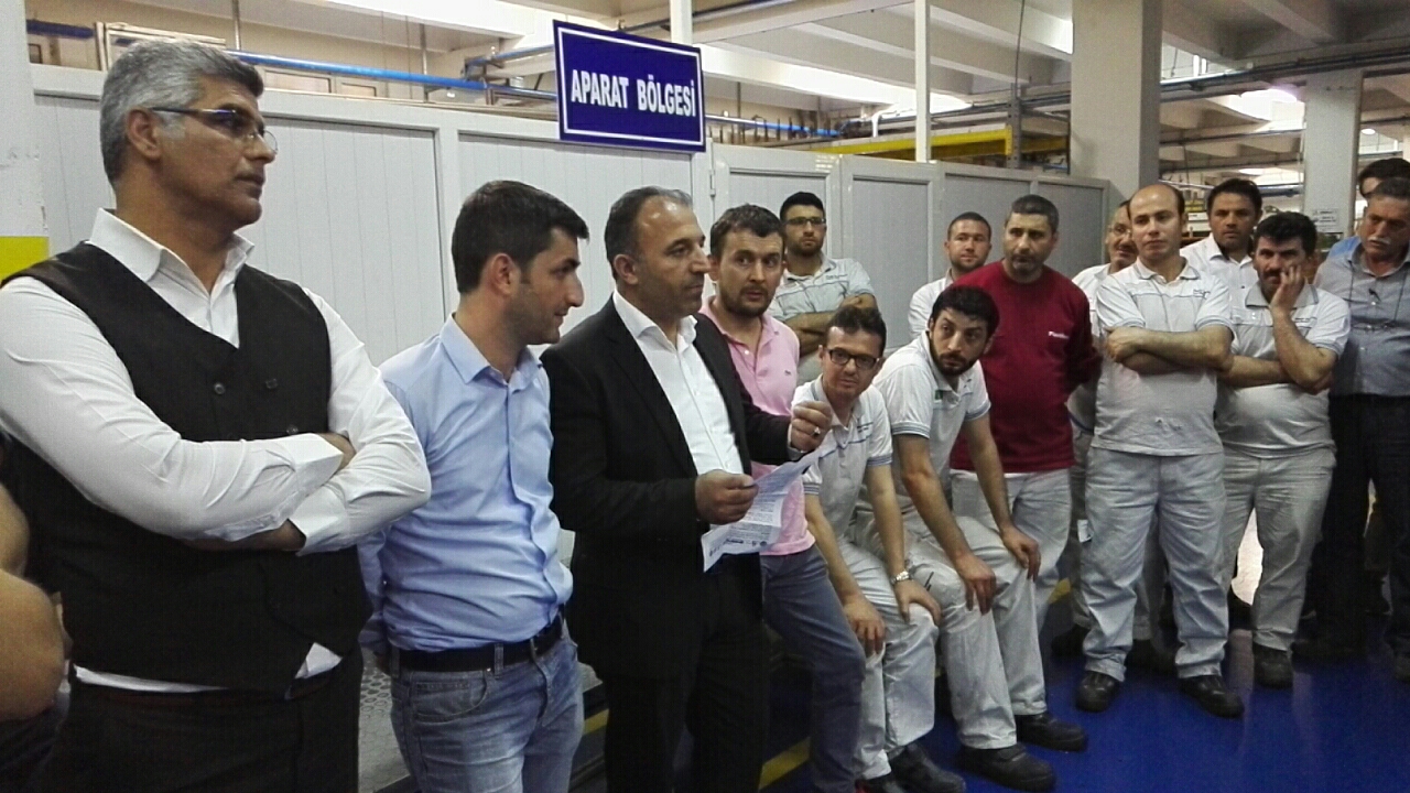 Bursa Şube Başkanımız Erhan Yakışan, Başkan Yardımcımız M.Sedat Özturan ve işyeri temsilcilerimiz Plastiform Plastik San. A.Ş. işyerinde çalışan üyelerimize 24 Mayıs Salı günü sona eren sözleşme ile ilgili açıklamada bulundular.
