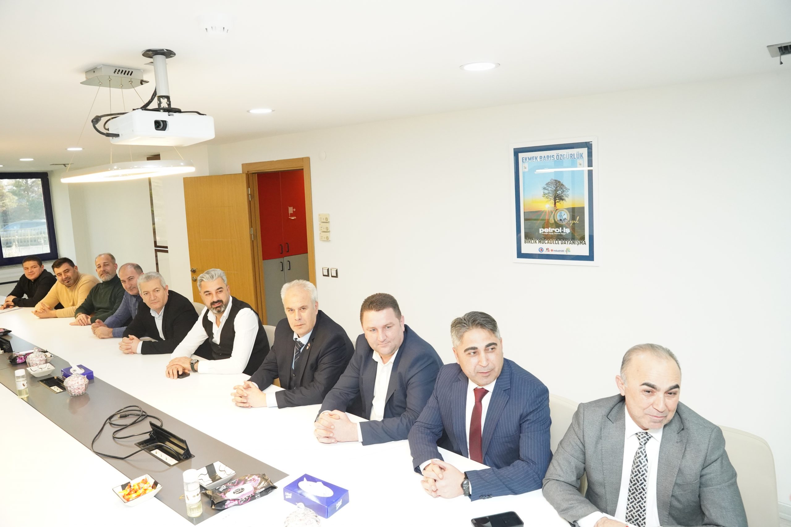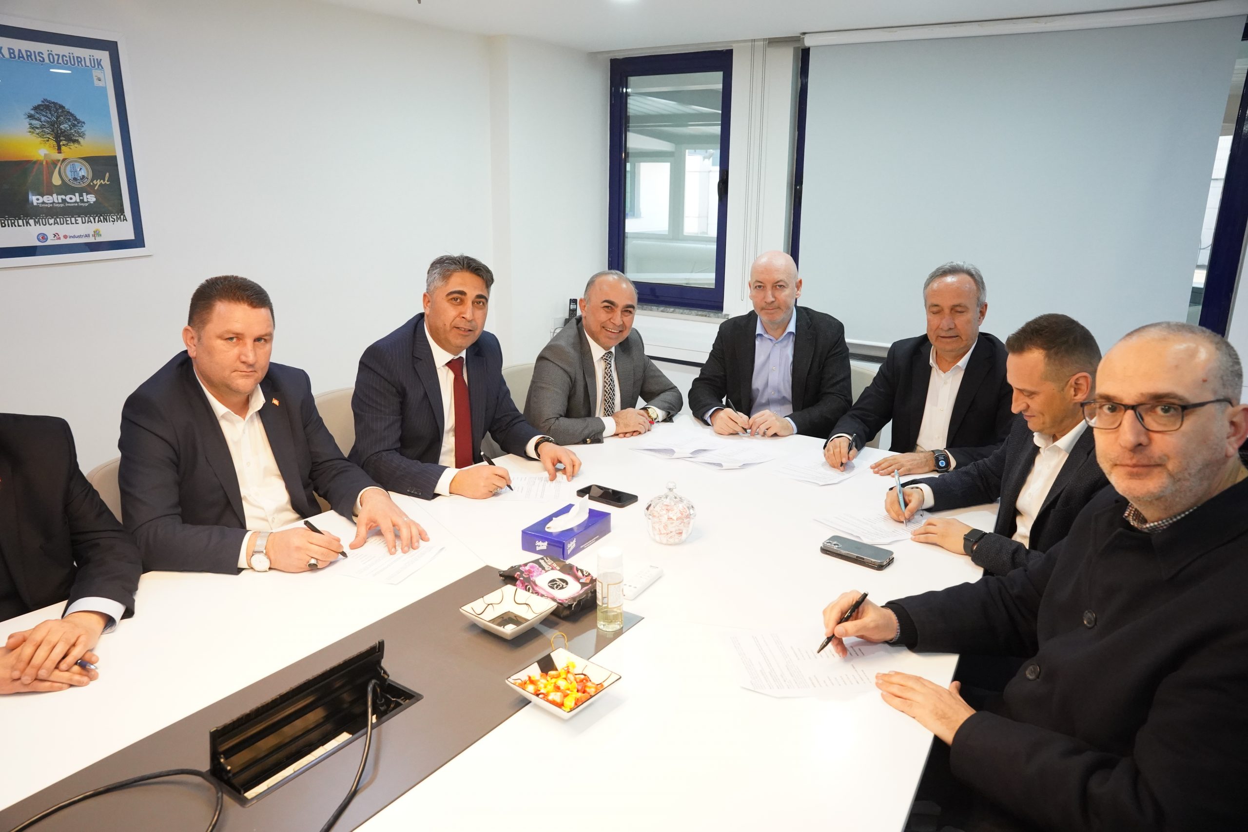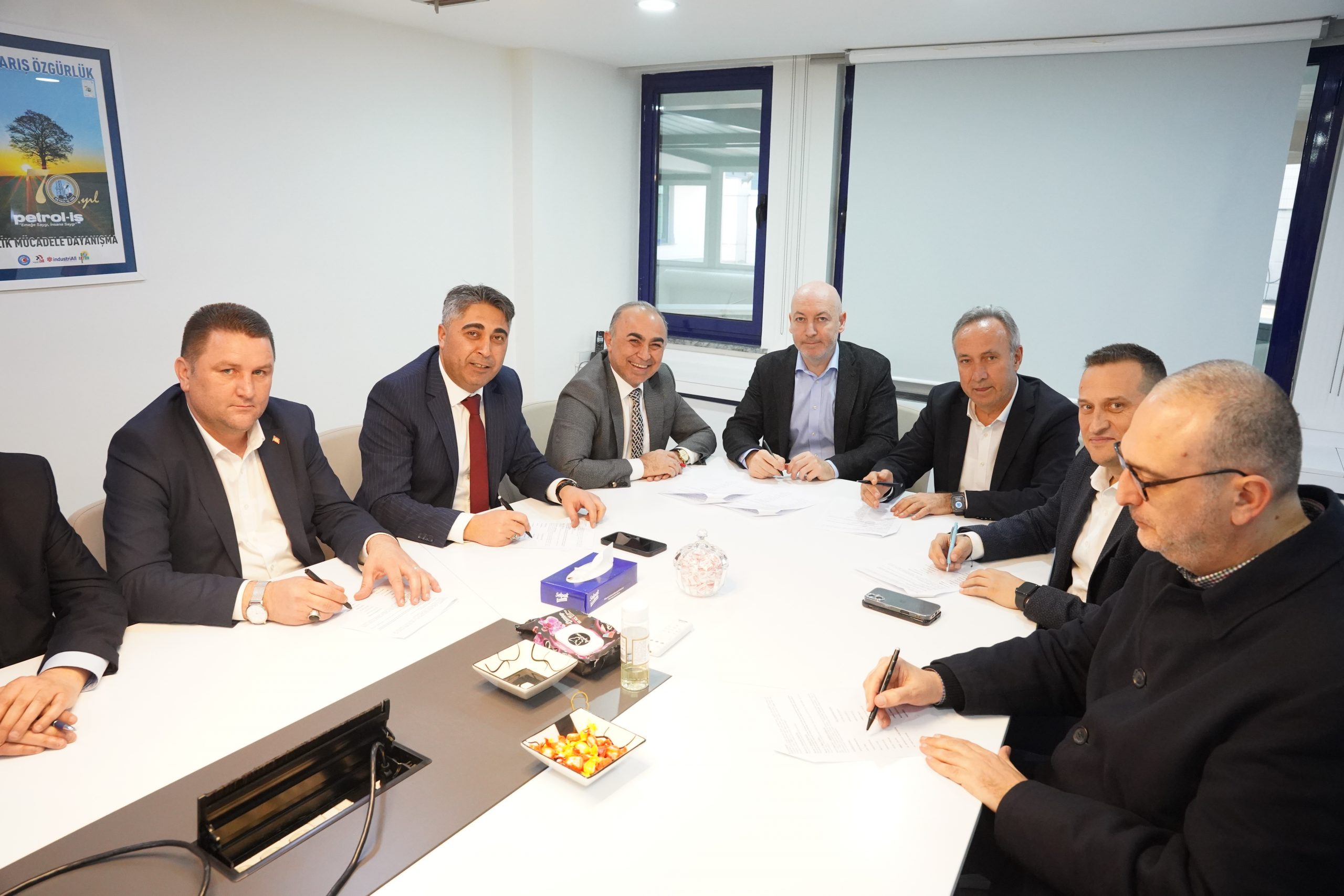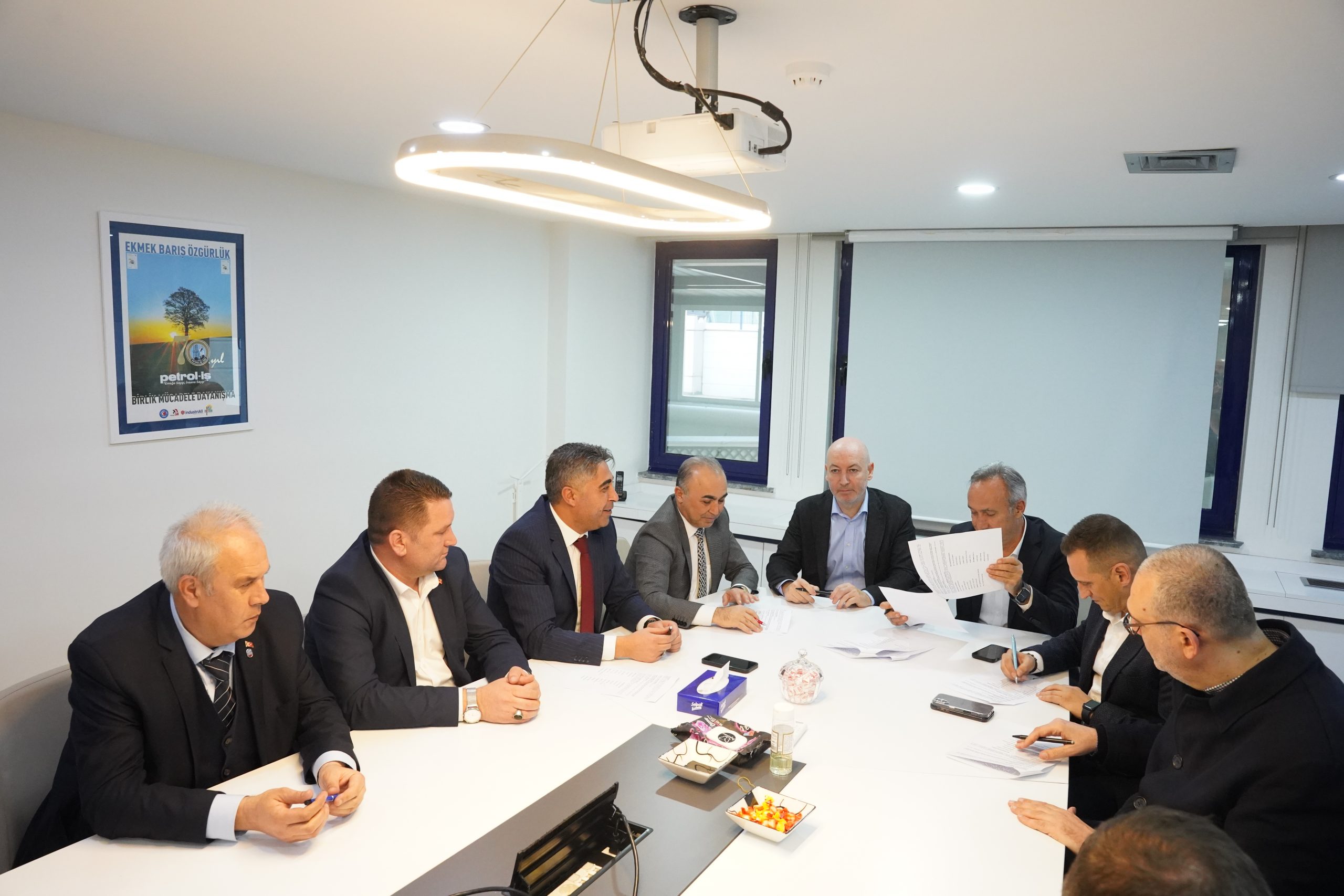 Polimer Kauçuk işyeri toplu iş sözleşmesi toplantısında sendikamız Genel Yönetim Sekreteri Ali Haluk Koşar, Danfoss Polimer Kauçuk Özel Markalar ve SEL Hortumları İş Birimi Başkan Yardımcısı Aron Bensason, Kıdemli Operasyonlar Direktörü Zeki Dinç, İnsan Kaynakları Direktörü Taşkın Bekar, Üretim Direktörü Mutlu İldiz, İnsan Kaynakları Müdürü Harun Çalış ve Oktay Toplar, Kıdemli Maliyet Analisti İsmail Çolak, Av. Seher Elif Köse Özgüç, Av. Faik Efe Savaş; İstanbul 1 Nolu Şube Başkanımız Erkan Zorlu, Şube Başkan Yardımcıları Ergün Artuç ve Tamer Öner, sendikamız Toplu İş Sözleşmesi Uzmanı Özgün Çelik Aygün, Polimer Kauçuk işyeri temsilcileri Ahmet Ziyalı, Muammer Mutlu, Yasin Ekim, Cemal Erdem, Musa Bostancı ve Kaan Arda yer aldı.