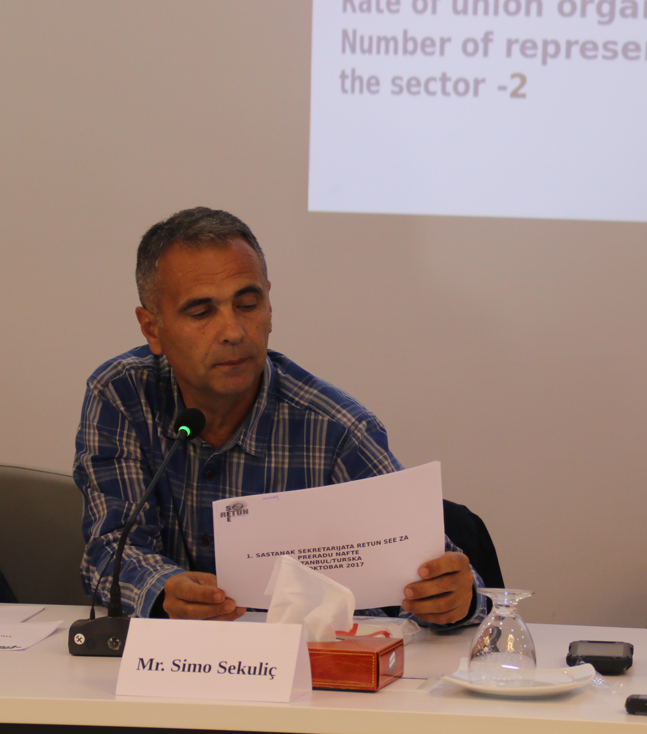 TÜPRAŞ Aliağa Rafinerisi’ndeki patlamada ve Şırnak’taki maden kazasında hayatını kaybedenler için 1 dakikalık saygı duruşundan sonra açılış konuşmasını Retunsee Başkanı Goran Takiç, Petrol-İş Genel Başkanı Ali Ufuk Yaşar ve Retunsee Petrol Rafinerisi Sektreterliği Koordinatörü Petre Tancau yaptı. Daha sonra Retunsee Genel Sekreteri Mitja Fabian Retunsee Ağını ve Petrol Rafineri Sekreterliğini kısaca tanıttı. Toplantı ülke sunularıyla devam etti. Sırasıyla Hırvatistan, Yunanistan, Karadağ, Romanya, Arnavutluk, Sırp Cumhuriyeti, Sırbistan ve Türkiye temsilcisi ülkesindeki Petrol rafinerilerinin yapısını, çalışma koşulları ve sendikal örgütlenme faaliyetlerini anlattı.