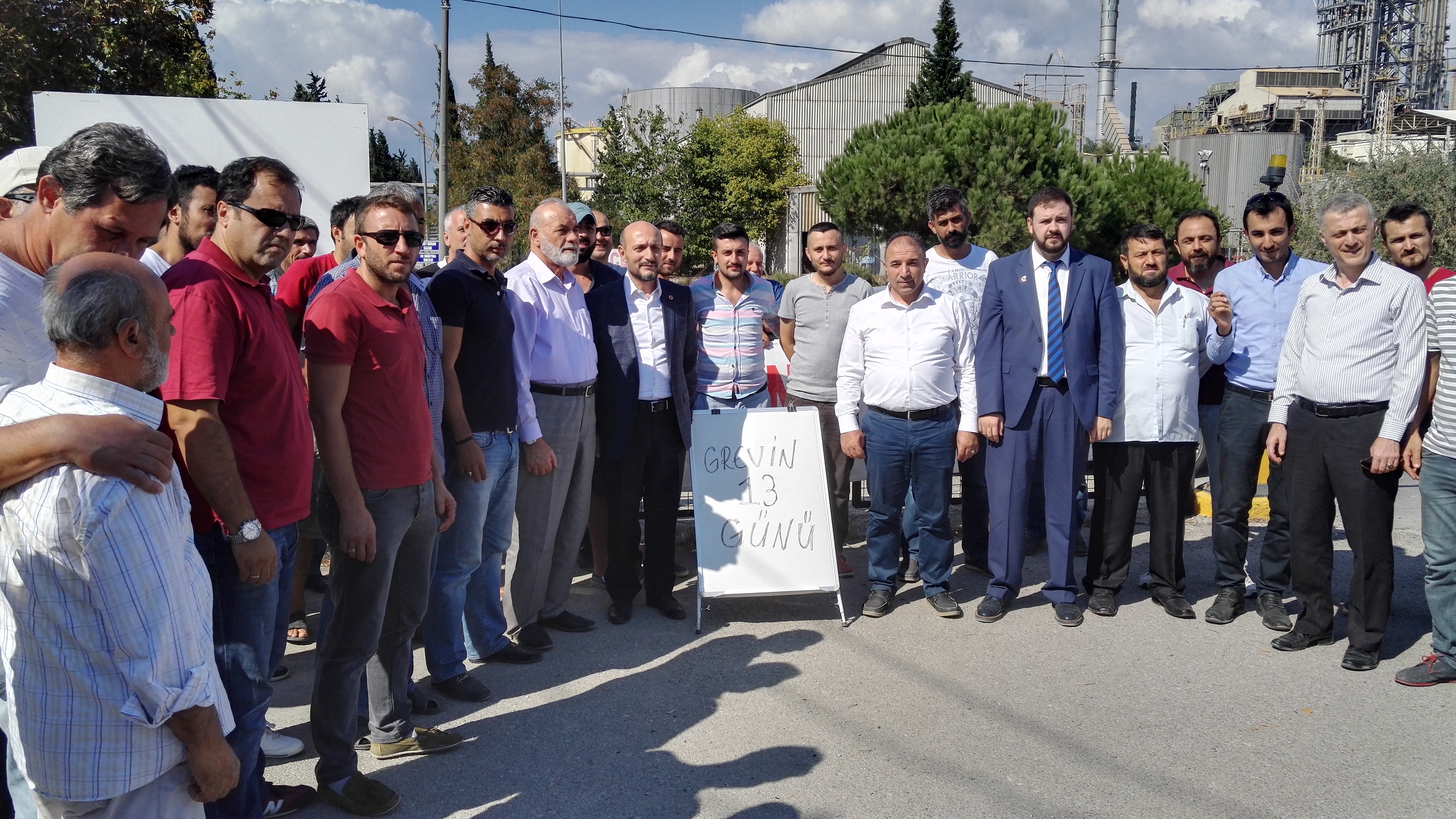Saadet Partisi Gemlik İlçe Teşkilatı, İl Başkanı Mehmet Atmaca ve Genel Merkez Denetim Kurulu Üyesi Hamza Aygün, Bursa Şubemizin örgütlü olduğu Gemlik Gübre A.Ş. işyerinde greve çıkan üyelerimizi ziyaret etti. Saadet Partililer, işçilerin alkışları ile karşılandı. Mehmet Atmaca grev çadırında işçilerin sorunlarını dinledi.