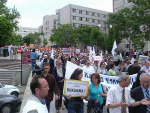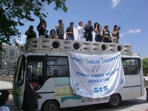 Sağlık Hak’tır Özelleştirilemez3 Haziran 2005 30 Mayıs’ta İzmir’den yola çıkan Sağlık ve Sosyal Hizmet Emekçileri 3 Haziran 2005’te Ankara’ya ulaştı. Hacettepe Üniversitesi kampüsünde buluşan sağlık emekçileri Abdi İpekçi parkına yürüdüler. Burada yapılan Basın açıklamasının ardından dağıldılar. Sağlık emekçilerini Ankara Şube yöneticilerimiz yalnız bırakmadı.