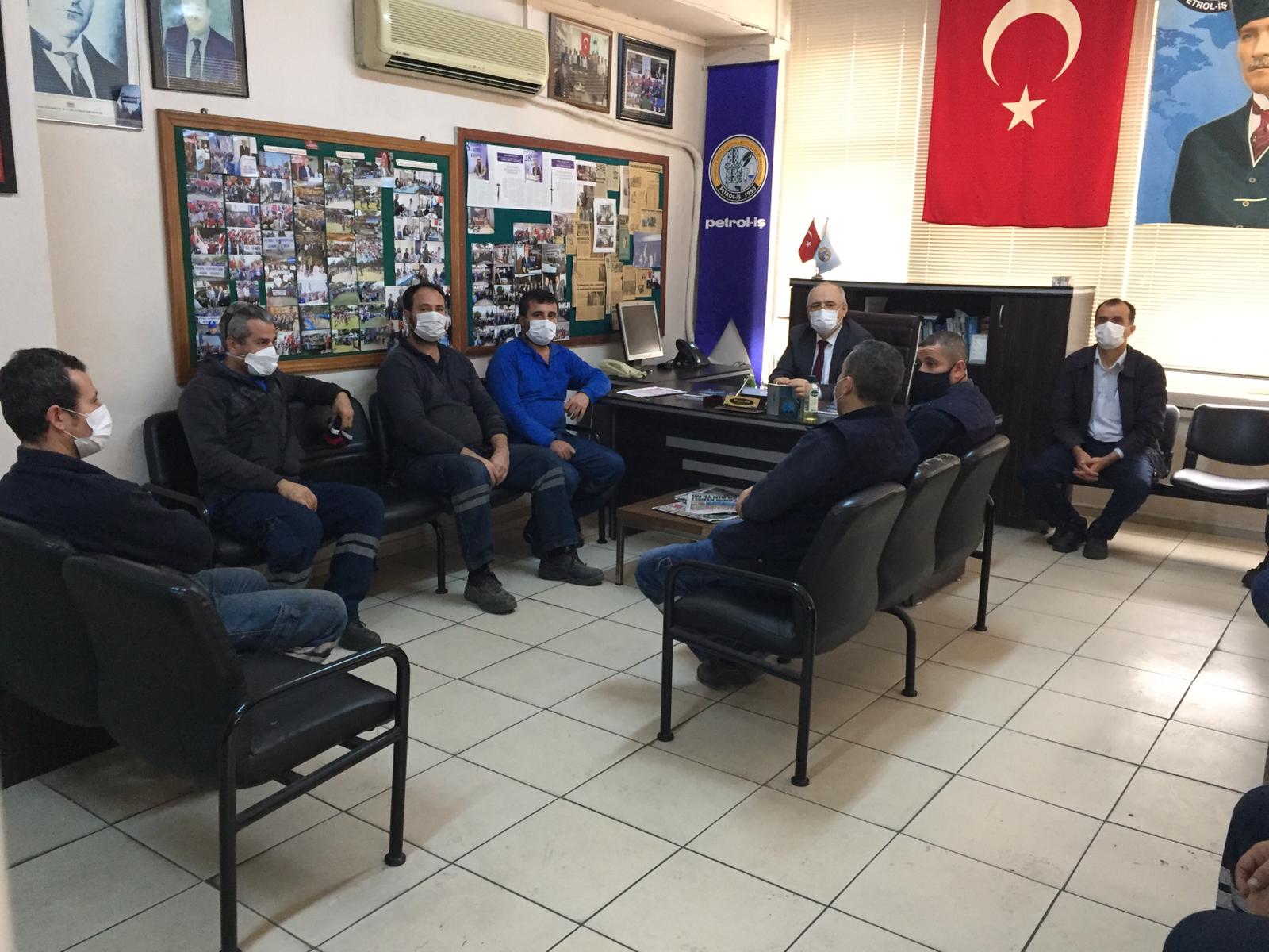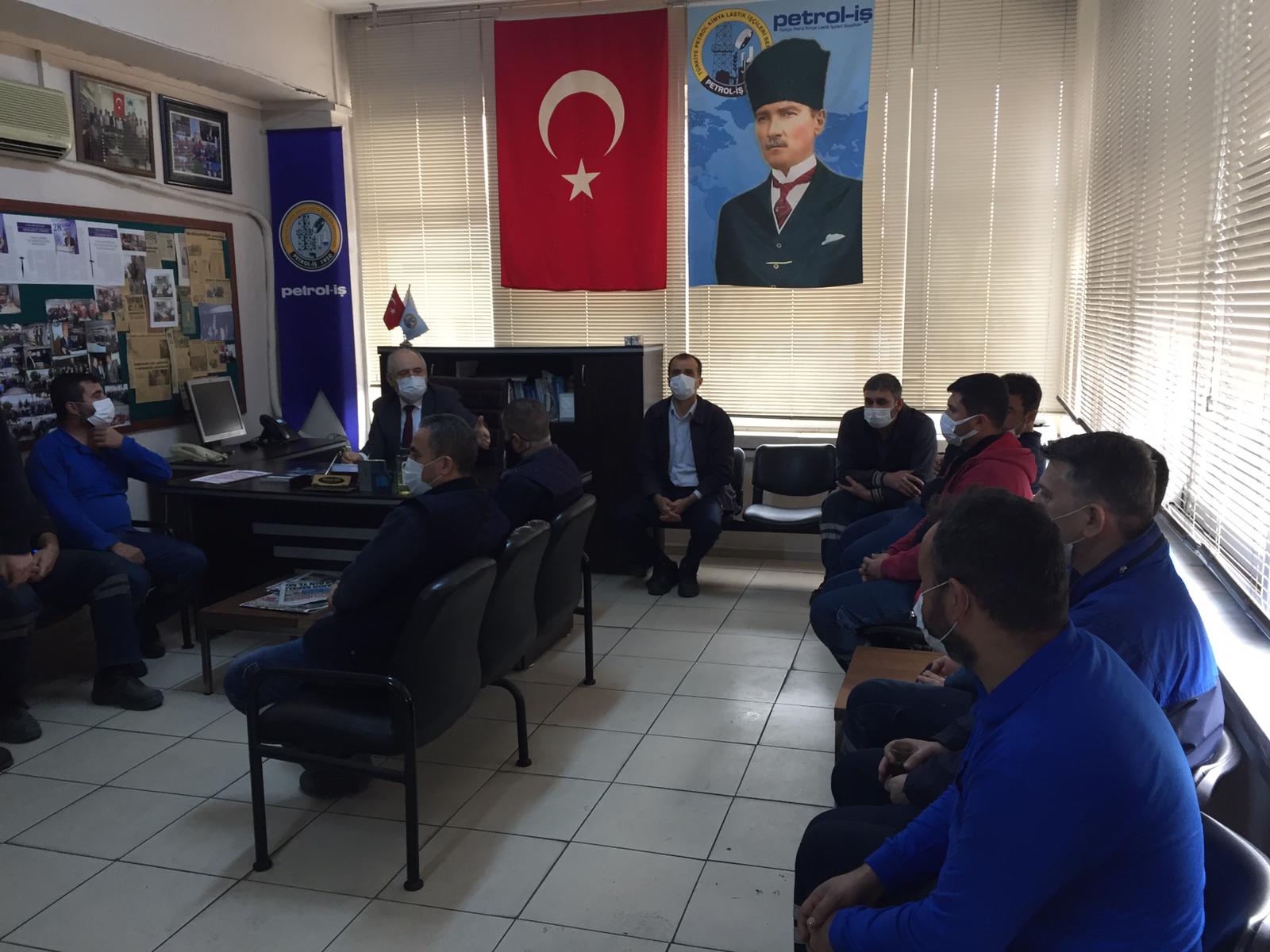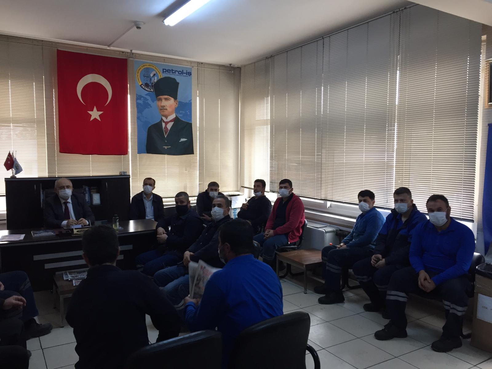 Adana Şubemizin örgütlü olduğu SASA işyerine, 14 Ocak Perşembe günü Adana Şube Başkanımız Abdül Mecit Dönmez ve şube yöneticilerimiz bir ziyaret gerçekleştirdi. Yapılan ziyarette pandeminin işçi sınıfına etkileri, emeğin gündeminde öne çıkan başlıklar ve üyelerimizin çalışma koşulları ile ilgili ayrıntılı değerlendirmelerde bulunuldu.