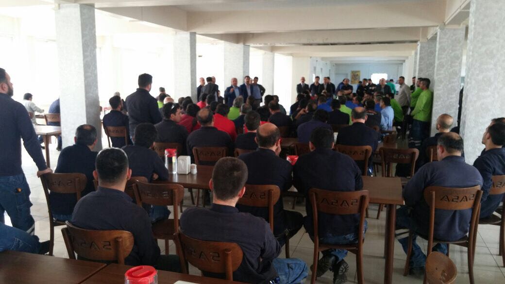 İmzalanan sözleşme sonrası Genel Sekreterimiz Ahmet Kabaca, Adana Şube Başkan Yardımcımız Cemalettin Çetinkıran, SASA işyeri Yönetici veTemsilcileri 30 Mart Perşembe günü SASA işyerine giderek, SASA çalışanı üyelerimizle bir araya geldiler. Üyelerimize imzalanan toplu iş sözleşmesi hakkında bilgi verildi.