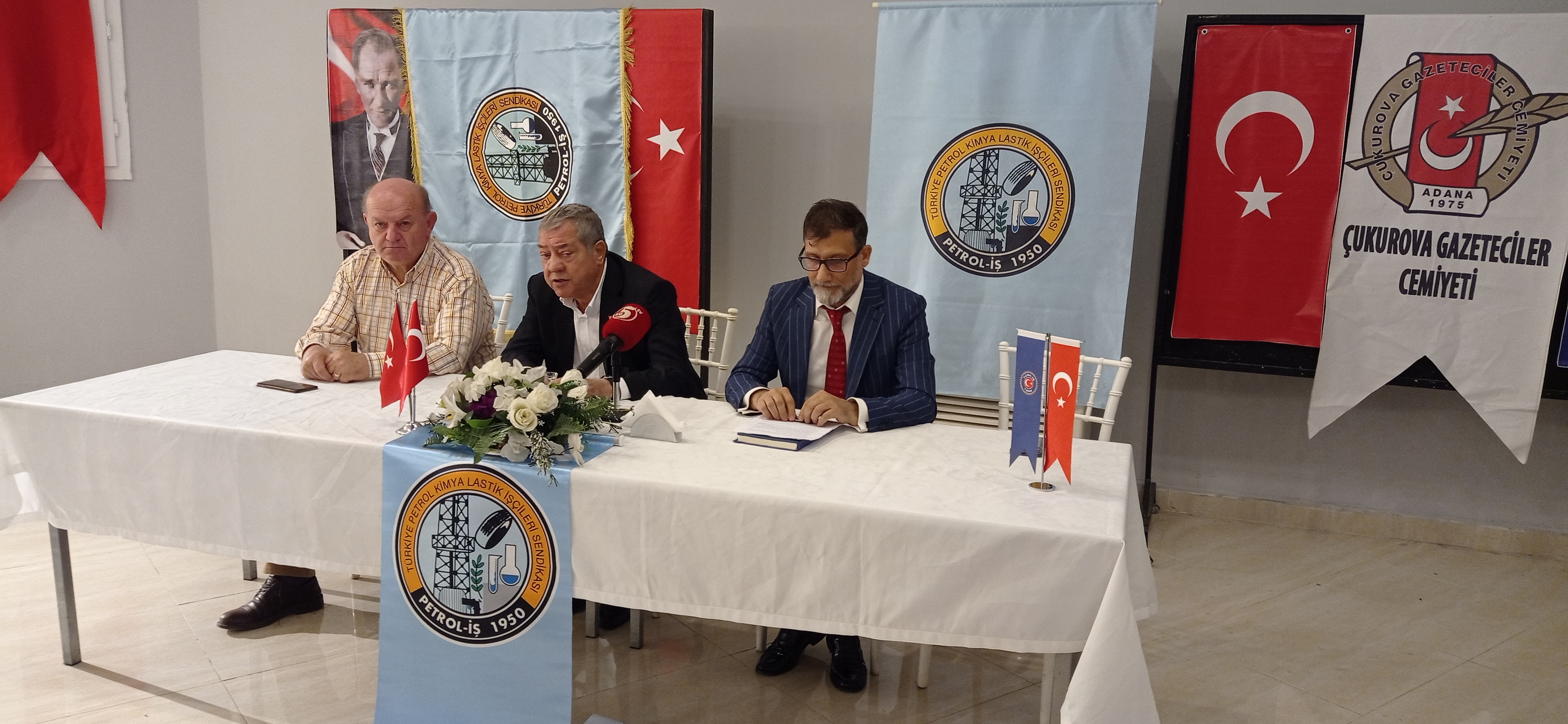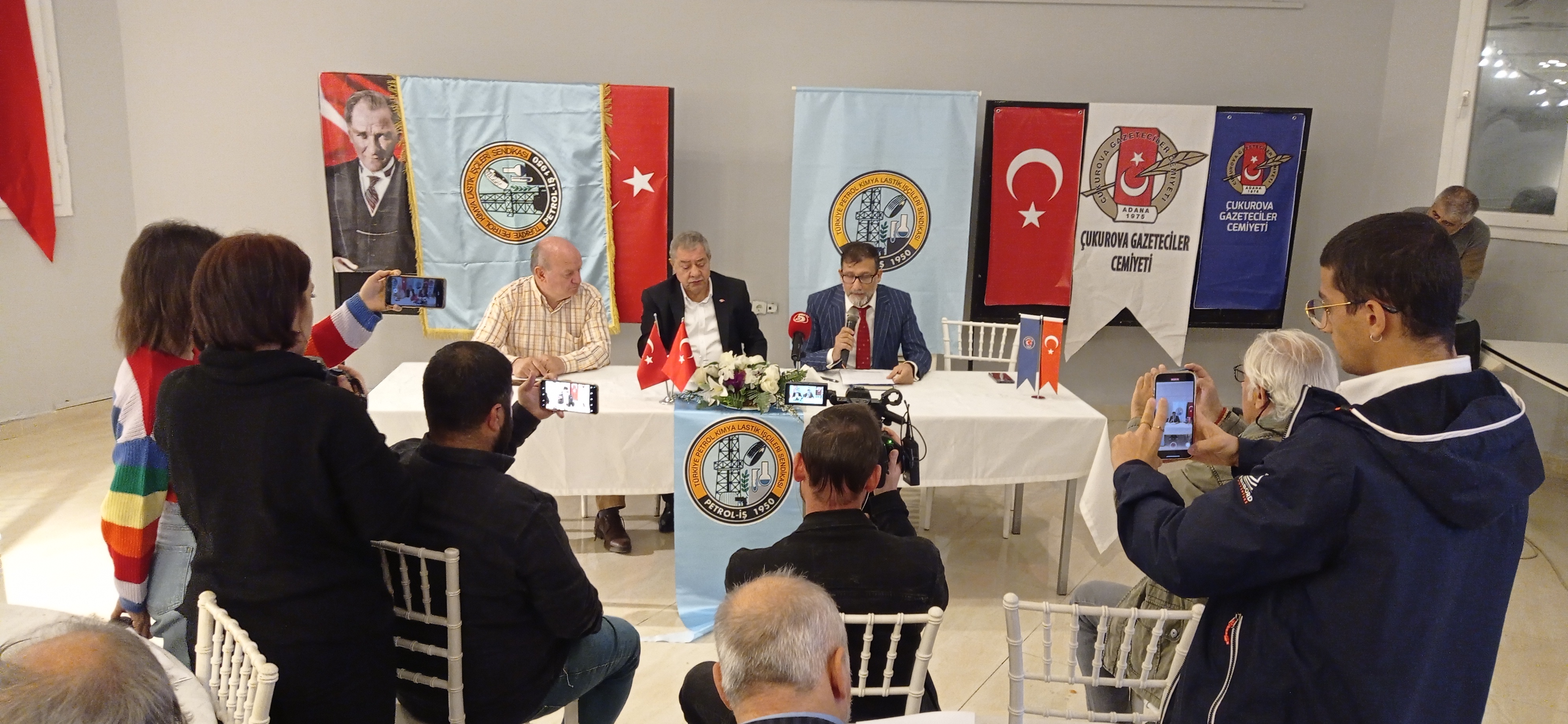 Basın toplantısında Türk-İş 4. Bölge Temsilcisi Edip Gülnar ve Çukurova Gazeteciler Cemiyeti Başkanı Cafer Esendemir de yer aldı. Adana Şube Başkanımız Bülent Kılıççıoğlu tarafından yapılan açıklamada SASA’da sendikasızlaştırma sürecinin nasıl başladığı, kimlerin bu sürece alet olduğu, Petrol-İş’in SASA’daki mevcu yapısı ile gelecekte neler yapılacağına ilişkin basına ve kamuoyuna bilgi verildi.