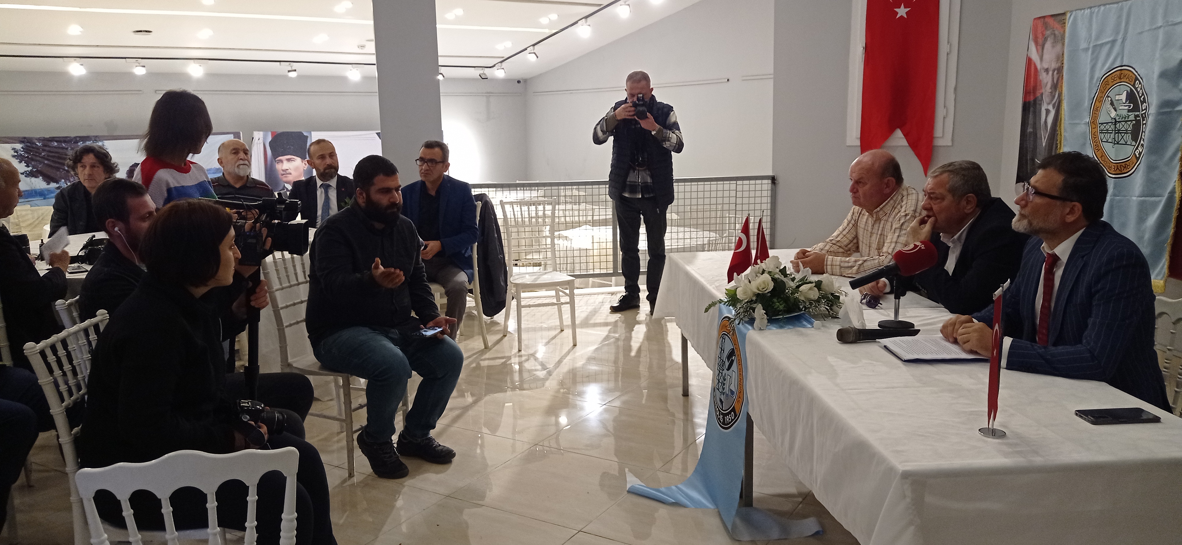 Bugün, sendikamız Adana Şubesi tarafından SASA işyerinde yaşanan sendikasızlaştırma süreci ve üyelerimize yapılan baskılara ilişkin basın açıklaması yapıldı. Çukurova Gazeteciler Cemiyeti Sosyal Tesislerinde yapılan açıklama, çok sayıda basın mensubu tarafından da takip edildi.
