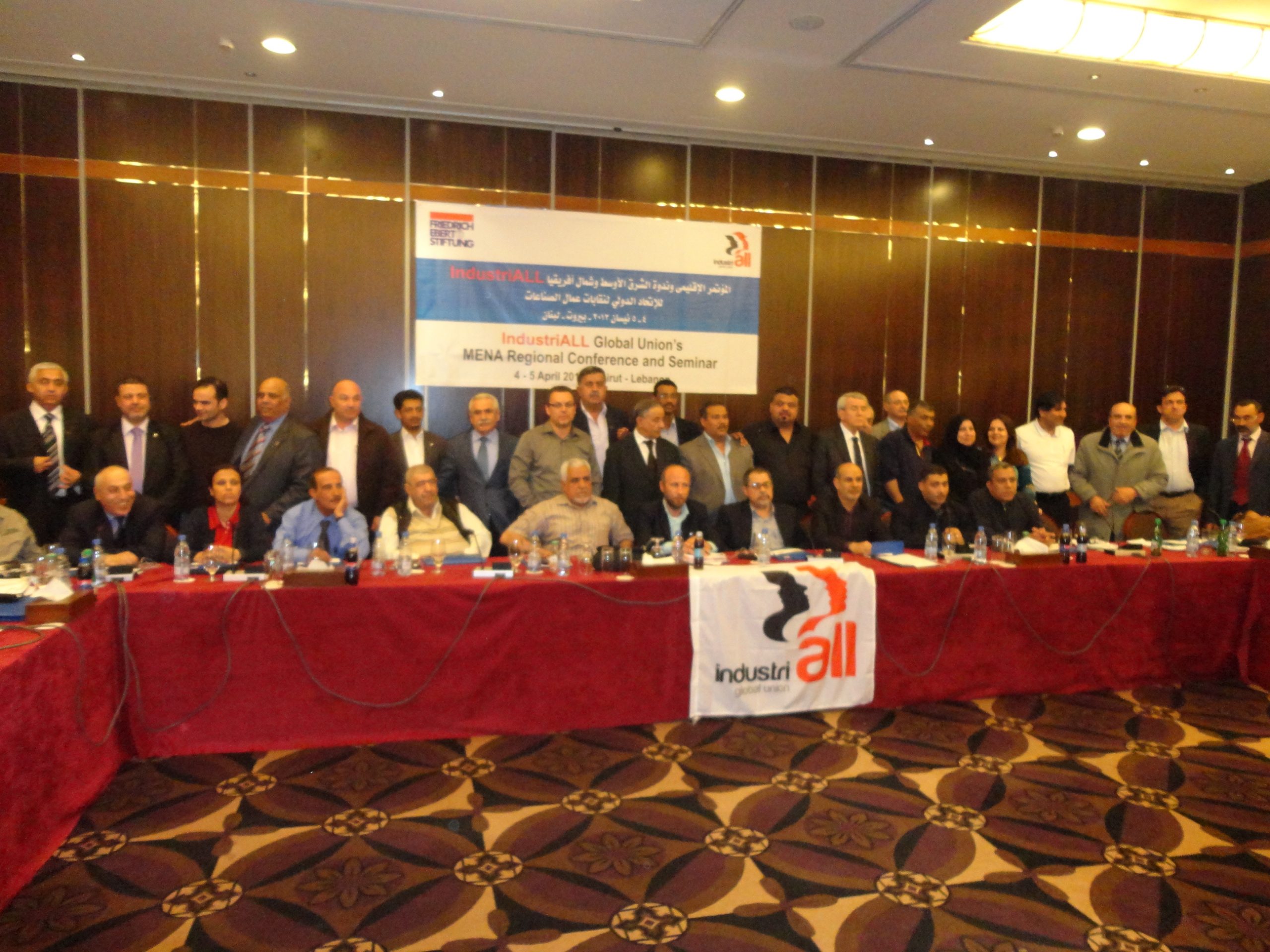 IndustriALL Ortadoğu ve Kuzey Afrika (MENA) Konferansı 4-5 Nisan 2013 tarihinde Lübnan’ın başkenti Beyrut’ta yapıldı. Toplantıya Petrol-İş Sendikası’ndan Genel Örgütlenme ve Eğitim Sekreteri Nimetullah Sözen, Mersin Şube Başkanımız Yunus Murat Marangoz ve Uluslararası İlişkiler Uzmanı Rıza Köse katıldı. Türkiye’den Teksif Sendikası temsilcileri de toplantının katılımcıları arasındaydı.