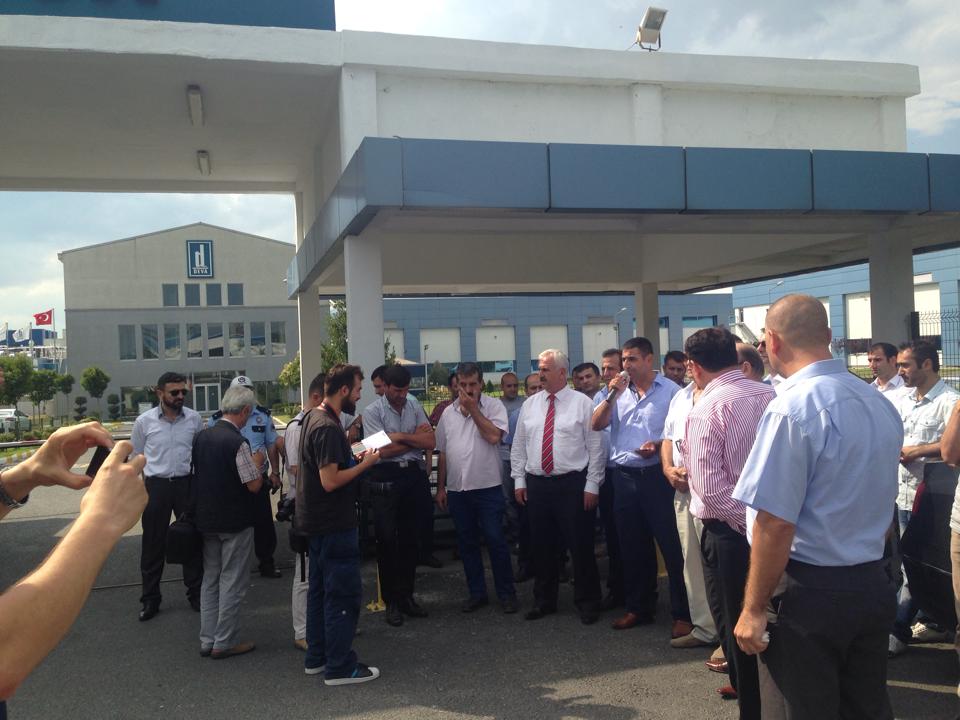 Fabrika önündeki basın açıklamasına İstanbul 1 No’lu şube başkanımız Ahmet Baranlı, Trakya şube başkan yardımcımız Hasan Oğuz Keser, örgütlü olduğumuz Polimer, Elba Bant ve Jotun Toz Boya’da çalışan üyelerimiz ve işyeri temsilcileri, Türk-İş İstanbul Birinci Bölge Temsilcisi Faruk Büyükkucak, Türk-İş Tekirdağ il temsilcisi ve Türk Metal Sendikası Çerkezköy şube başkanı Murat Koçak, Teksif Sendikası Çerkezköy şube başkanı Mürsel Türkkan, Belediye –İş Sendikası Trakya şube başkanı Aziz Akyat, Türk Harb-İş Sendikası Çorlu şube başkanı Mustafa Şener, Koop-İş Sendikası Tekirdağ şube başkanı Ziya Üzmez katıldı.