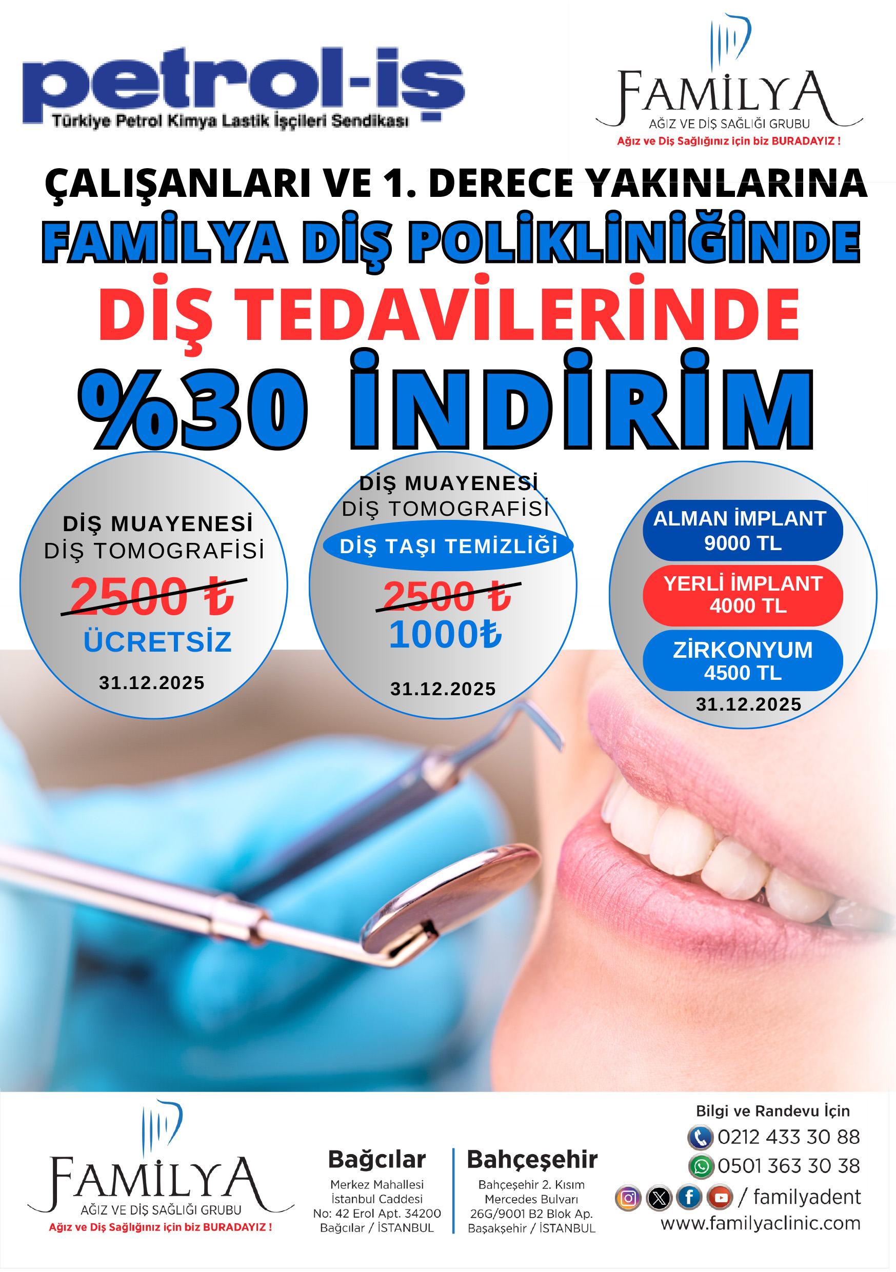 Sendikamız ile Familya Ağız ve Diş Sağlığı Grubu arasında kurumsal anlaşma yapılmıştır