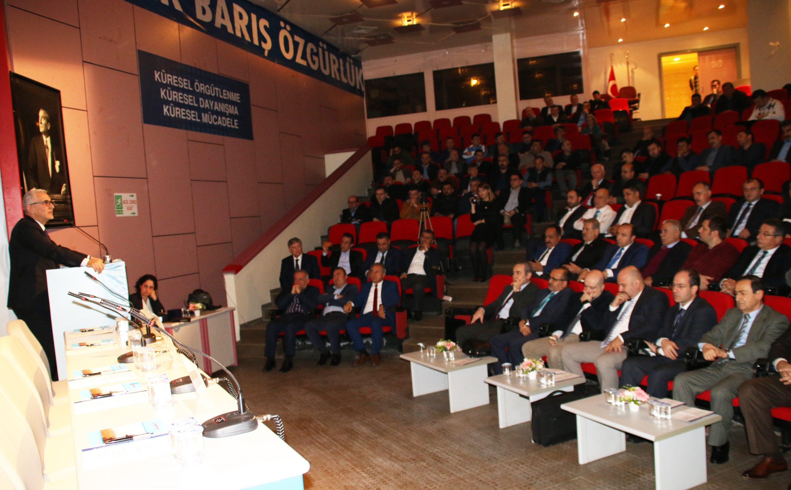 Genel Başkanımız Yaşar konuşmasına “Eylülde yaptığımız Genel Kurulumuz sonrasında konferans salonumuzu sadece genel kuruldan genel kurula değil çeşitli sosyal kültürel bilimsel ülkenin sorunlarına ışık tutan iş hayatın sorunlarını da konuşup kullanacağımız bir salon olacağını daha öncede belirtmiştik. İlk toplantımızı hukuk müşavirimiz Sayın Abdi Pesok’un katkılarıyla gerçekleştirmiş olduk. Değerli hocalarımızın ve akademisyenlerimizin katkılarıyla bu toplantıları daha aktif halde sürdüreceğiz. Bugünkü konferansımızın bir diğer amacı burada tartışılan bilimsel verilerin kitap haline getirilip size aktarılmasıdır ” diyerek başladı.