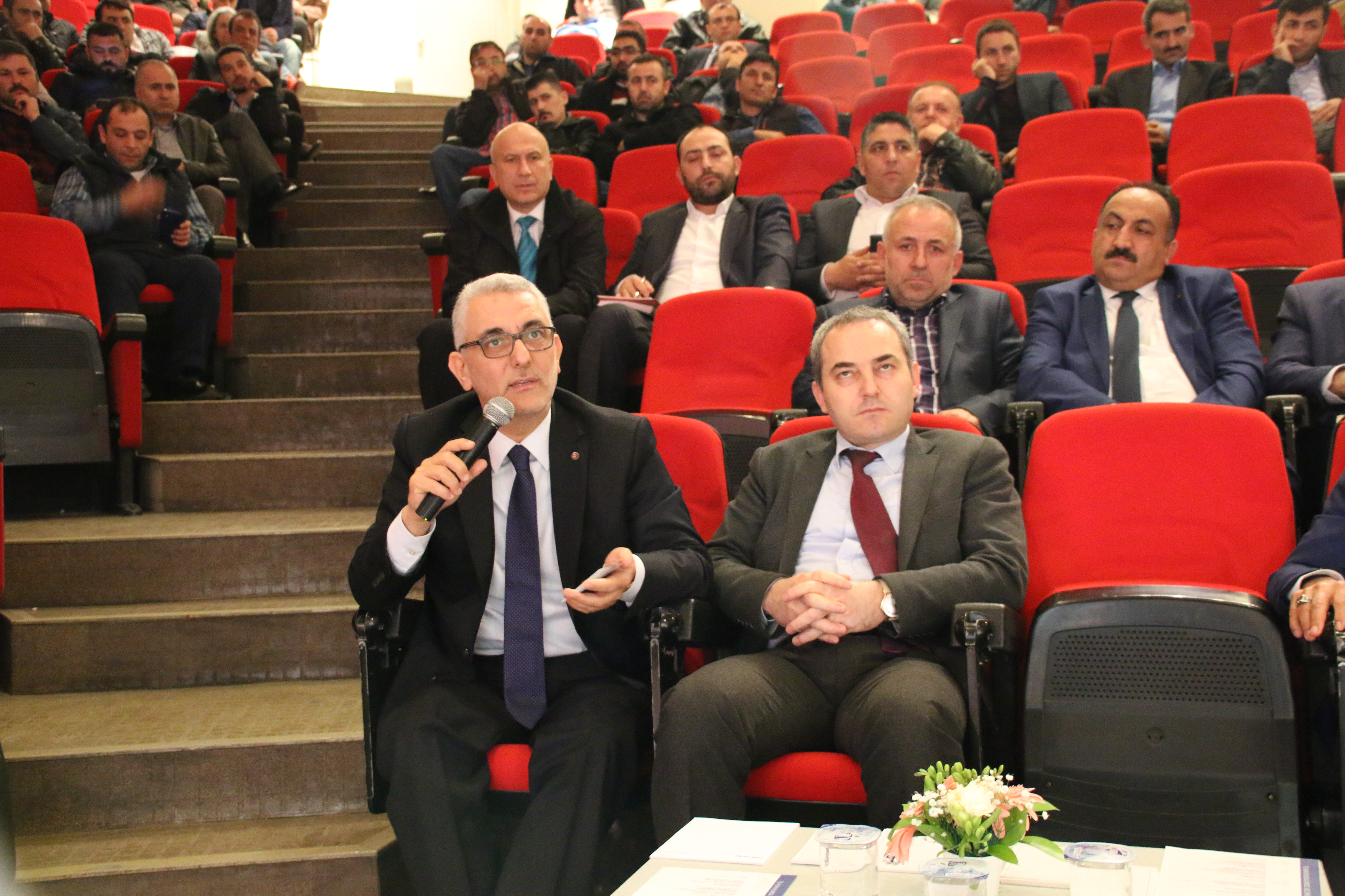 Konferansın öğleden sonraki 2.oturumunda Genel Sekreterimiz Ahmet Kabaca yönetirken özel ve istihdam büroları ve kıdem tazminatı konularını değerlendirmek üzere Doç. Dr. Mahmut Kabakçı ve Yard. Doç. Dr. Ulaş Baysal yerlerini aldı. Genel Sekreterimiz Ahmet Kabaca konuşmasına konukları ve sendikamız üyelerini selamlayarak başladı. Bu bölümde işçi camiasını yakından ilgilendiren özel istihdam büroları ülkemizde kıdem tazminatı ve yurt dışında bu uygulamanın örnekleri ve sendikalar açısından neler ifade ettiğini akademisyenler tarafından aktarılacağını söyleyerek oturumu açtı.