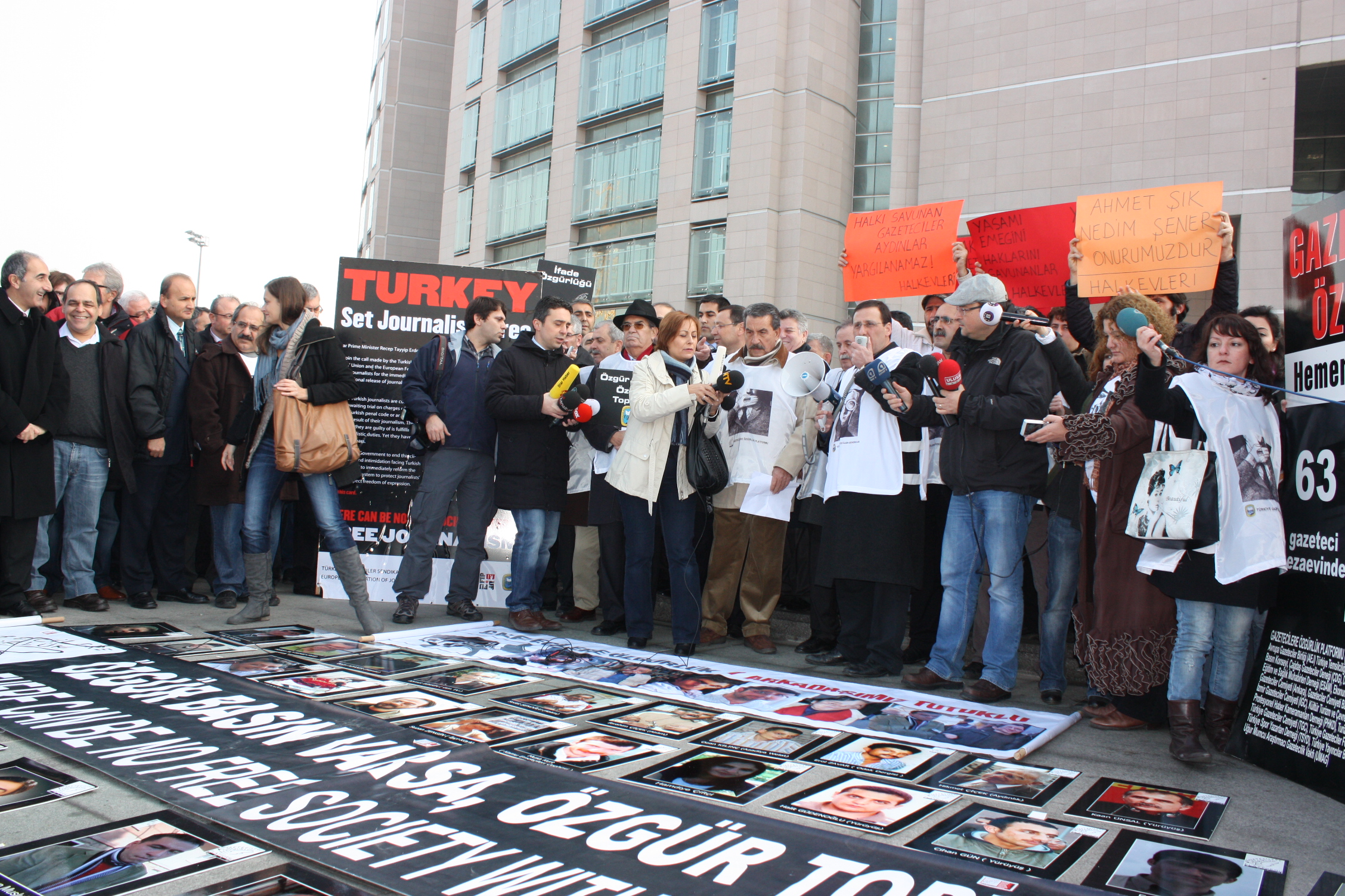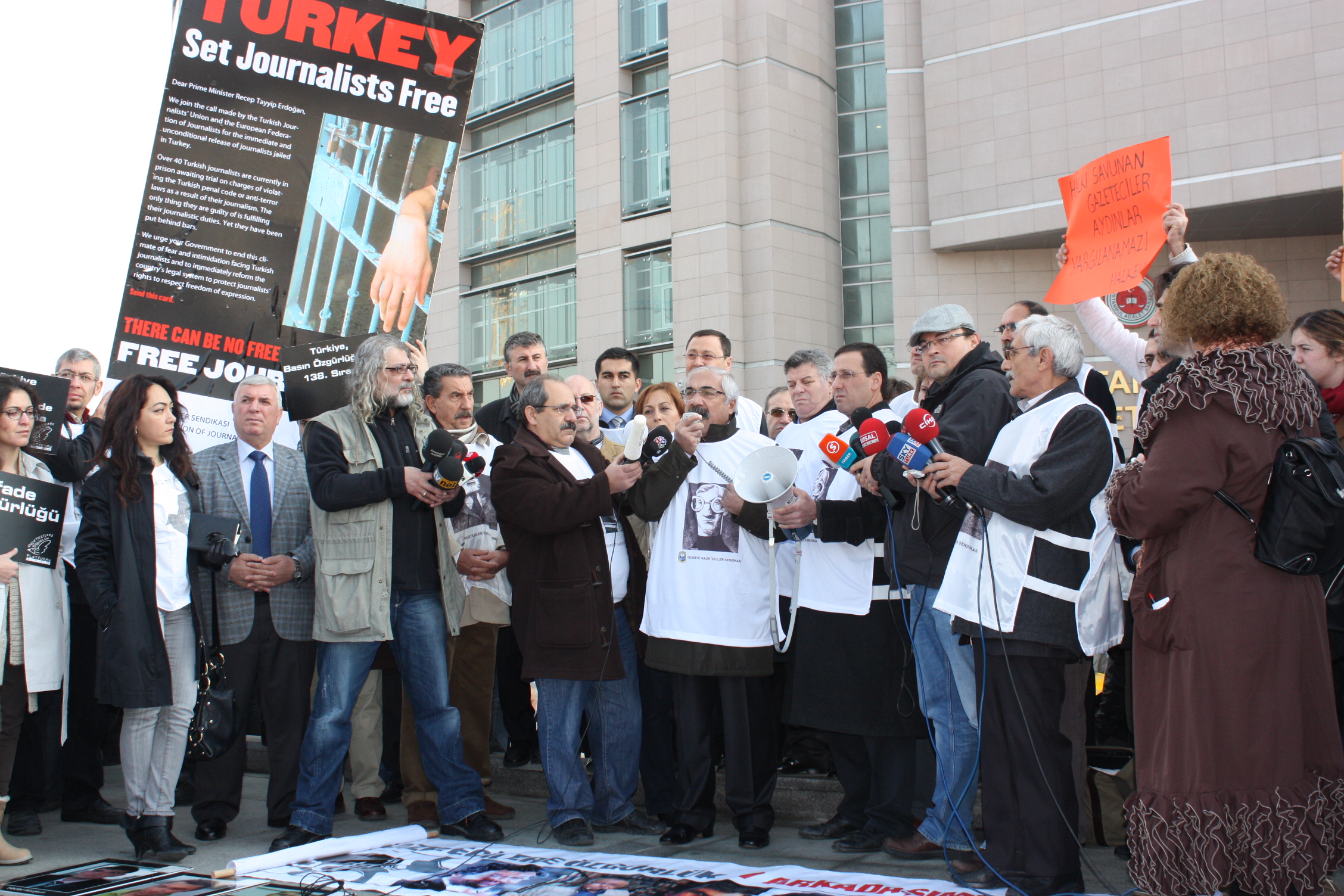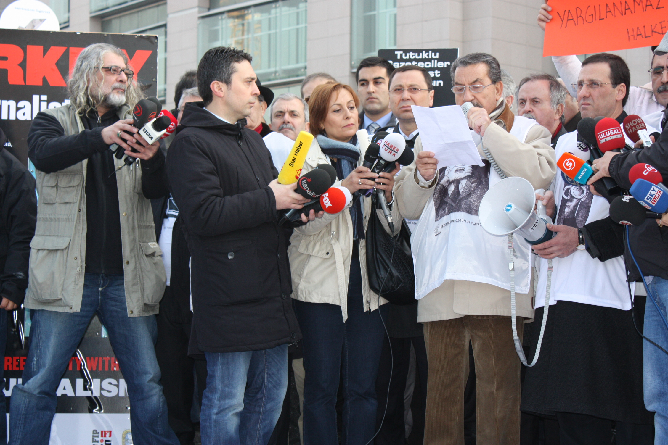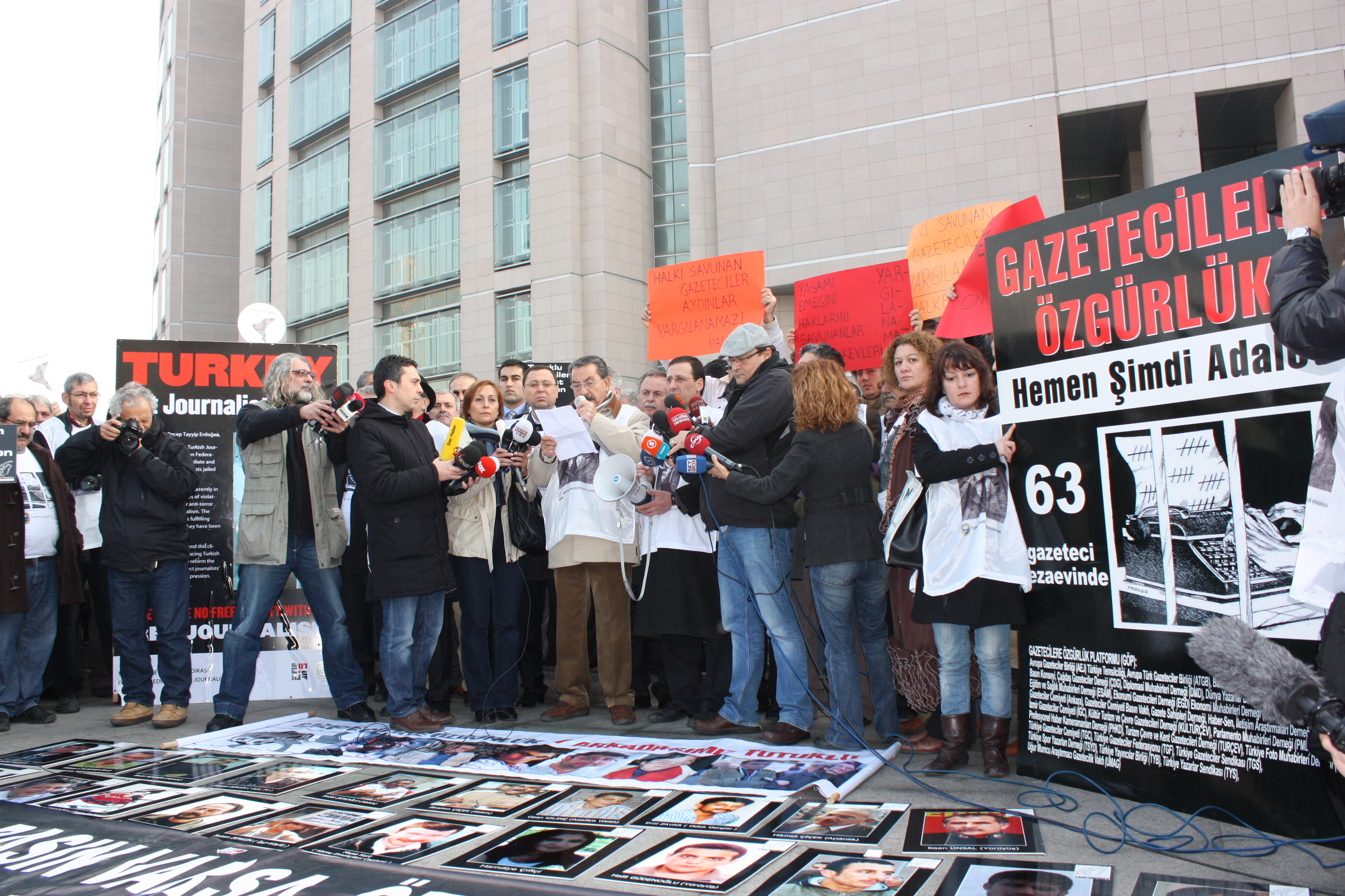 Gazetecilere Özgürlük Platformu, Avrupa Gazeteciler Birliği, Basın Enstitüsü, Basın Konseyi, Çağdaş Gazeteciler Derneği, Dünya Yazarlar Birliği, Gazeteciler Cemiyeti, Türkiye Gazeteciler Sendikası, Türkiye Spor Yazarları Derneği, Gazete Sahipleri Derneği üyesi yerli ve yabancı çok sayıda gazeteci davayı izlemek ve sanıklara destek olmak için adliye önünde toplandı. ”Gazetecilere özgürlük”, ”Özgür basın varsa, özgür toplum vardır” yazılı pankartlar açılan eylemde tutuklu bulunan gazetecilerin fotoğrafları da taşındı.