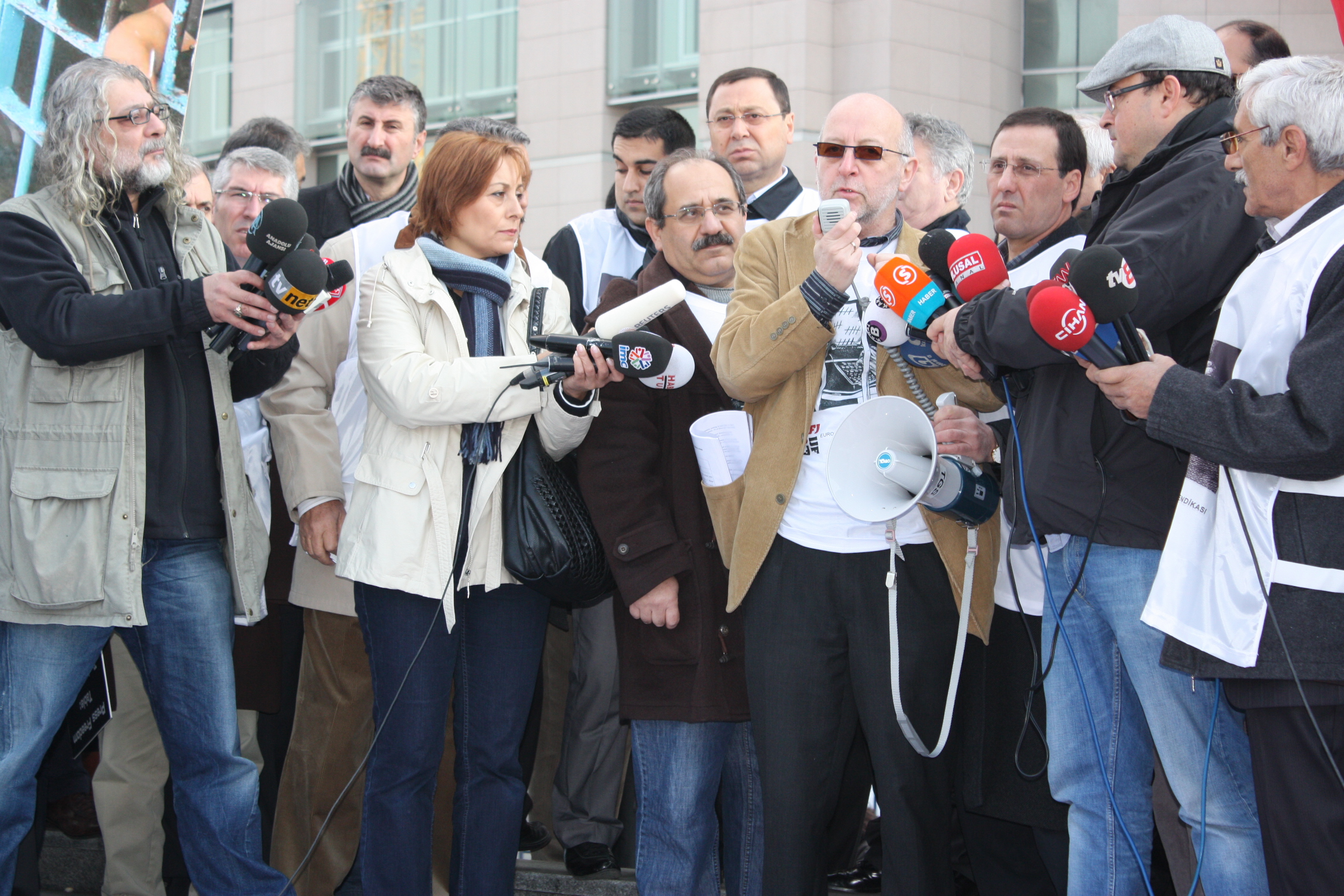 Ergenekon soruşturması kapsamında aralarında gazeteciler Nedim Şener ile Ahmet Şık’ın da bulunduğu 12’si tutuklu, 14 sanık hakkında açılan Odatv davasının ilk duruşma günü olan 22 Kasım ‘da davanın görüldüğü Çağlayan’daki İstanbul Adalet Sarayı önünde tutuklu gazetecilere özgürlük talebiyle yapılan protesto eylemine Sendikal Güç Birliği Platformu da katılarak destek verdi. Yapılan protesto eylemine Genel Başkanımız Mustafa Öztaşkın ve Genel Mali Sekreterimiz İbrahim Doğangül de katıldı.