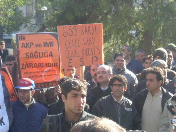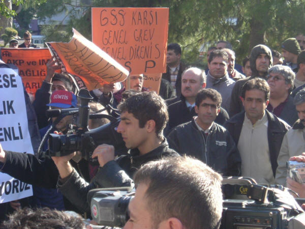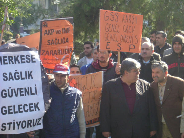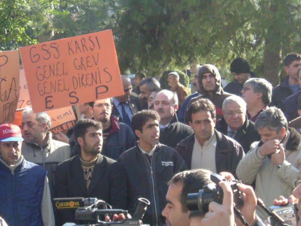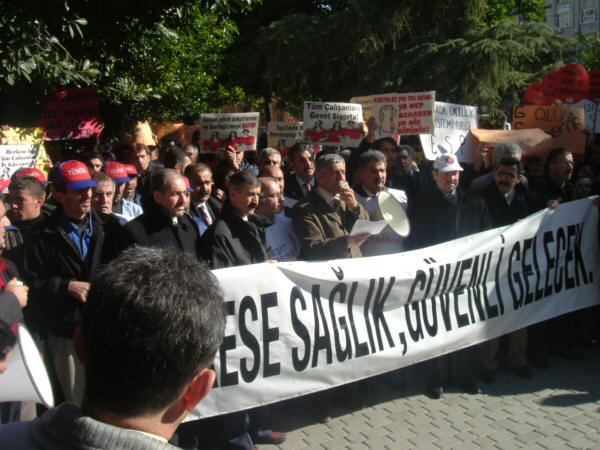 10.01.2008Sosyal Güvenlik Yasa Tasarısını Protesto mitingiEmek Platformu’nun düzenlediği, Sosyal Güvenlik Yasa Tasarısı Protesto mitingi, Türk-İş Bölge Temsilciliği önünde başlayarak İnönü Parkında, basın açıklaması yapıldıktan sonra AKP İl binasına siyah çelenk konulmasıyla sona ermiştir.Üyelerimizle birlikte bu eyleme katılarak destek verdik.