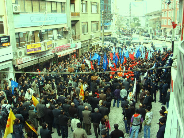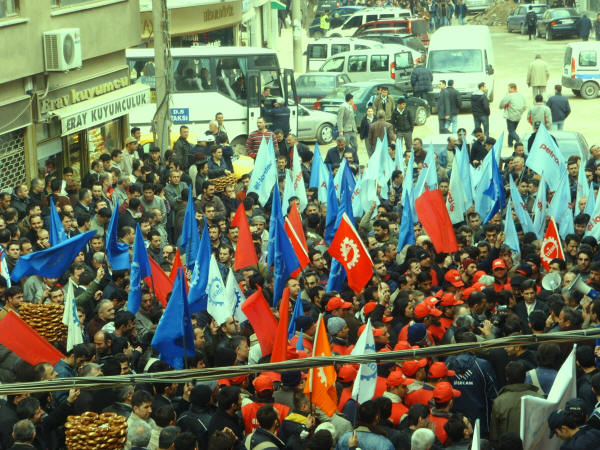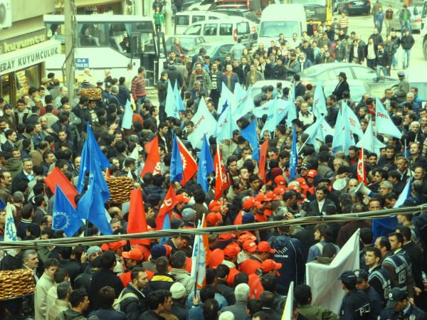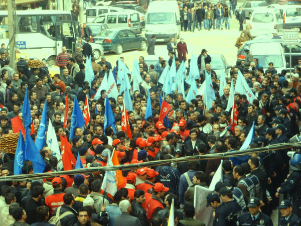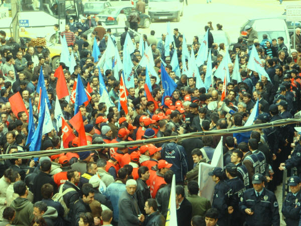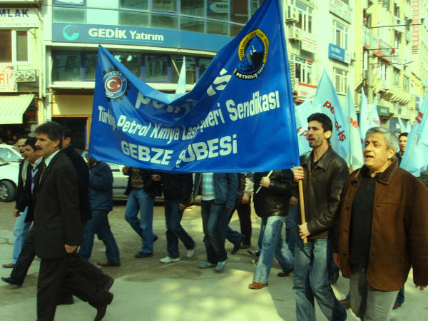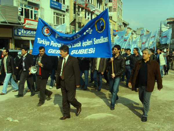 İşçinin sendikaya üye olma hakkına karşı çıkıp onları istifaya zorlayan Farplas işverenini kınıyoruz.2 Nisan 2008SSGSS Yasa tasarısının TBMM’nde görüşmeye başladığı günlerde Emek Platformu bileşenlerinden (Kesk, Disk, TTB, TMMOMB ve Diş Hekimleri Birliği) 1 Nisan 2008 ‘de saat 14.00′ den sonra işi bırakma ve tüm illerdeki belirli noktalarda basın açıklaması yapma kararı doğrultusunda ve sendikamız Petrol-İş’ in de bu kararları destekleme doğrultusundaki kararı ile, şubemize bağlı işyerlerimizin (yaklaşık 250 civarında ) çalışanın katılımıyla Gebze AKP önünde yapılan basın açıklamasına iştirak edildi. Çalışanlarımız Türk-İş’e ve eylemlilik kararı olmayan bekleyelim görelim sürecini tercih eden sendika ve sivil toplum örgütlerine olan kızgınlıklarını ifade ettiler. Sendikamız Petrol-İş in kararı olumlu karşılandı. Durma zamanının olmadığı harekete geçme, karşı durma ve eylem zamanıdır. Bu nedenle Gebze Şubesi olarak 1 Nisan’da yapılan basın açıklamasına etkin katılım sağladık.Bu arada örgütlenme düşüncesi içine giren Farplas işçilerine, işverenin duyar duymaz takındığı tavır, şüphelendiği tüm arkadaşları işten çıkarmak oldu. Bırakın sendikaya üye olmayı, işçilerin sendikaya üye olmak için düşünmesini ve bir değerlendirme yapmasını bile hazmedemeyen işvereni kınıyoruz. Farplas’ta işveren, işçi arkadaşlara çeşitli baskılar yaparak, istifa ettirme yolunu seçmiştir. Çalışanların yasal, anayasal ve insanı hakkı olan sendikaya üye olma hakkını elinden alan ve baskı yapan işverenin bu tutumunu tüm kamuoyunun dikkatine sunuyoruz. Bu tutumuyla işveren, içerde çalışanlara da bundan sonra nasıl bir muameleyle karşılaşacaklarını göstermiştir. Çalışanların gaflet uykusundan uyanıp haklarını arama zamanı gelmiş de geçiyor. Yöneticileri sağduyuya çalışanları da haklarını aramaya davet ediyorum.Biz Petrol-İş Sendikası Gebze Şubesi olarak, daima emekten yana hareket edenlerin yanındayız. Bu türden bir hareket içinde olanlara gereken destek verilecektir. Emekten yana olmayanlar bizden ne bekleyebilirler? İçerde şu anda çalışan elemanlara sesleniyoruz, yarın sıra size de gelecektir. Yaşasın işçilerin birliği,Yaşasın Sendikal Mücadelemiz,Değerli basınımıza saygıyla duyurulur.Şube Yönetim Kurulu Adına BaşkanıSüleyman Akyüz