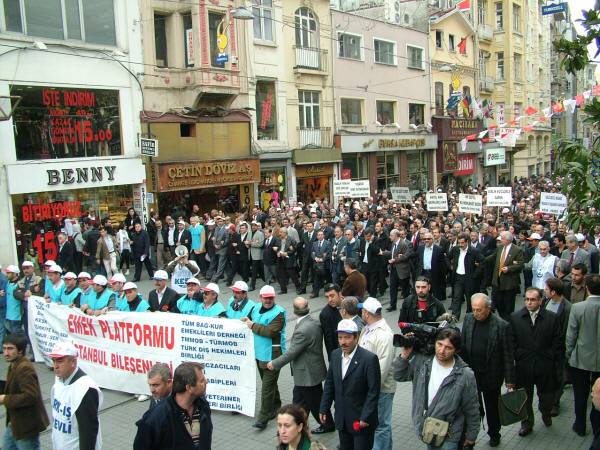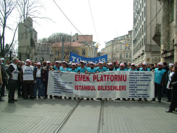Emek Platformu bileşeni sendika, meslek odası ve demokratik kitle örgütlerine üye, temsilci ve yöneticiler İstanbul – Tünel’de buluştular. Saat 12.00’den itibaren Taksim- İstiklal Caddesi’ne doğru yürüyüşe geçen Emek Platformu bileşenleri sık sık, “Hükümet istifa” “ Gün gelecek, devran dönecek, AKP halka hesap verecek”, “Herkese sağlık, güvenli gelecek istiyoruz,” “Sağlık haktır, satılamaz”, “Sağlıkta ticaret ölüm demektir”, “İşçiler burada, yalancılar nerede”, “Yalancı Başbakan istemiyoruz”, “Mezarda emekliliğe hayır”, “Geliyor, geliyor. genel grev geliyor” şeklinde sloganlar attılar.