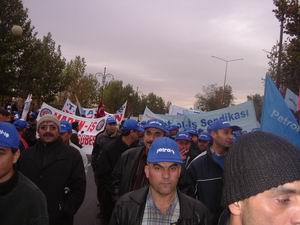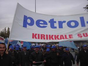 Hükümetce adına reform denilen ve SSK hastanelerinin Sağlık Bakanlığı’na bağlanmasını öngören yasa tasarısının geri çekilmesini sağlamak amacıyla Emek Platformu bileşenlerinin katılımıyla bir dizi eylem kararı alınmıştı. Bu eylem kararları doğrultusunda bugün 11.11.2004 tarihinde tüm yurtta SSK hastanelerinin ziyaret edilmesi kararlaştırılmıştı.Bu karar doğrultusunda biz Emek Platformu yöneticileri olarak bugün SSK Kırıkkale hastanesine bir ziyarette bulunduk. Ziyaretimizin amacı hastane yöneticisi ve personeline bu devrin, Kurumun mal varlığına özellikle hastanelere el koymayı amaçladığını anlatmaktı.Ancak anlatacağımız makam olan başta hastane baş hekimi, önceden haber vermemize rağmen yerinde bulunamadığı için ziyaretimiz kısmen tamamlanmıştır.SSK kurumunda kalitesiz, yeniliksiz hizmet var diyerek yapılacak bu devir, aslında sağlığı paralı hale getirme planının bir parçasıdır. Bu hastaneleri bu hale getirenler gelmiş geçmiş siyasi iktidarlardır. Siyasi iktidarların son yıllardaki politikası bu olmuştur.Önce niteliksiz, kalitesiz, kabiliyetsiz hale getir, sonra sat kurtul, kapat kurtul, ver kurtul politikasıdır.Maalesef bu politikalara SSK yöneticileri de çanak tutmuşlar, bu suça ortak olmuşlar, vatandaşa kaliteli hizmet sunmak onlar için ikinci plan da kalmıştır.Tüm bu olumsuzlukların sorumlusu devlettir. Devlet ise sorunu çözerek halletmelidir. Petrol-İş SendikasıKırıkkale Şube Başkanı Recep SEFER
