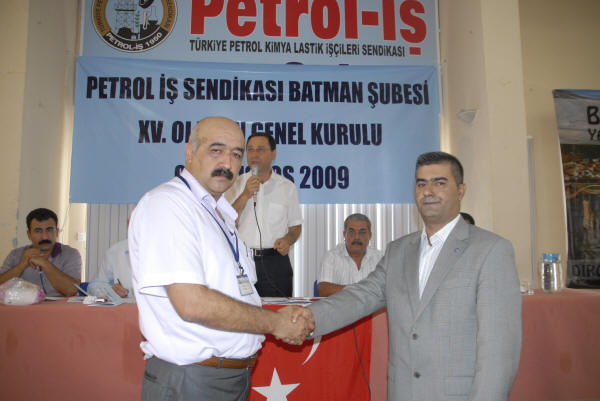 Sendikamızın Batman Şubesi 15. Olağan Kongresi 9 Ağustos 2009 tarihinde Petrol-İş Batman Şubesi Konferans salonu’nda gerçekleştirildi. Genel Kurul’a sendikamız Merkez Yönetim Kurulu üyeleri ve şube başkanlarının yanısıra, Batman Belediye Başkanı Nejdet Atalay, DTP İl Başkanı Ahmet Sormaz ile Batman’daki meslek odaları, sendika, sivil toplum kuruluşları temsilcileri ile delegeler katıldı. Batman Şube Başkanımız Mehmet Doğu ile Şube İdari Sekreterimiz Mustafa Mesut Tekik’in listelerinin yarıştığı genel kurulda seçimleri Mustafa Mesut Tekik’in listesi kazandı. Mustafa Mesut Tekik Batman Şubemizin Yeni Başkanı olurken, Şube İdari Sekreterliğine Sertip Özdemir, Şube Mali Sekreterliğine Kemal Bilir seçildi. Yönetim kurulu asil üyelikleri ise Resul Asutay, Mazhar Kaya, Mahmut Kürekçi ve Şeyhmus Kaygusuz’dan oluştu.