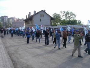Hükümetin, özelleştirme programında yer alan şeker fabrikalarının da birer ikişer kapatılması gündeme gelince, Susurluk’taki şeker fabrikasının kapanmaması için büyük çaplı bir miting düzenlendi.Mitinge Bandırma’daki sendikalar da başta Petrol-İş Sendikamız olmak üzere büyük bir destek verdiler. Cumartesi günü saat 13.00’de Adnan Menderes meydanından 150 üyelerimizi, şubemiz tarafından tutulan iki otobüs ve kimi üyelerimiz de kendi araçlarıyla Susurluk’ta yapılan mitinge katıldı. CHP Balıkesir Milletvekilleri Sedat Pekel ve Orhan Sür , CHP Balıkesir İl ve İlçe örgütlerinin de katıldığı mitingde, Ankara’ya mesaj yağdı. Mitinge katılanları, Susurluk ilçesi girişinde şeker fabrikası işçileri davullarla, zurnalarla büyük bir coşkuyla karşıladılar. Üyelerimiz otobüslerden inerek kortej oluşturdu ve miting alanına doğru sloganlar eşliğinde Susurluk ilçesini adeta inletti. Şube Başkanımız Hüseyin Koçyiğit, ülkede özelleştirme adı altında talanların bütün hızıyla devam ettiğini ve sıranın şeker fabrikalarına geldiğini belirterek, bu talana dur demek için her türlü mücadeleyi göstereceklerini söyledi.
