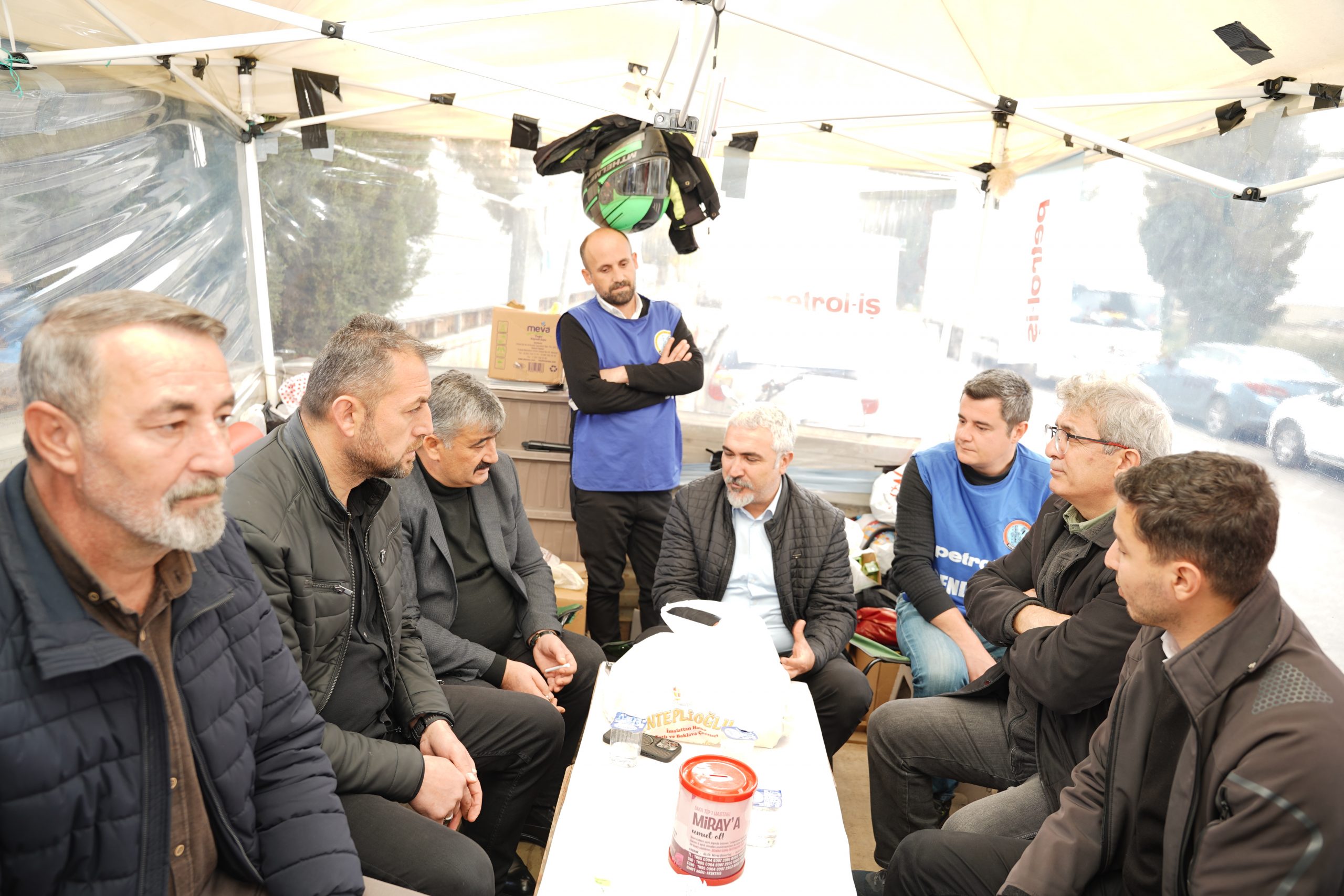 Grev alanında yaklaşık 3 saat süren sohbet ve görüşme sonrasında, başarı dilekleri ve mücadeleyi büyütme vurgusuyla ziyaret sona erdi.