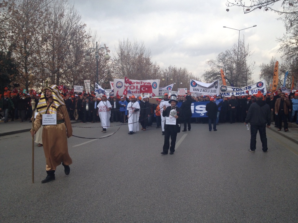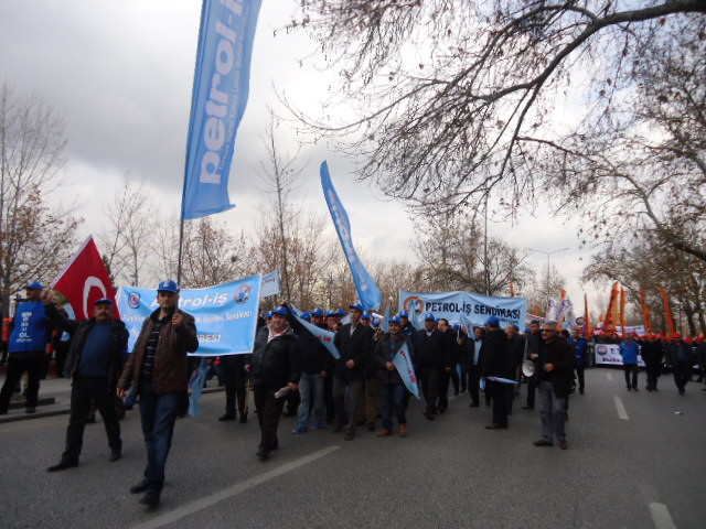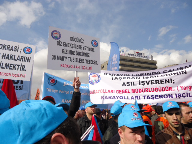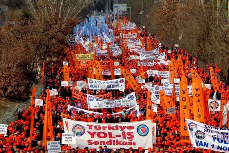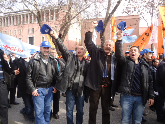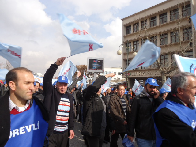 Konfederasyonumuz TÜRK-İŞ tarafından düzenlenen mitinge, Türkiye’nin çeşitli illerinden 50.000 kişi katıldı. 15 Şubat 2014 Cumartesi günü sabah 8.00 dan itibaren Ankara Garı önünde toplanmaya başlayan işçiler, Kayıt Dışılığa, alt işveren (taşeron) uygulamalarına, 4/B, 4/C gibi istisnai istihdam türlerinin yaygınlaşmasına, asgari ücretin sefalet ücreti olmasına, özelleştirmelere, esnek, kuralsız ve güvencesiz çalışmanın her türlüsüne HAYIR demek için,Sıhhiye Meydanına kadar yürüdüler.