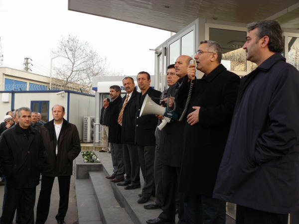 Tüpraş İzmit Rafineri Müdürlüğü önünde toplanan işçilere konuşma yapan Şube Başkanı Ali Ufuk YAŞAR, genel sorunlar, fabrikanın sorunları ile alakalı görüşlerini ve yapılması gerekenleri dile getirdi. Başkan Yaşar’ın konuşmasının ardından Tüpraş İzmit Rafineri Müdürlüğü İşyeri Baştemsilcisi Fikret ALADAĞ Türk-iş bildirisini okudu. Petrol-iş Sendikası Kocaeli Şubesi’nin örgütlü olduğu tüm işyerlerinde aynı eylem gerçekleşti.