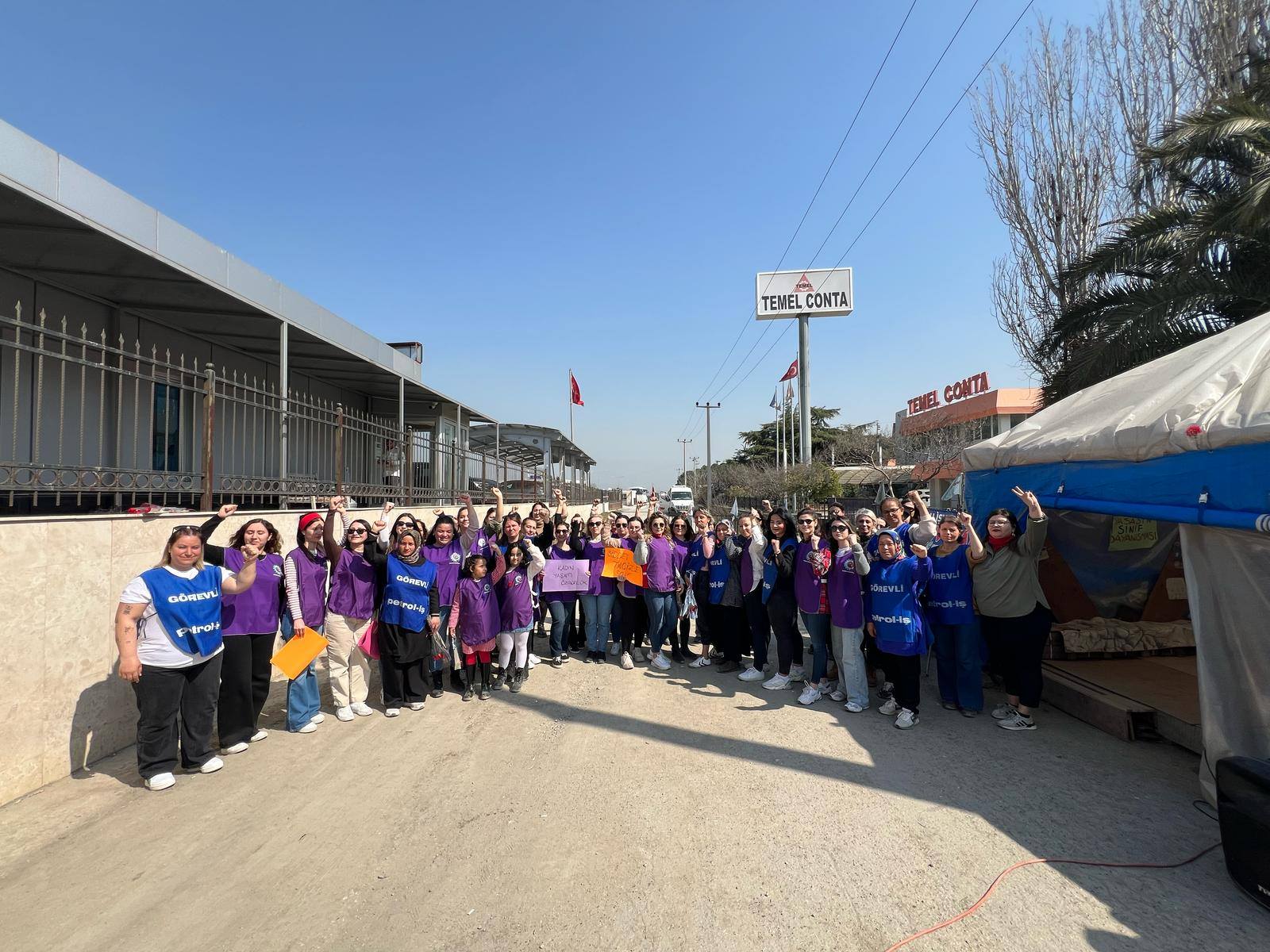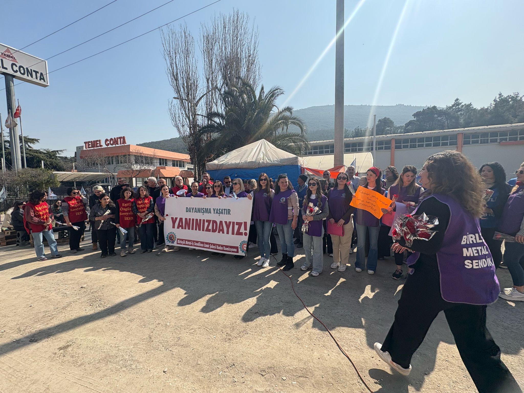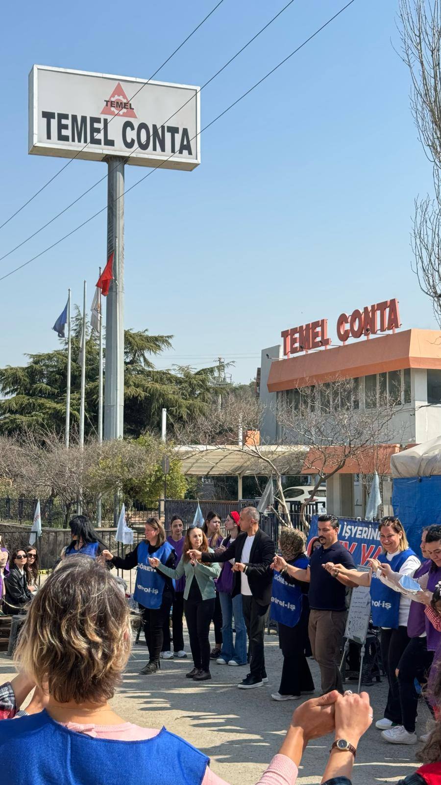 Sendikamız Aliağa Şubesinde örgütlü Temel Conta işyerinde devam eden grevimiz 8 Mart’ta yapılan etkinlikle daha da güçlendi. Kadınların Uluslararası Mücadele ve Dayanışma gününde grev alanında bir araya emekçiler Temel Conta Grevimizle dayanışmalarını gösterdiler. Sendikamız Aliağa Şube Yönetimi, şubemizde örgütlü temsilci, üye ve üyelerimizin aileleri, kardeş sendika temsilcileri, siyasi partiler ve demokratik kitle örgütleri, çoğunluğunu kadınların oluşturduğu Temel Conta Grevcilerini ziyaret ettiler.
