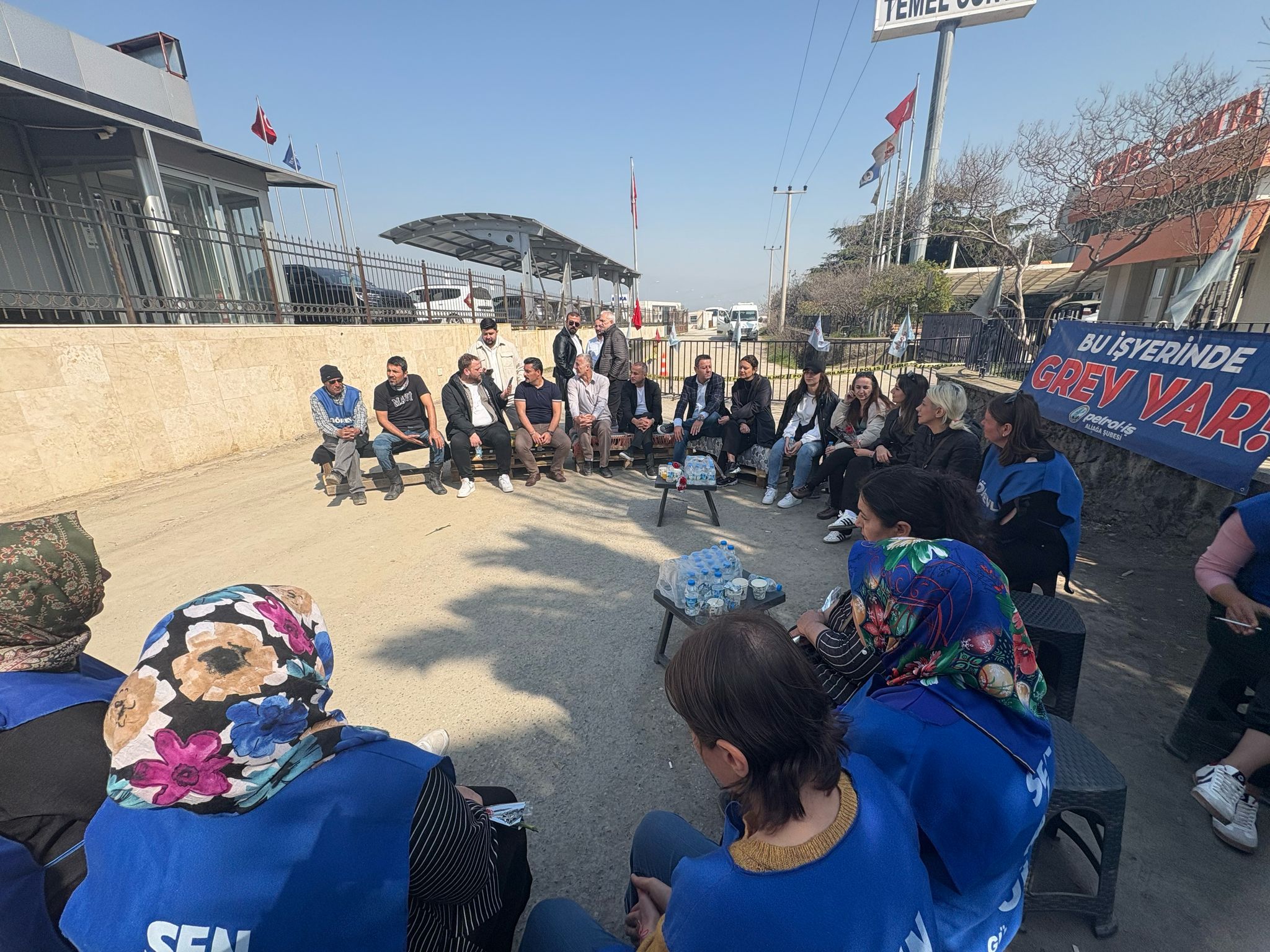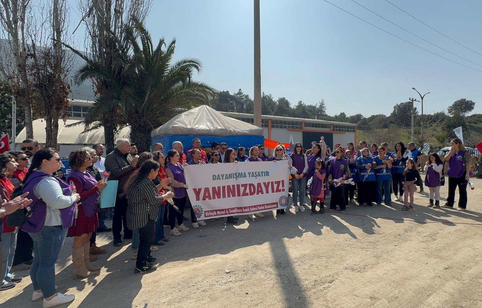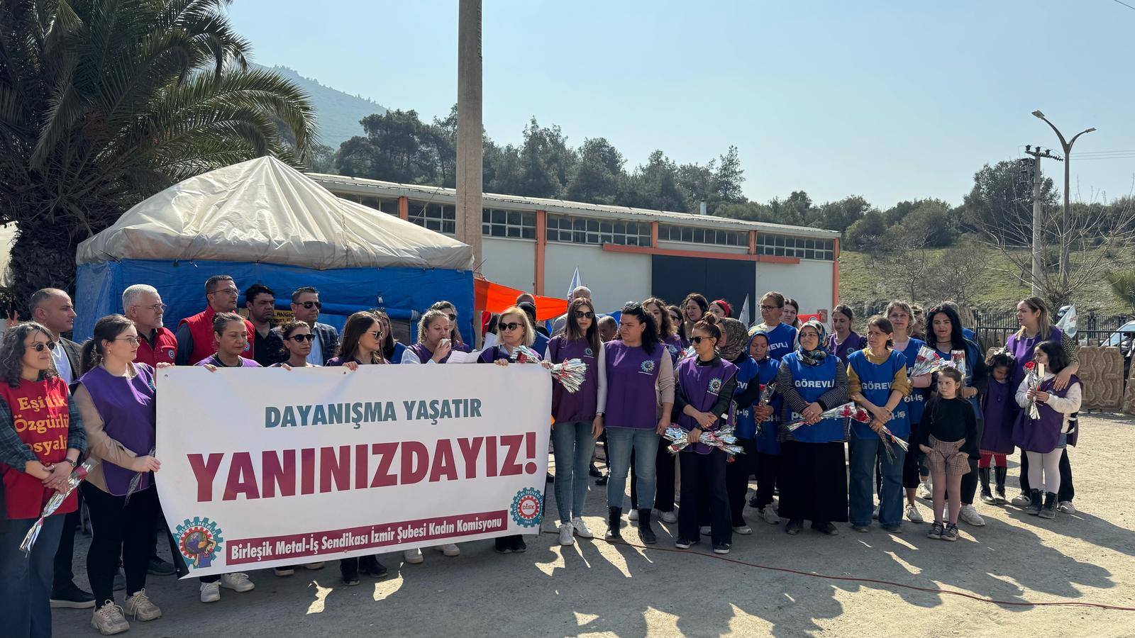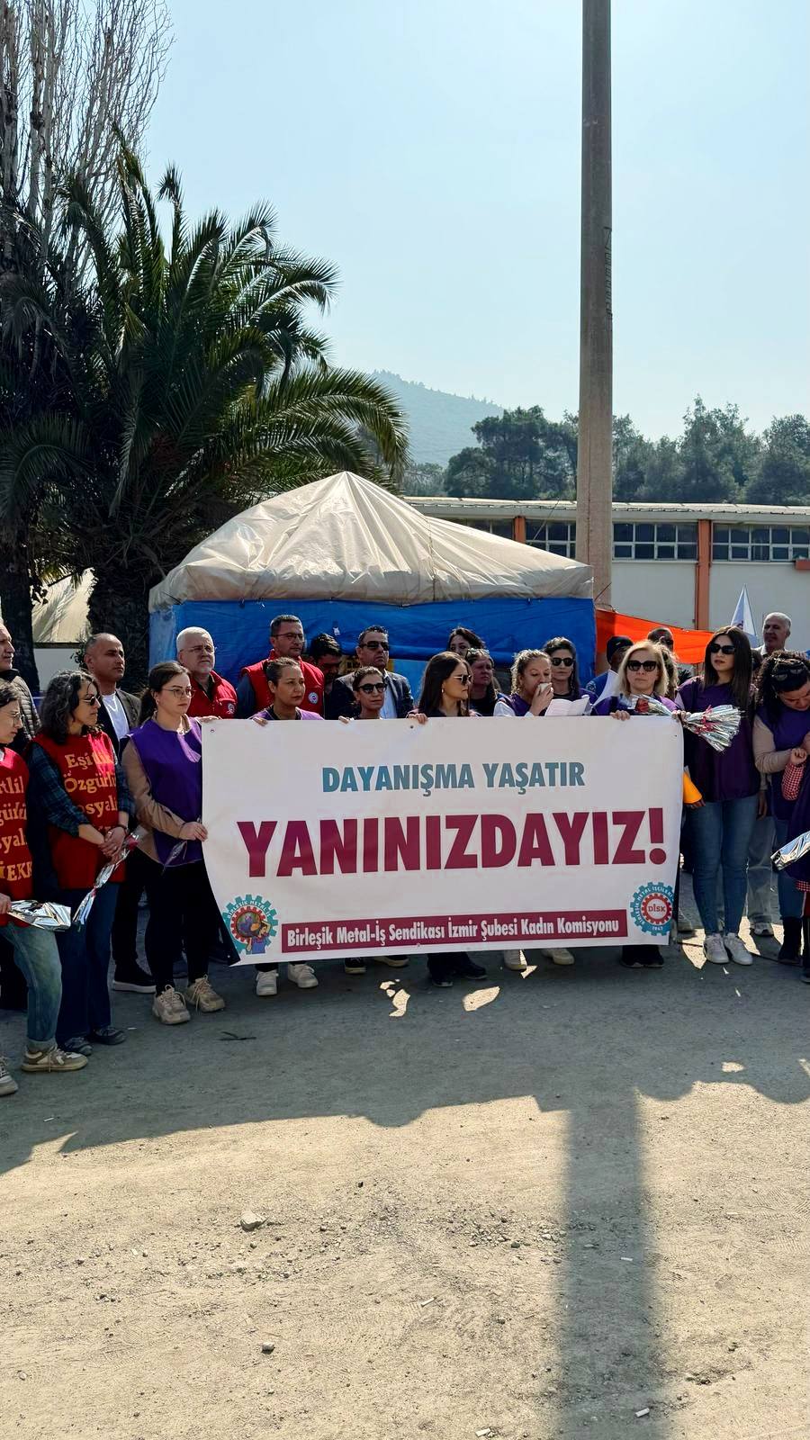 Sendikamız Aliağa Şubesinde örgütlü Temel Conta işyerinde devam eden grevimiz 8 Mart’ta yapılan etkinlikle daha da güçlendi. Kadınların Uluslararası Mücadele ve Dayanışma gününde grev alanında bir araya emekçiler Temel Conta Grevimizle dayanışmalarını gösterdiler. Sendikamız Aliağa Şube Yönetimi, şubemizde örgütlü temsilci, üye ve üyelerimizin aileleri, kardeş sendika temsilcileri, siyasi partiler ve demokratik kitle örgütleri, çoğunluğunu kadınların oluşturduğu Temel Conta Grevcilerini ziyaret ettiler.