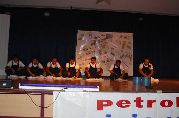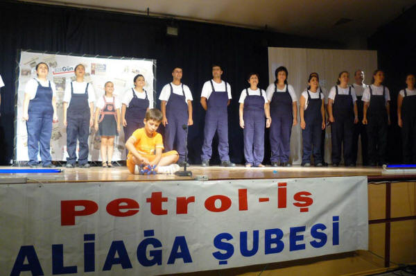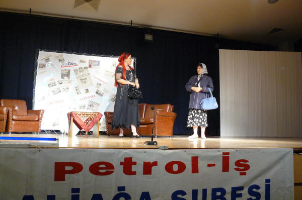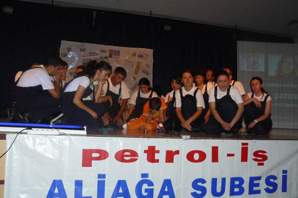 Petrol-İş Aliağa TİYATRO GurubuŞubemizin Kültür- Sanat ve Sosyal etkinlikleri kapsamında, Tiyatro gurubumuz 07.07.2008 tarihinde “Alınteri= ? ” isimli oyunu başarı ile sergilemiştir.Şubemize bağlı işyerlerimizde çalışan üyelerimizin, eşlerinin ve çocuklarının oluşturduğu Tiyatro Gurubumuzu, eğitmenimiz Cihangir TURANTAŞ yaklaşık sekiz aydır çalıştırıyordu. Bu kadar kısa sürede, iki saatlik bir oyunla, çalışma hayatına ve işçi yaşamına ilişkin önemli mesajlar veren, bizleri zaman zaman ağlatan, zaman zaman güldüren, başta eğitmenimiz olmak üzere tüm arkadaşlarımızı bir kez daha yürekten kutluyoruz.Şubemizin Kültür -Sanat ve Sosyal etkinlikleri bundan sonraki süreçte de devam edecektir. Umuyoruz ki bu güzel oyunu sergileyen arkadaşlarımız, kendilerini daha da geliştirerek başarılarını yükselteceklerdir.Bu güzel gecemizde bizlerle birlikte olan Sayın Genel Başkanımız Mustafa ÖZTAŞKIN’a ve bu çalışmalarımızı destekleyen Merkez Yönetim Kurulu’muza bir kez daha teşekkür ederiz.